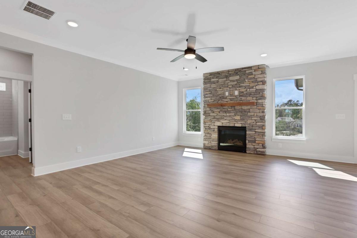 Estimated completion date February 2026! Home includes huge unfinished basement! Welcome to The Davidson, a stunning 4-bedroom, 3-bath home that seamlessly blends luxury and practicality. The main level features a guest suite, gourmet kitchen and formal dining room plus a butlers pantry. A cozy breakfast room is adjacent to the kitchen, offering a perfect spot for casual dining. Step outside to the covered deck and enjoy the privacy of your backyard offering peace and serenity. The primary bedroom is a true retreat with a spa-like bathroom featuring a spacious shower and built-in seat. Two additional bedrooms and a shared bathroom complete the second floor, with large closets. Located on a private street in a cul-de-sac, offering a quiet and peaceful atmosphere that's perfect for those seeking privacy and tranquility. Located in the charming community of Cambridge in Flowery Branch, you'll enjoy a peaceful setting with quick access to shopping, dining, and everyday conveniences. Neighborhood amenities include a community pool with cabana, a playground, a dog park, and scenic sidewalks perfect for evening strolls. Whether you're looking for a strong sense of community or proximity to local attractions, Cambridge offers the best of both. Up to $6,000 towards closing costs, with preferred lender.
