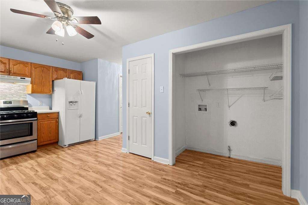 Situated directly across from Big Creek and the Oxbo Trail, this charming townhome puts you just minutes from Downtown Roswell and all that Canton Street has to offer. Enjoy an unbeatable blend of nature and convenience-surrounded by upscale dining, boutique shopping, local art galleries, coffee houses, and year-round community events. Whether you prefer peaceful morning walks or vibrant nights out, you'll love being in the heart of it all. The open-concept floor plan is filled with natural light and designed for everyday comfort and easy entertaining. The main level features a spacious living room, open dining area, laundry closet, and a bright kitchen. Upstairs, two generously sized bedrooms share a full bath, while a convenient half-bath serves the main floor. Move-in ready, the home also offers excellent potential for updates and personal touches to make it your own-or to build additional value. Nature lovers will appreciate the serene beauty right across the street. Big Creek and Vickery Creek Trail offer scenic paths that connect to Old Mill Park with its iconic covered bridge and waterfall views. The nearby Chattahoochee River National Recreation Area adds even more options for outdoor adventure-kayaking, fishing, hiking, and more. Whether you're a first-time buyer, investor, or looking to downsize in a walkable, vibrant location, this townhome is a rare find. With strong surrounding property values, the possibilities are wide open. Don't miss your chance to own in one of North Fulton's most desirable, character-filled neighborhoods!