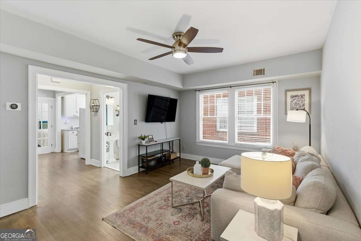 Welcome to your stylish city retreat in the vibrant heart of Atlanta's Old Fourth Ward! This well-designed 1-bedroom, 1-bathroom condo is the perfect blend of comfort, convenience, and city energy. Located in the vibrant heart of downtown Atlanta, you'll be just steps away from Ponce City Market, the Atlanta Beltline, Midtown and Piedmont Park. Step inside to find an open-concept layout with large windows that flood the space with natural light. The living area flows seamlessly into a contemporary kitchen. Walk through the beautiful french doors into the comfortably sized bedroom with ample closet space. Enjoy the convenience of an in-home washer and dryer, a private storage unit, and an assigned parking space in a secured, gated area. Perfect for first-time buyers, students, professionals, or anyone looking for a low-maintenance lifestyle in one of Atlanta's most dynamic neighborhoods.
