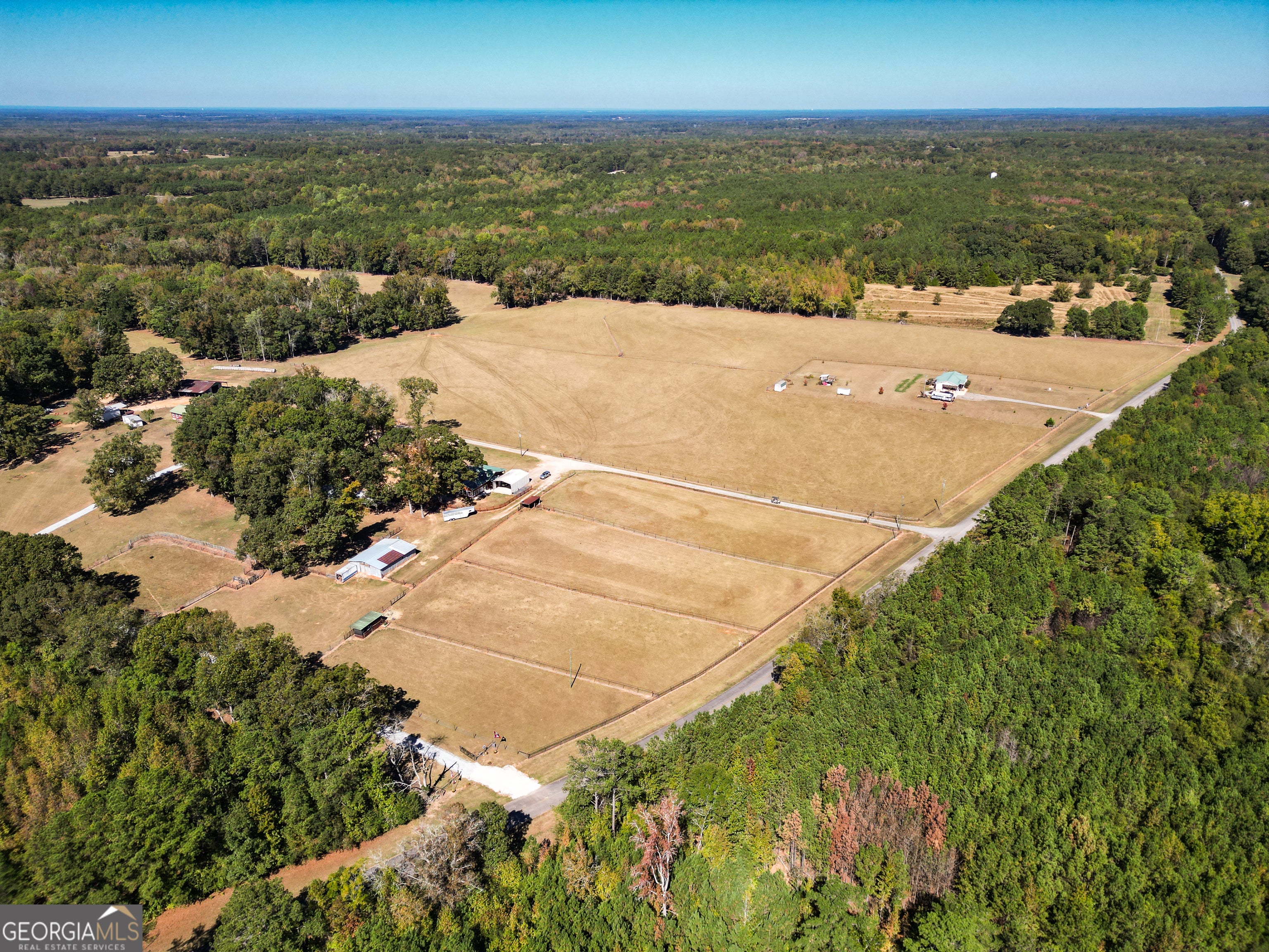 Welcome to Tall Oaks Farm, a stunning 79.14 acre estate located in the countryside of Pine Mountain, Georgia. Just 10+/- miles from the renowned Callaway Gardens, this exceptional property offers a rare blend of peaceful rural living and practical functionality, making it ideal for equestrian use, farming, or simply enjoying the outdoors. At the heart of the farm sits a 2,500 square foot home featuring three bedrooms and two bathrooms. Thoughtfully positioned to overlook the surrounding pastures, the home provides a comfortable and inviting retreat with plenty of room for family living or weekend getaways. The land is well-suited for both horses and cattle, with multiple fenced pastures, horse paddocks, a 120x150 roping arena, and a fully equipped horse stable. An equipment barn provides plenty of storage for farm equipment, tools, and other supplies. Mature hardwood trees offer shade and privacy throughout the property, while Mountain Oak Creek winds along the western boundary, enhancing the natural beauty and offering a peaceful water feature. For outdoor enthusiasts, Tall Oaks Farm also presents excellent hunting opportunities, with abundant wildlife and diverse terrain. Whether you're seeking a working farm, an equestrian retreat, or a private country escape, this property delivers space, potential, and serenity-all within convenient reach of nearby towns and less than 90 minutes from Atlanta.
