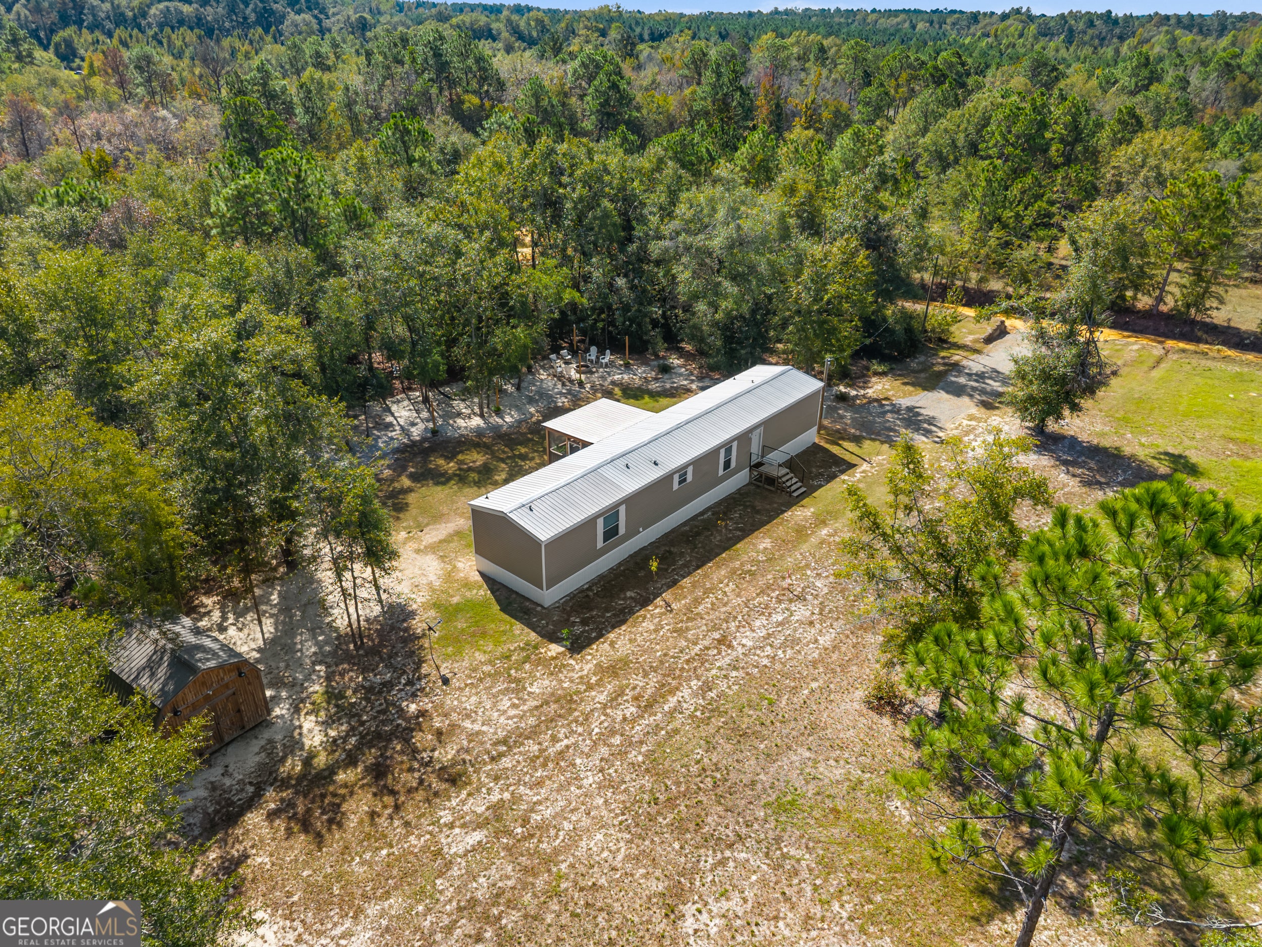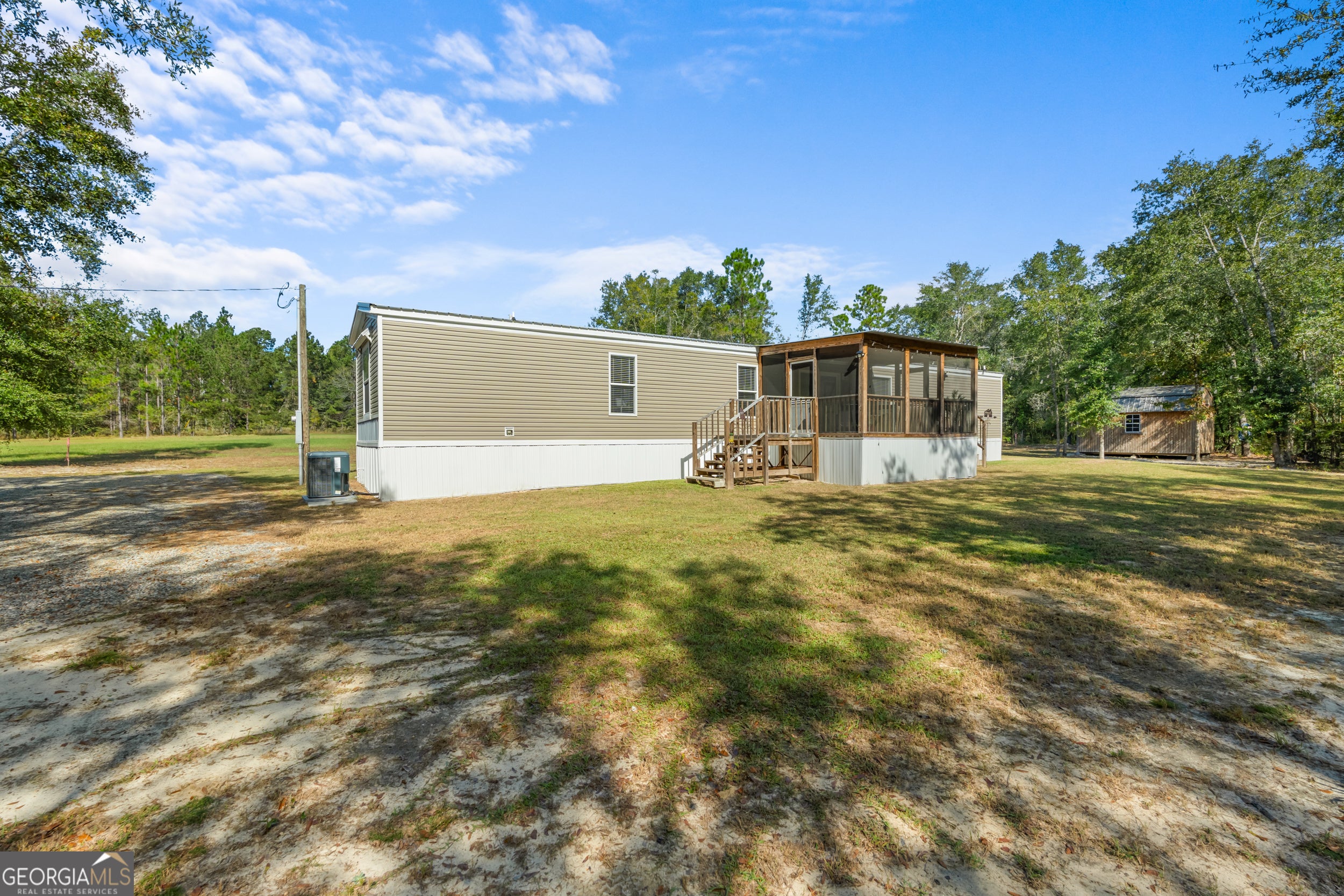 Country Living with Modern Comforts - Move-In Ready 2023 Home on 3.29 Acres!!! Experience the perfect blend of peaceful country living and contemporary style in this beautifully constructed 2023 mobile home. Offering 3 bedrooms, 2 bathrooms, and 1,280 sqft of thoughtfully designed living space. This home features a split floor plan ideal for privacy and functionality. Step inside to a bright and airy open-concept living/dining area, complete with faux wood beams, built-in shelving and 8-foot ceilings throughout. The spacious kitchen is a showstopper with it's large island with bar seating, sleek black farmhouse sink, matching appliances and generous counter space! Perfect for everyday living and entertaining! The graciously sized primary suite provides a tranquil retreat with a spacious closet and a spa-like en suite featuring a luxurious walk-in shower. Two additional guest bedrooms offer ample space and storage for family, guests, or a home office. Enjoy serene views and fresh air year-round from the large screened-in back porch overlooking a beautiful wooded backyard. Whether you're roasting marshmallows by the fire pit, lounging in a hammock, or raising chickens, the 3.29-acre lot offers endless possibilities for outdoor living and hobbies! Additional highlights included with the sale: Storage building with electricity, chicken coop, All kitchen appliances including refrigerator, Washer/dryer and both flat screen TV's!!! Don't miss this opportunity to own your slice of countryside paradise! Schedule your showing today!