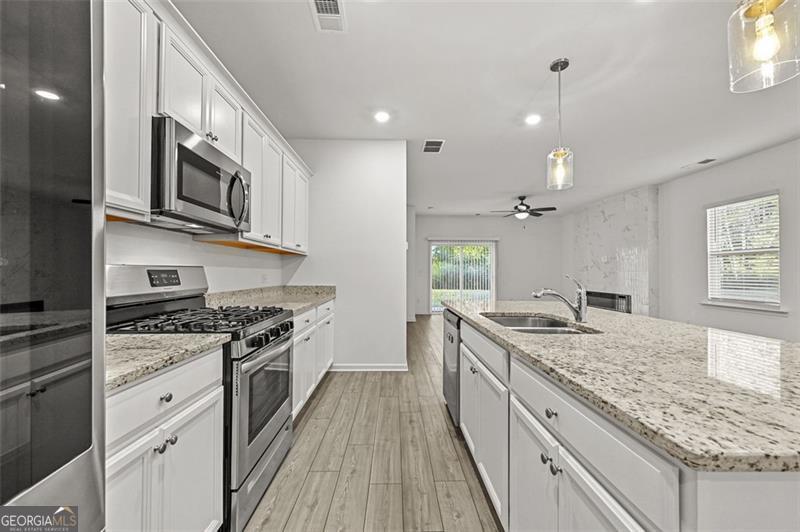 Welcome to 370 Golden Eagle Parkway, a beautifully designed home in the heart of Braselton, Georgia, where modern comfort meets everyday functionality. Investment-allowed property. Built in 2023, this stunning residence features a master suite on the main level, four additional bedrooms upstairs, and a spacious loft - perfect for a playroom, media room, or home office. Step inside to an inviting open-concept layout filled with natural light and thoughtful upgrades throughout. The living room features a sleek linear fireplace and ceiling fan, creating a warm and cozy gathering space. The gourmet kitchen is a true showstopper with elegant pendant lights over the island, upgraded cabinetry, and ample countertop space - ideal for cooking, entertaining, and family meals. The main level also includes a luxurious owner's suite with a spa-like bath, plus a convenient half bath for guests. Upstairs, you'll find four spacious bedrooms, a full bathroom, and a versatile loft that adds flexibility for any lifestyle. With its modern construction, bright interior, and stylish finishes, this home offers both beauty and practicality. Enjoy relaxing or entertaining in the private backyard, and take advantage of the home's low-maintenance, energy-efficient design. Perfectly positioned just minutes from Highway 85, this home offers easy access to Atlanta, Buford, and Gainesville, while being only a short drive from downtown Braselton's charming shops, restaurants, and community events. The location combines small-town charm with big-city convenience, plus access to top-rated schools and nearby parks. If you're looking for a home that truly has it all - a main-level owner's suite, modern upgrades, flexible living spaces, and an unbeatable location - look no further than 370 Golden Eagle Parkway. Schedule your private showing today and experience the best of Braselton living.