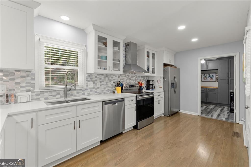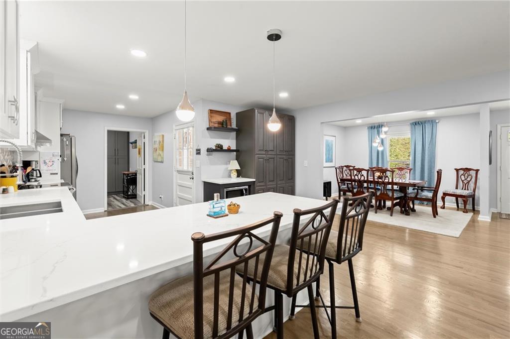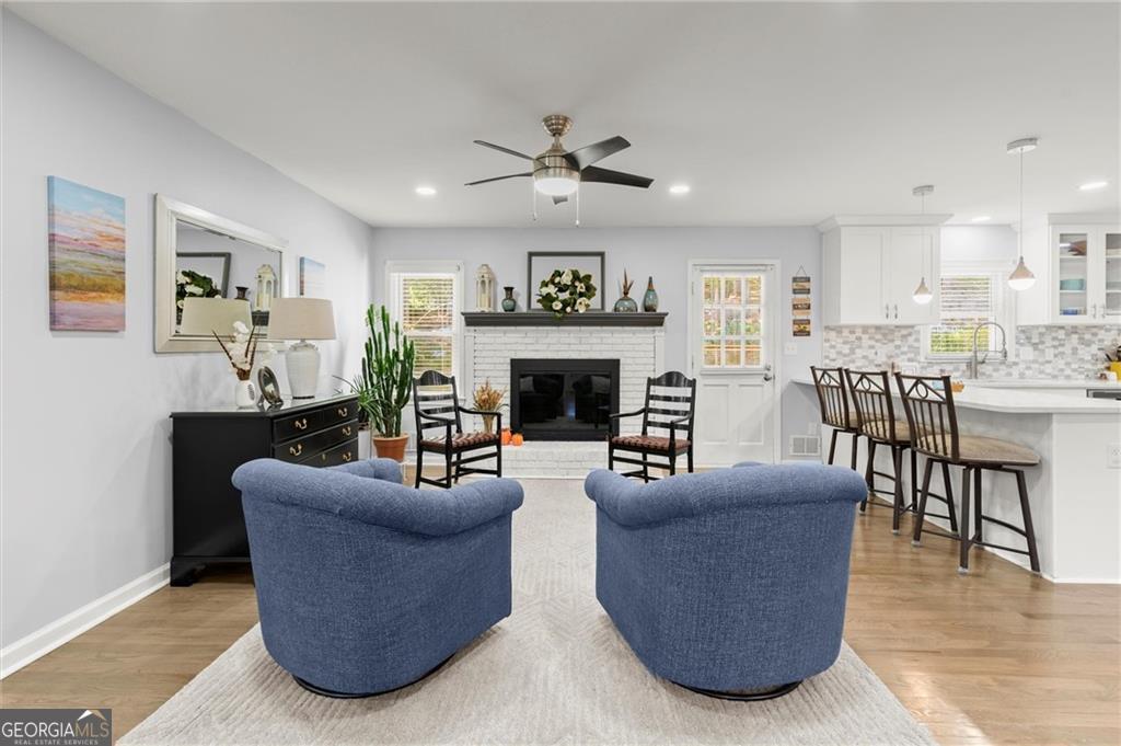 Welcome to this beautifully updated East Cobb home, perfectly situated on a spacious 0.75-acre lot in a picturesque, tree-lined neighborhood just minutes from top-rated schools, shopping, and restaurants. This traditional 4-sided brick home blends timeless charm with thoughtful modern updates throughout. Step inside to discover an open-concept layout featuring original hardwood floors, abundant natural light, and inviting spaces ideal for everyday living and entertaining. The renovated kitchen boasts quartz countertops, stainless steel appliances, custom cabinets, a breakfast bar, and a convenient pass-through window to the deck-perfect for hosting family and friends. The main level offers multiple living and dining areas, including a cozy den with a gas fireplace and a spacious laundry/utility room with extra storage. Downstairs, the finished basement provides flexible living space with LVP flooring, a large bedroom or office with a walk-in closet, and a full bath with a walk-in rain shower-ideal for a guest suite, media room, or home gym. Enjoy outdoor living on the newly stained deck overlooking a private, landscaped backyard complete with a firepit and natural wooded views. Recent upgrades include a new roof, Energy Star windows, upgraded 200-amp electrical service, underground wiring, new fencing, professional landscaping, and more. Conveniently located near Truist Park, downtown Atlanta, and major commuter routes, this turnkey home has been meticulously maintained and is truly move-in ready. Don't miss this one!