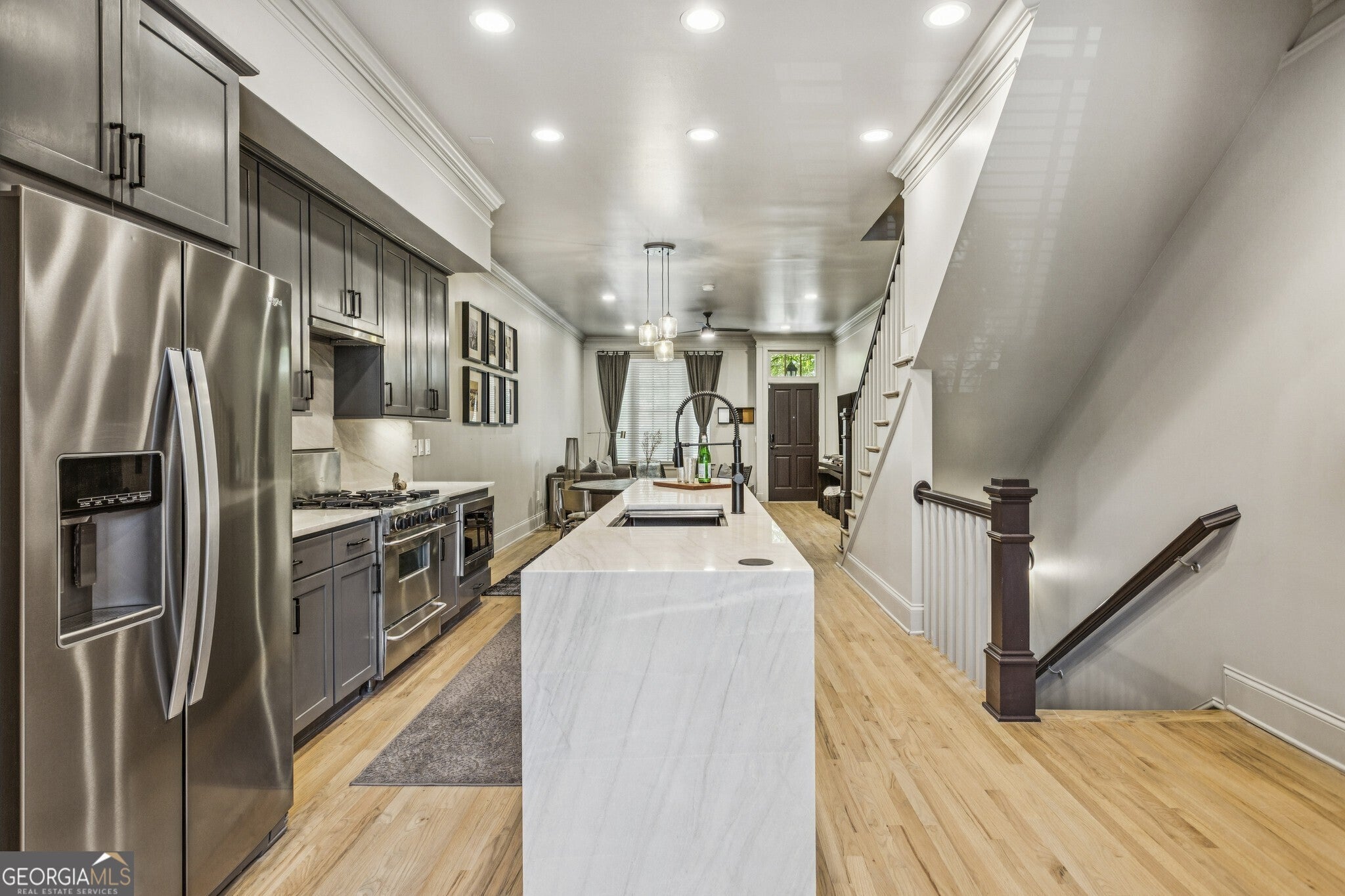 Fully Renovated BeltLine Brownstone with Private Rooftop Terrace! Step into Luxury Living Redefined in this Meticulously Renovated Brownstone designed by Historical Concepts, offering Direct Front Door Access to the BeltLine in the heart of Glenwood Park. This home stands apart with High-End Designer Finishes and Thoughtful Upgrades rarely seen in the community no detail overlooked. The Light-Filled Main Level showcases Hardwood Floors, Tall Ceilings, and a Sophisticated Open Floorplan. The Chef's Kitchen is a true showpiece, featuring Custom Shaker Cabinetry, Professional-Grade Stainless Steel Appliances, and a Striking Granite Waterfall Island that anchors the space with style and function. The Central Dining Room and Fireside Family Room create a seamless flow for entertaining, while a Cozy Nook beyond the Kitchen provides the perfect spot for a Breakfast Area or Home Office. A Designer Powder Room and Upgraded Laundry Room complete this level. Upstairs, the Owner's Suite feels like a five-star retreat with a Custom Walk-In Closet and a Spa-Caliber Ensuite Bathroom boasting Floating Dual Vanities with Granite Counters, a Granite-Surround Soaking Tub, and an Oversized Tiled Shower with Dual Showerheads and Bench Seating. A Secondary Ensuite Bedroom also features Refined Finishes and an Updated Bath for guests or family. The Terrace Level offers incredible versatility with a Full Kitchen, Living Area, Bedroom, and Full Bath ideal for an In-Law Suite, Rental Apartment, or Private Guest Quarters. Top it all off with your Private Rooftop Terrace, complete with a Pergola-Covered Lounge Area the ultimate space for entertaining, relaxing, or enjoying BeltLine sunsets. Enjoy all that Glenwood Park has to offer: a Community Garden, Pool Membership, Gym, and Bocce Courts, along with a Vibrant Calendar of Events including Movies in the Park, July 4th Fireworks, and a Holiday Tree Lighting. Just steps to Grant Park, East Atlanta Village, and Madison Yards, this home combines High-End Design, Unmatched Location, and Turnkey Luxury a rare find in one of Atlanta's most sought-after neighborhoods!