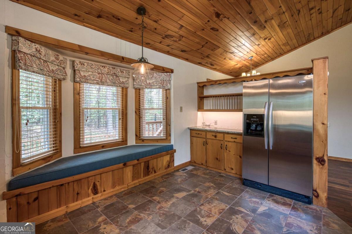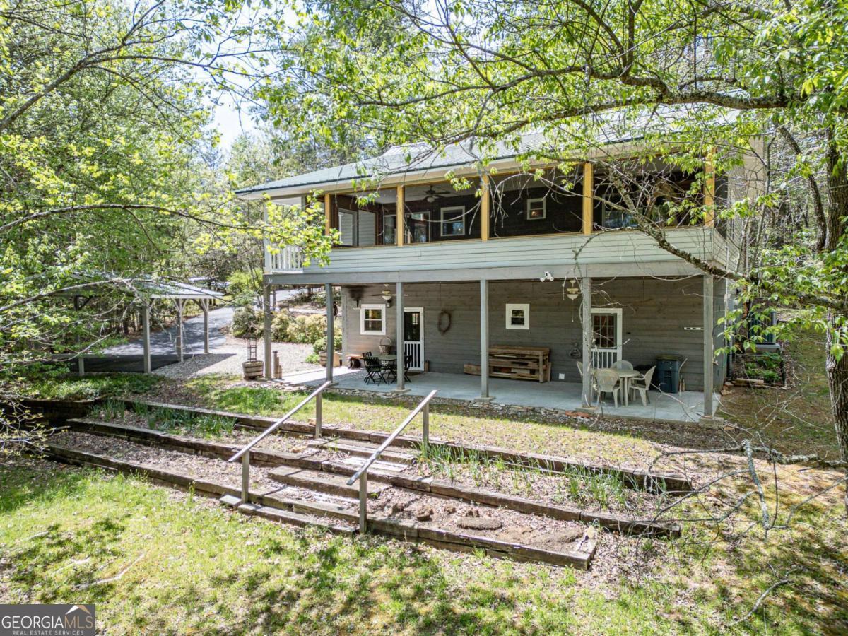 Back on the Market - Motivated Seller! Buyer's previous contract fell through due to home sale contingency. Seller is ready and motivated to make a deal! Welcome to this charming 2BR/2.5BA mountain retreat tucked away on a private 2.13-acre wooded lot just minutes from Lake Nottely. With no HOA, this property offers freedom, privacy, and versatility-perfect for a full-time residence, weekend getaway, or short-term rental opportunity. A rocking-chair front porch invites you into a warm and welcoming open-concept living area featuring tongue-and-groove wood ceilings, engineered hardwood flooring, and a striking floor-to-ceiling stone fireplace. Double-hung windows fill the home with natural light and peaceful wooded views. The kitchen is thoughtfully designed with knotty pine cabinetry, granite countertops, stainless steel appliances, tile flooring, open shelving, and a built-in breakfast bench. The spacious screened porch spans the entire length of the home, overlooking lush landscaping and connecting to an outdoor BBQ patio-ideal for entertaining or relaxing in the mountain air. The primary suite opens directly to the porch and features an updated bath with walk-in stone shower and dual vessel sinks. The second bedroom offers a built-in armoire and a nearby full bath with a jetted tub and slate tile accents. Downstairs, the partially finished basement expands your living space with a large open area, kitchenette, half bath, wine wall, and barn-door pantry-providing excellent potential to finish as a third bedroom, in-law suite, or separate guest quarters. Outdoor features include a lower-level patio with firepit, detached storage shed, walk-out carport, and beautifully landscaped gardens. A recent home inspection and detailed repair and upgrade history demonstrate true pride of ownership. This home combines comfort, flexibility, and mountain charm-and with a motivated seller, now is the perfect time to make it yours. Schedule your showing today!