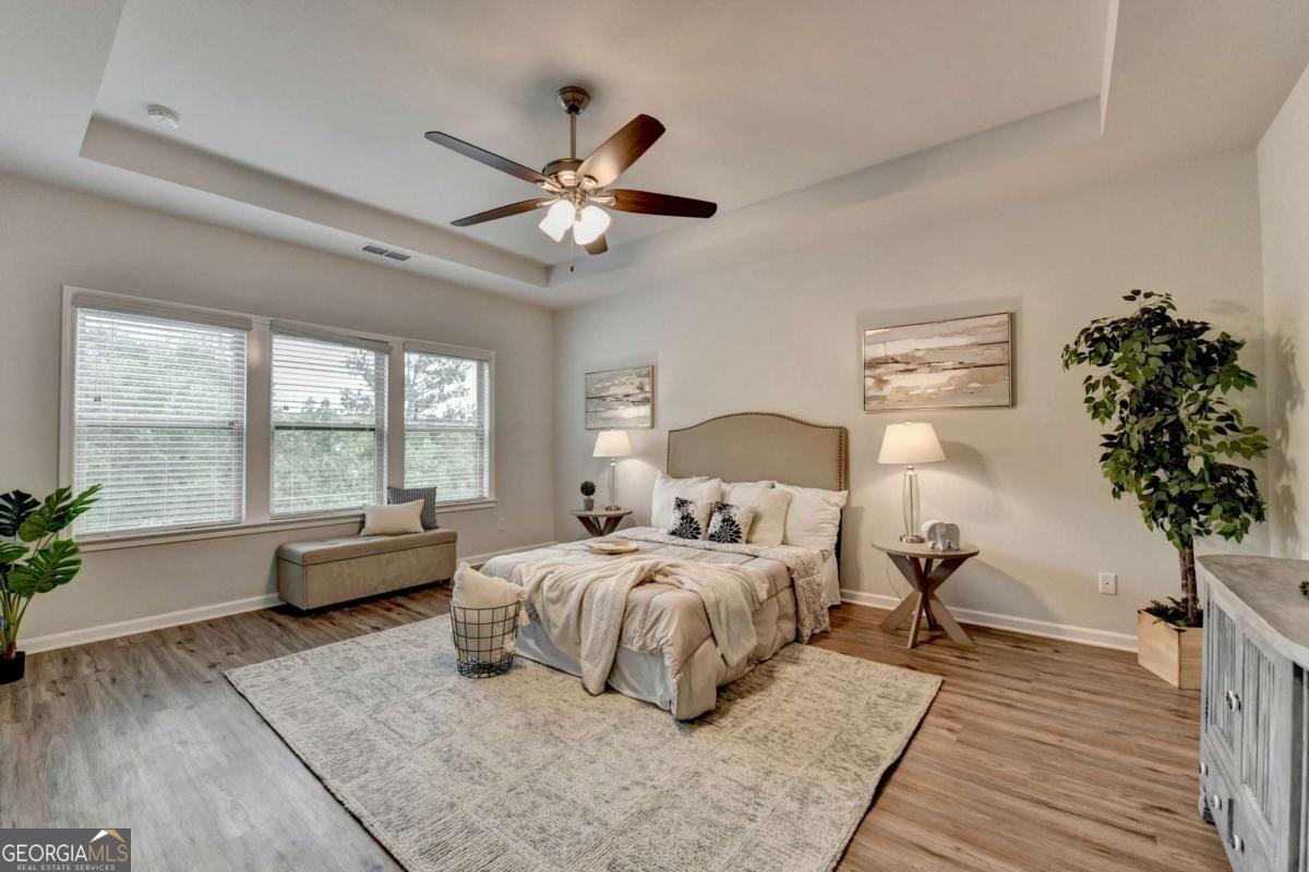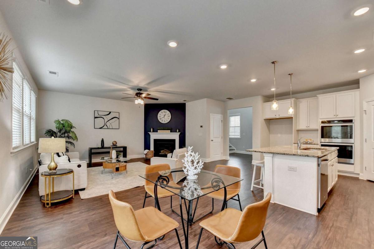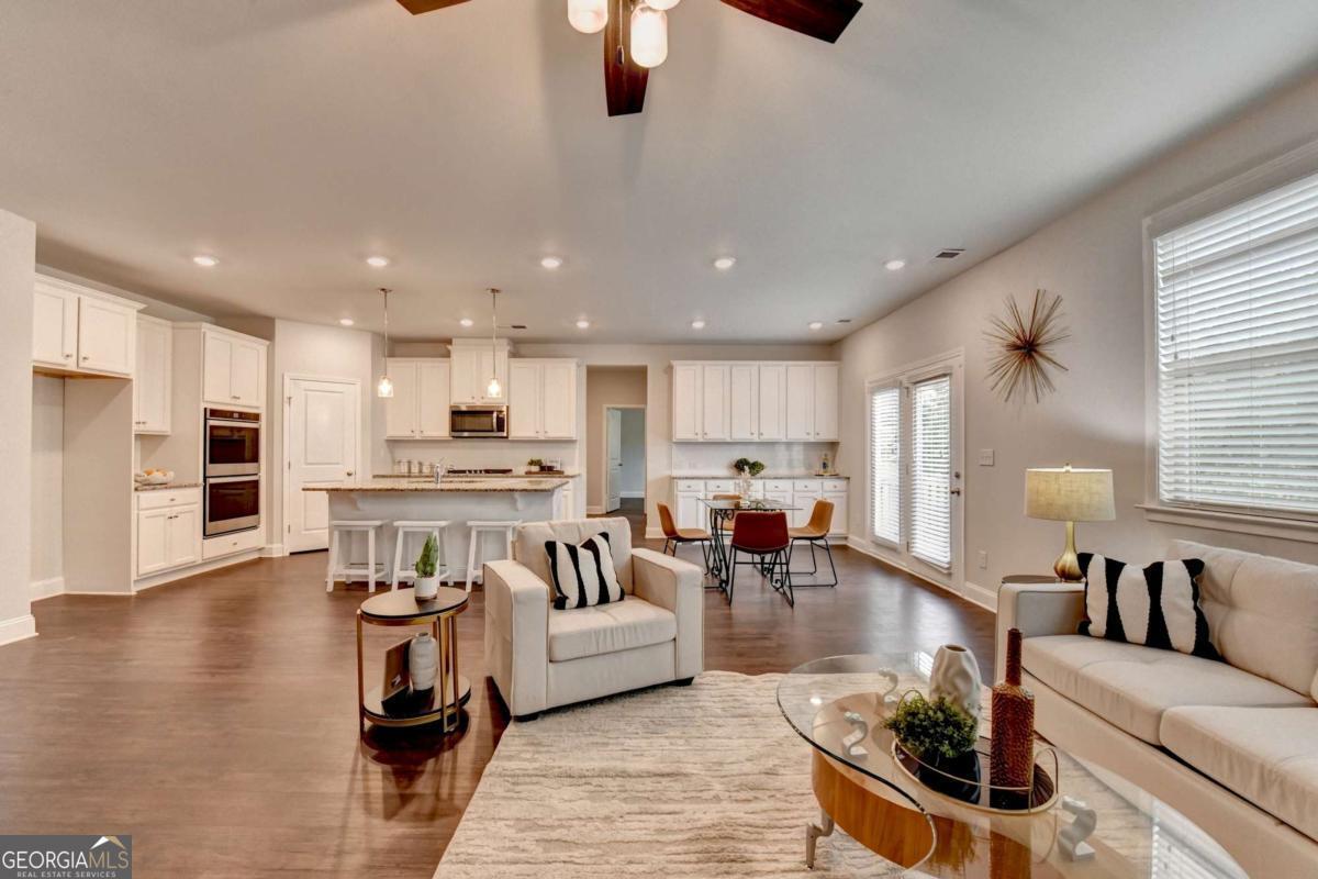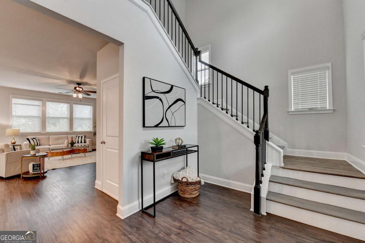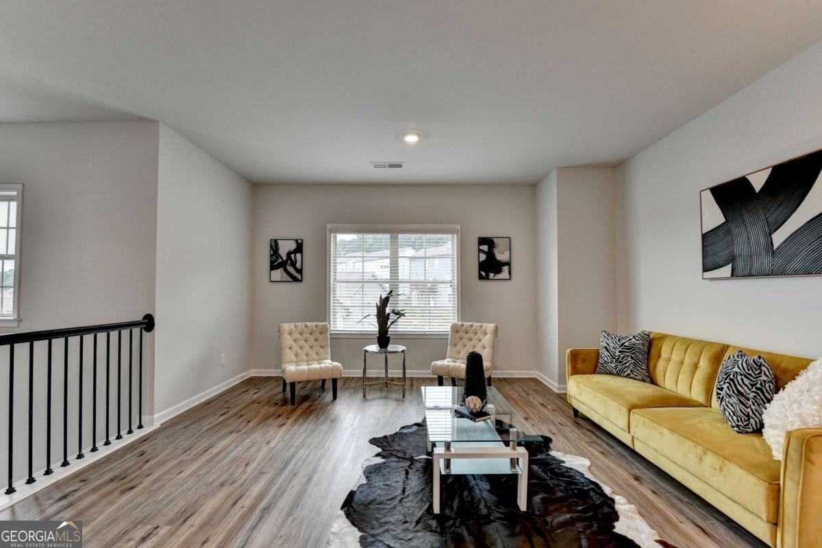Motivated seller! Discover this stunning 2020 built smart home with BASEMENT nestled in the highly sought-after Broadmoor neighborhood, just minutes from world-renowned Chateau Elan, private golf clubs, luxury spas, and upscale dining. This beautifully maintained 4beds/3 full baths home features a freshly painted interior, BRAND new LVP flooring upstairs, a spacious bedroom on the main floor, a versatile loft upstairs and unfinished basement. Enjoy a gourmet kitchen with white cabinets and stainless steel double ovens, a huge master suite with a deluxe bathroom, and a large family room perfect for gatherings. The home also offers a full unfinished basement ideal for storage or as a tornado shelter, plus a deck overlooking a private, wooded backyard. With whole-house blinds and elegant finishes throughout, this home truly combines luxury, comfort, and convenience. Brand new luxury vinyl plank flooring upstairs Spacious one bedroom on main and a versatile loft upstairs. The home offers a huge master suite with a deluxe bathroom, a gourmet kitchen featuring a large island, white cabinetry, and stainless steel double ovens. Enjoy the open-concept layout with a spacious family room ideal for gatherings, plus added features like whole-house blinds and elegant finishes throughout. Live in a peaceful, prestigious community with luxury amenities at your doorstep while enjoying your private retreat every day. Near to Shopping/restaurants, Chateau Elan, Northeast Medical center, Hwy 85