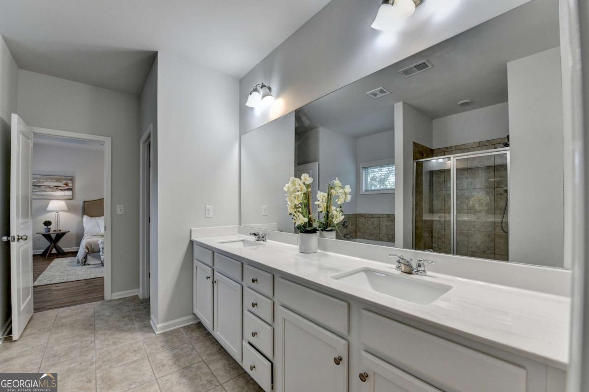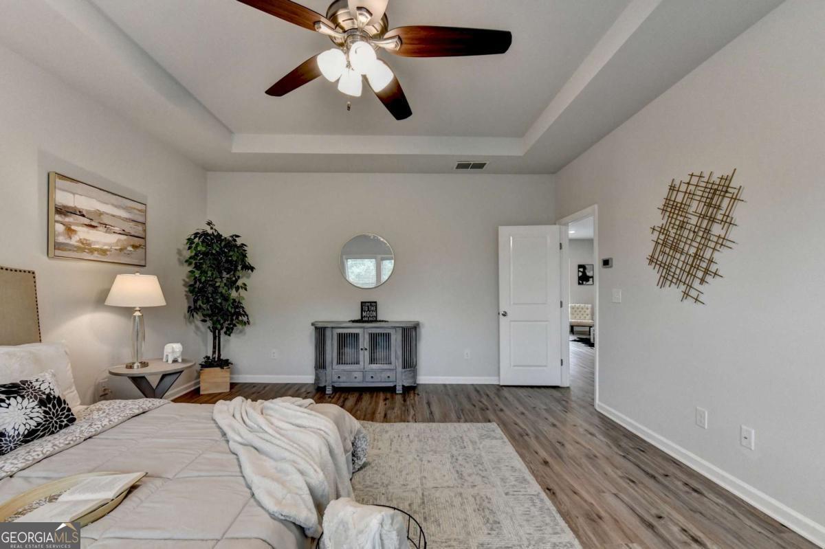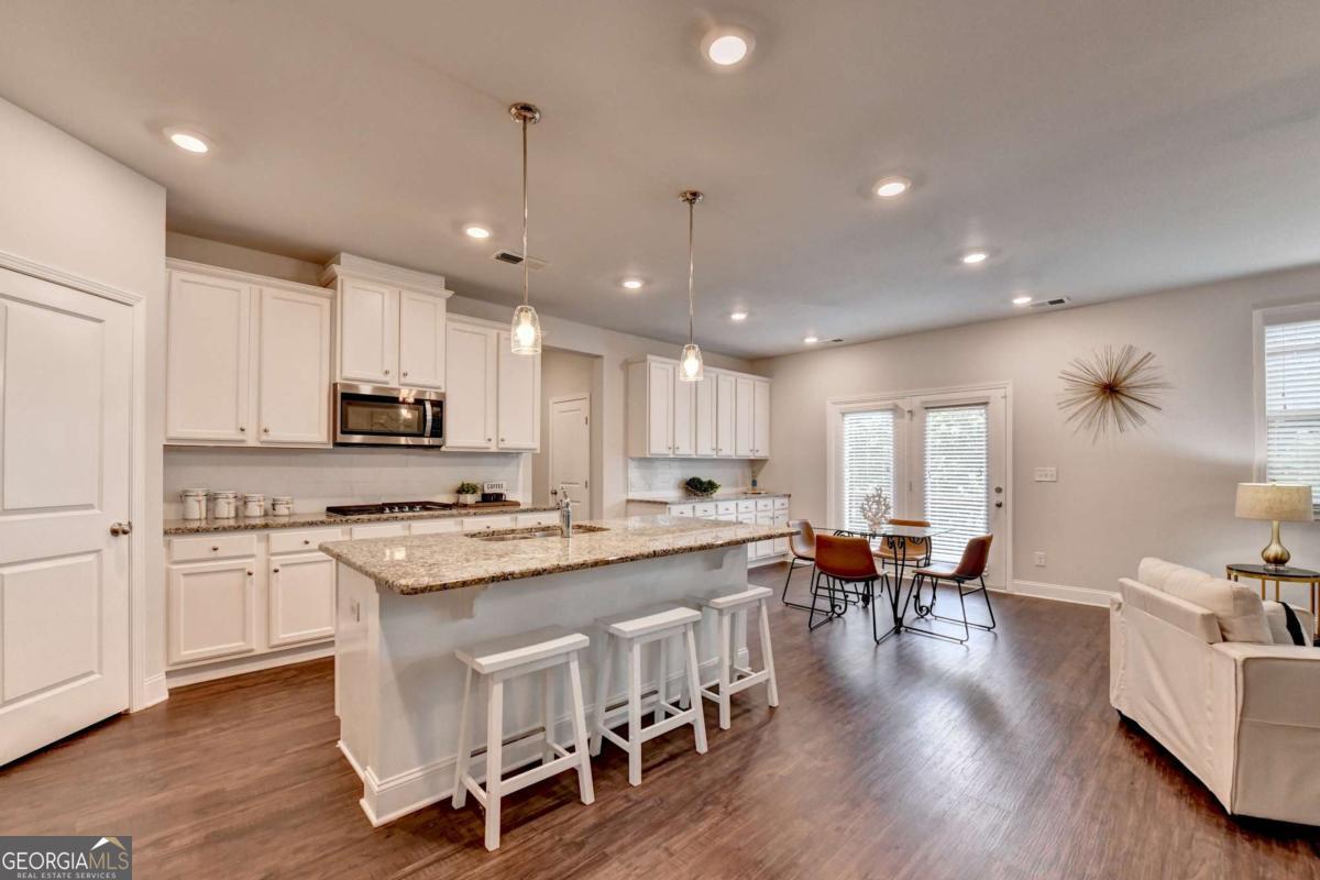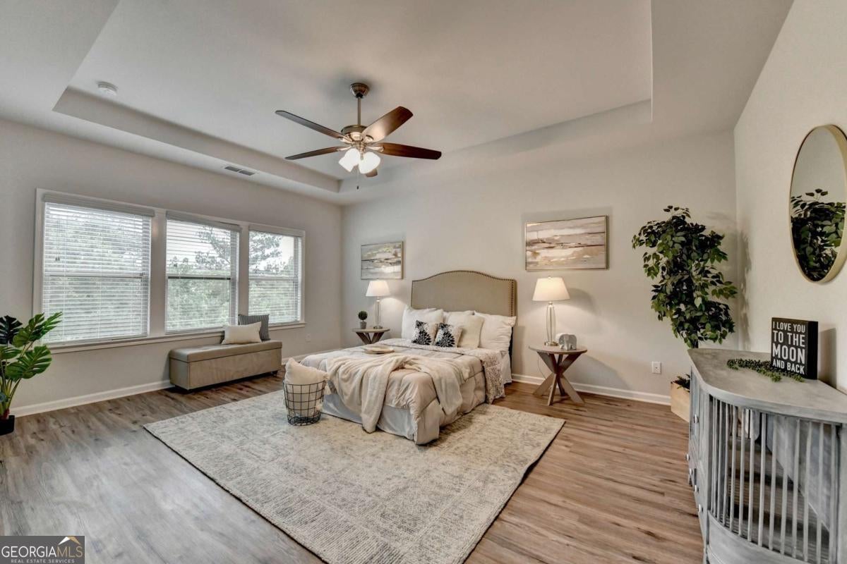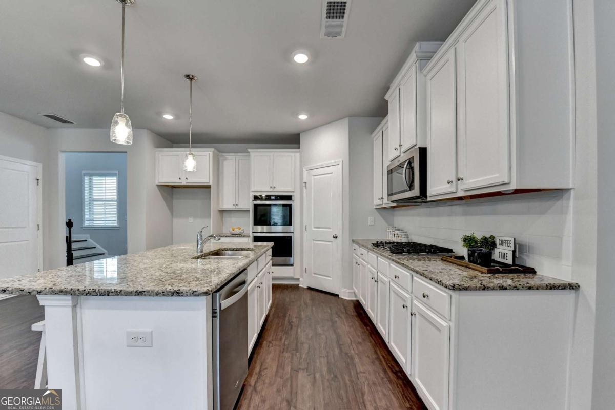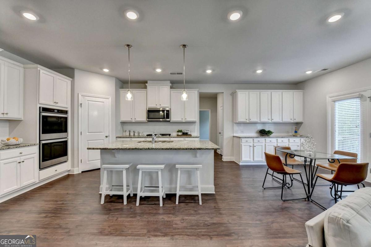Motivated seller! Discover this stunning 2020 built smart home with BASEMENT nestled in the highly sought-after Broadmoor neighborhood, just minutes from world-renowned Chateau Elan, private golf clubs, luxury spas, and upscale dining. This beautifully maintained 4beds/3 full baths home features a freshly painted interior, BRAND new LVP flooring upstairs, a spacious bedroom on the main floor, a versatile loft upstairs and unfinished basement. Enjoy a gourmet kitchen with white cabinets and stainless steel double ovens, a huge master suite with a deluxe bathroom, and a large family room perfect for gatherings. The home also offers a full unfinished basement ideal for storage or as a tornado shelter, plus a deck overlooking a private, wooded backyard. With whole-house blinds and elegant finishes throughout, this home truly combines luxury, comfort, and convenience. Brand new luxury vinyl plank flooring upstairs Spacious one bedroom on main and a versatile loft upstairs. The home offers a huge master suite with a deluxe bathroom, a gourmet kitchen featuring a large island, white cabinetry, and stainless steel double ovens. Enjoy the open-concept layout with a spacious family room ideal for gatherings, plus added features like whole-house blinds and elegant finishes throughout. Live in a peaceful, prestigious community with luxury amenities at your doorstep while enjoying your private retreat every day. Near to Shopping/restaurants, Chateau Elan, Northeast Medical center, Hwy 85