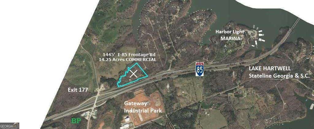 This area, centrally located between Atlanta and Greenville, is experiencing phenomenal growth with Branded Restaurants, Commercial and Industrial Parks. 14.25 Acre Property with 1445 feet Frontage on I-85 AND Frontage Road, Harbor Light Marina Rd., with High Visibility from I-85 North & South Bound Lanes and Harbor Light Marina Rd.. Located at I-85 GA/SC Stateline Exit GA #177 / Hwy 77 at Hartwell Lake. 400 ft Corp of Engineers' Hartwell Lake frontage for direct Foot Access. 1355 sq ft Brick House with Metal Roof and ideal Office Layout. Zoning can be Commercial, Industrial or Residential. Lake Hartwell's 962 miles of shoreline, entwined with Clemson, Anderson, Seneca, Fair Play, Lavonia, Hartwell, Toccoa and 83 Parks, Marinas and Campgrounds, host Millions of Visitors yearly and Boat Access less than a mile down Harbor Light Marina Rd.