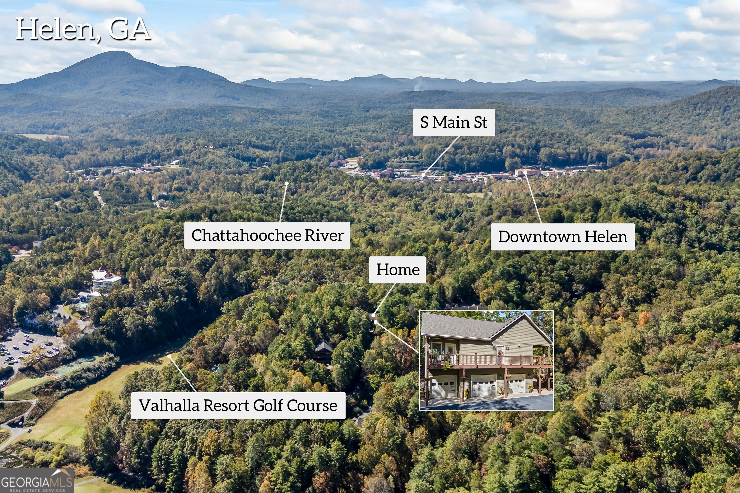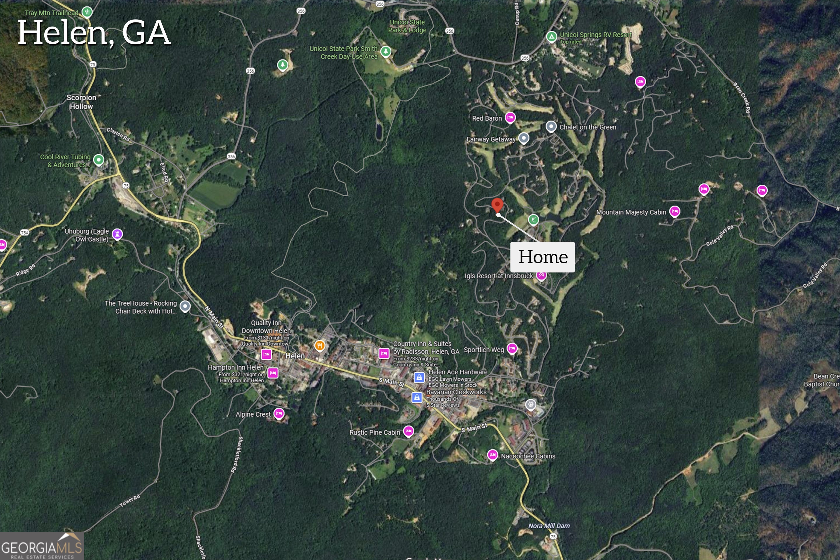Beautiful Mountain Home in Innsbruck Golf & Resort in Helen, GA. Whether you're looking for a full-time residence, a vacation getaway, or an income potential opportunity, this stunning two-story home in the desirable gated community of Innsbruck Golf & Resort has it all. Located in the heart of Helen, GA, this mountain retreat offers privacy, views, and resort-style amenities including golf, tennis, pickleball, a community pool, and access to the Valhalla Resort for fine dining and spa services. The Main Level Features: Open-concept living with floor-to-ceiling windows in the living room, renovated kitchen with custom cabinetry w/roll out drawers, island with seating, quartz countertops, stainless steel appliances, wine fridge, pantry, laundry closet, and formal dining room with pocket doors. Also, enjoy relaxing in the sunroom currently being used as an office but can be used as a sitting room or guest area or however you want to utilize this great space. A spacious master suite with trey ceiling, walk-in closet with custom built-in cabinetry, luxurious master bath with jacuzzi tub and steam shower, beautiful hardwood floors, with carpet in select areas, guest half bath and access to a wrap-around upper deck with seasonal mountain views. Lower Level Features a large media room with kitchenette/cabinetry (sink, small fridge, microwave) with two additional bedrooms, and bonus room currently used as an exercise space or perfect as an office, playroom, or guest suite, full bathroom, and a walkout to a private, fenced-in patio/garden area. Also enjoy on the lower level, a walk out to a large terrace area with flagstone flooring, evening lighting along the fence and seasonal mountain views. Additional highlights - this home has dual-level entrances allowing for flexible use- live on one level and rent out the other, or rent both separately, dual zoned heating/air, hardie board siding, and a two-car garage plus additional golf cart garage. Just minutes from downtown Helen's attractions: restaurants, shopping, tubing, zip lining, and alpine coaster. Close proximity to local wineries, hiking trails, kayaking, Unicoi State Park and lodge and so much more. This home combines mountain charm, modern comfort, and income potential-all in one of the most desirable communities in Northeast Georgia. Furnishings are negotiable (with some exclusions) and being Sold AS-IS.