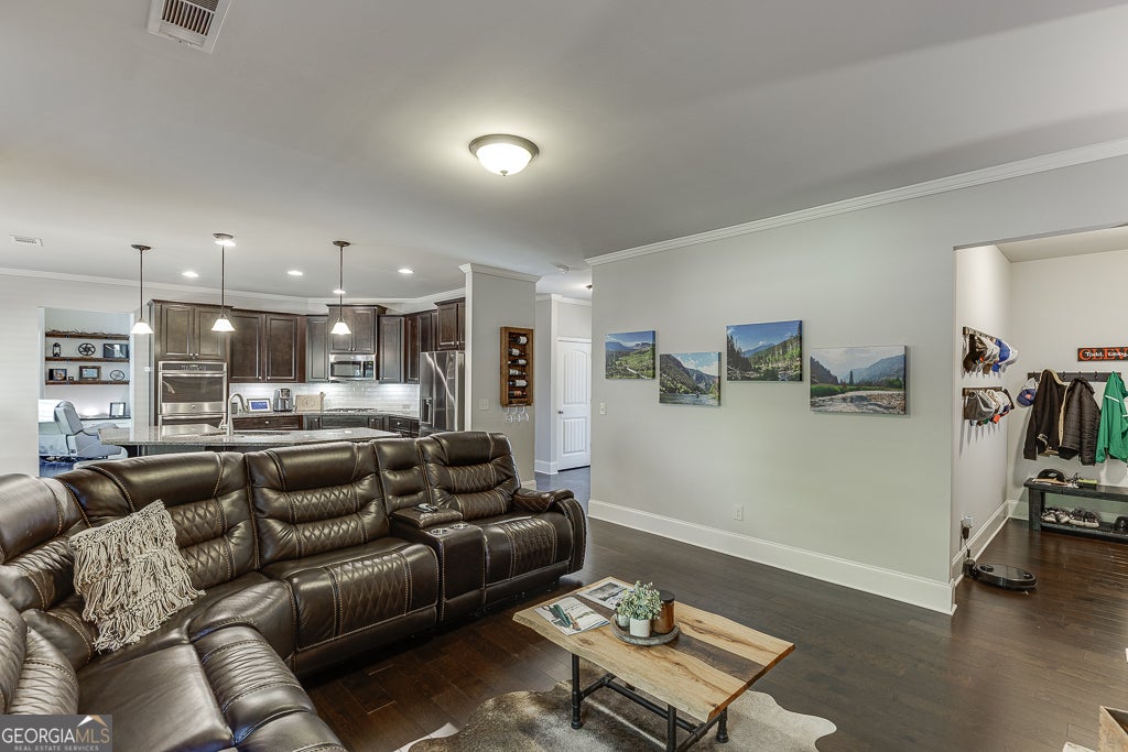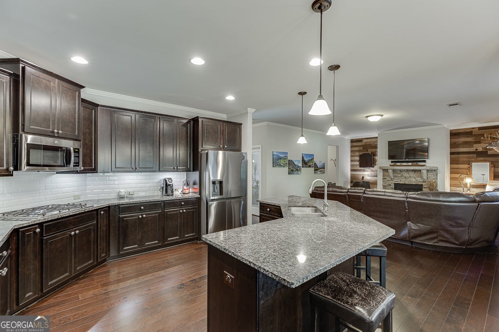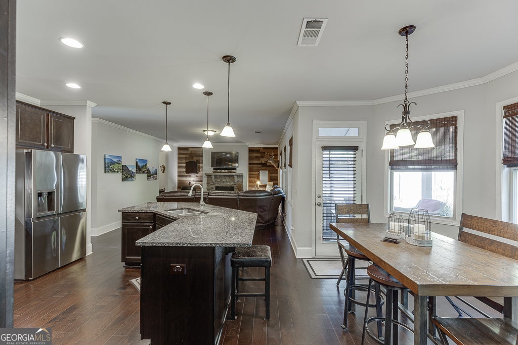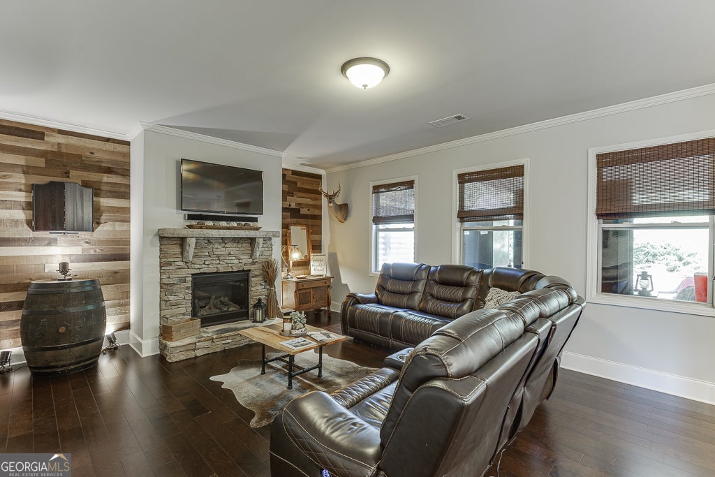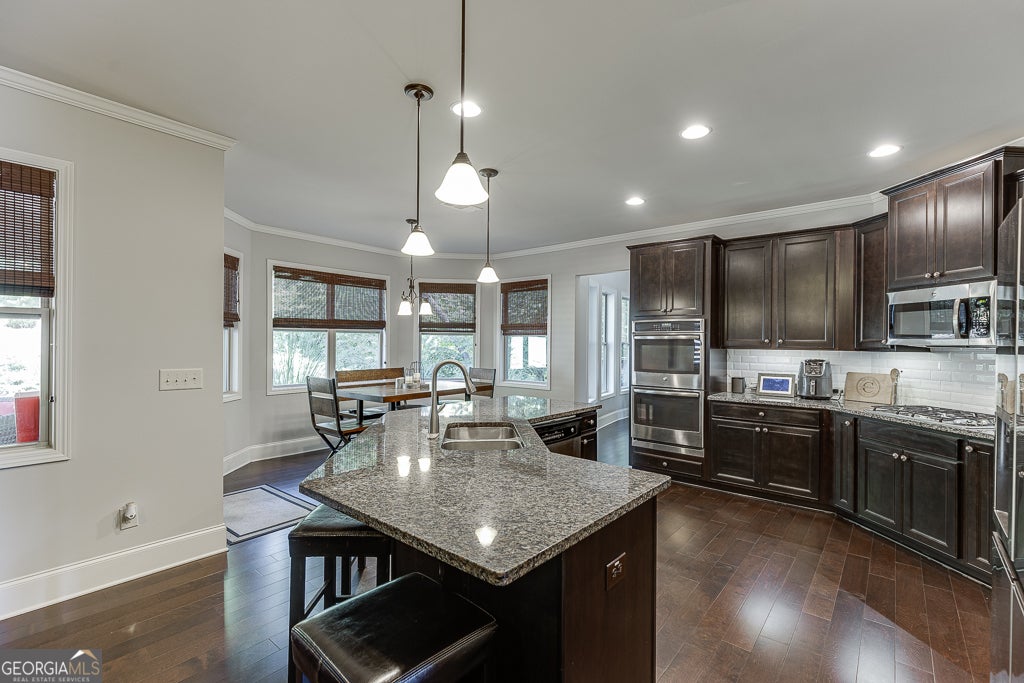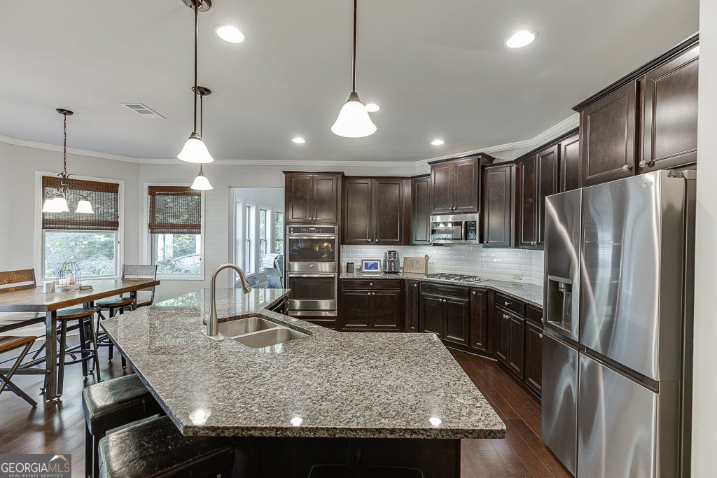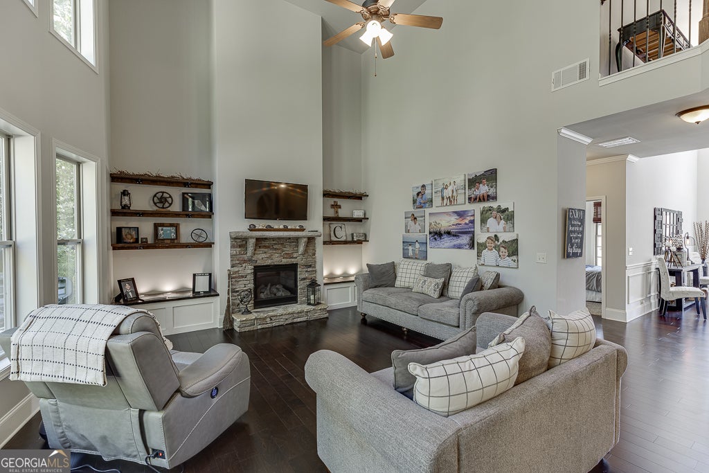 Meticulously maintained 5-bedroom, 4-bath home located in the award-winning Buford City School District. Nestled on a stunning private lot, this home showcases beautiful custom trim, hardwood flooring on the main level and custom millwork features adding warmth and sophistication to every space. The open-concept floor plan offers endless options for everyday living and entertaining. The kitchen is a cook's dream, featuring top-notch appliances, double ovens, and abundant counter and cabinet space. A keeping room with a second fireplace provides a cozy retreat, while the butler's pantry and custom mudroom blend function with style. The living room boasts a stunning floor to ceiling window wall, beautiful stacked stone fireplace and custom benches and shelving. The dining room is a true stunner with coffered ceiling, window box trim, crown molding & beautiful natural light. Don't miss the bedroom on the main level for additional sleep space, home office or playroom. Upstairs, the owner's suite is a true escape with a large sitting area and spa-inspired ensuite bath. There are 3 additional large bedrooms all with private access to a bathroom and the amazing laundry room with sink!! Outside, enjoy an entertainer's DREAM backyard complete with a covered patio, built-in Blackstone griddle and smoker, and plenty of space to gather. Conveniently located in the desirable Whispering Creeks community, within walking distance to Buford High School and the Buford Community Center, this home truly has it ALL!