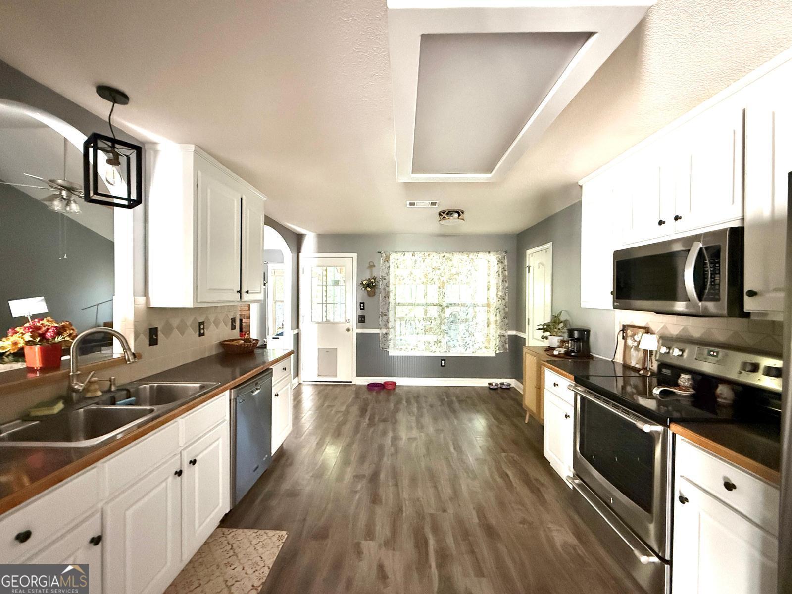 Welcome to your new home! This charming 3-bedroom, 2-bath ranch is nestled in a quiet cul-de-sac surrounded by a beautifully landscaped yard - the perfect balance of comfort and serenity. Step through the bright, open foyer into a spacious living area where the dining room, family room, and kitchen flow seamlessly together - ideal for gatherings or relaxing nights in. The kitchen features crisp white cabinets, offering both elegance and abundant storage. Your master suite retreat boasts vaulted ceilings, a large walk-in closet, and a private bathroom with dual vanities, a soaking tub, and a separate shower - your personal sanctuary after a long day. Enjoy outdoor living on the covered patio with ceiling fan, overlooking a fenced backyard where kids or pets can play freely. It's the kind of home where memories are made, and every detail has been designed with comfort in mind. Don't just buy a house - invest in your lifestyle.