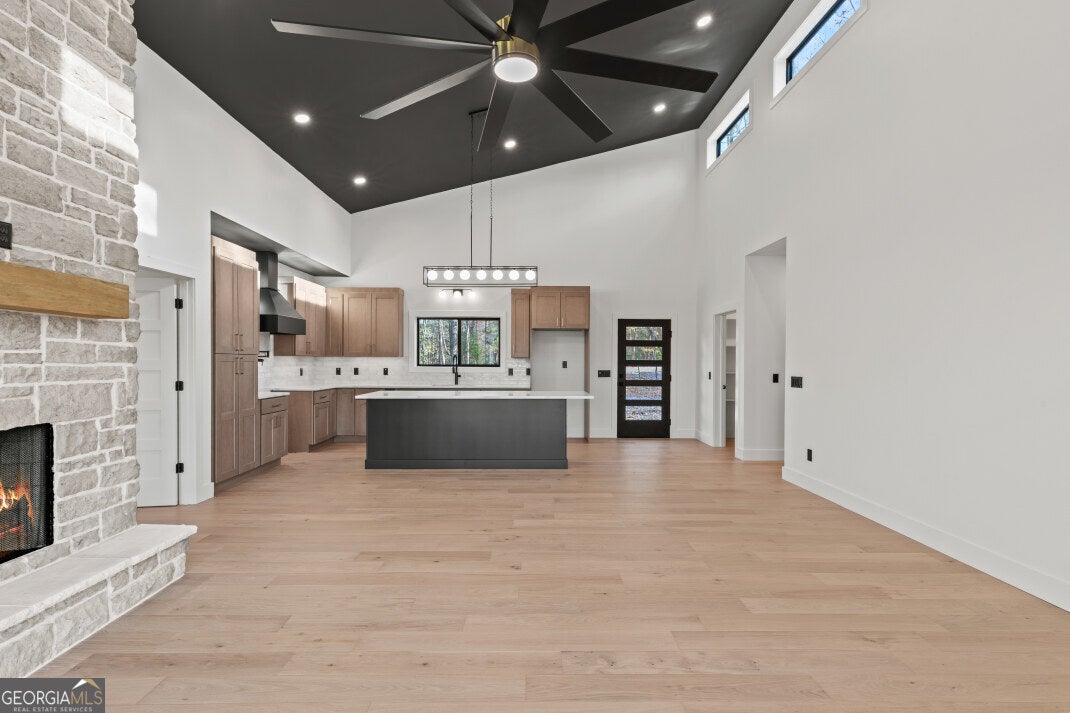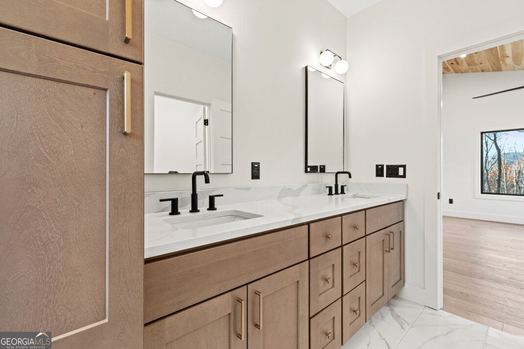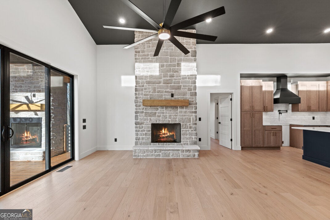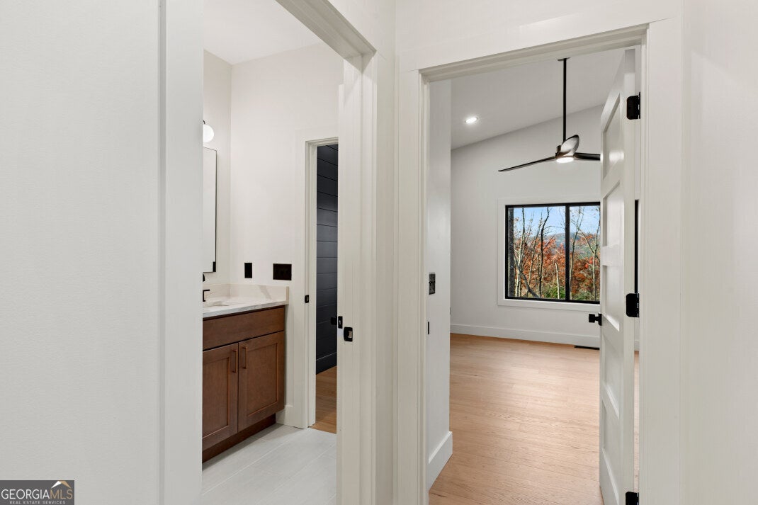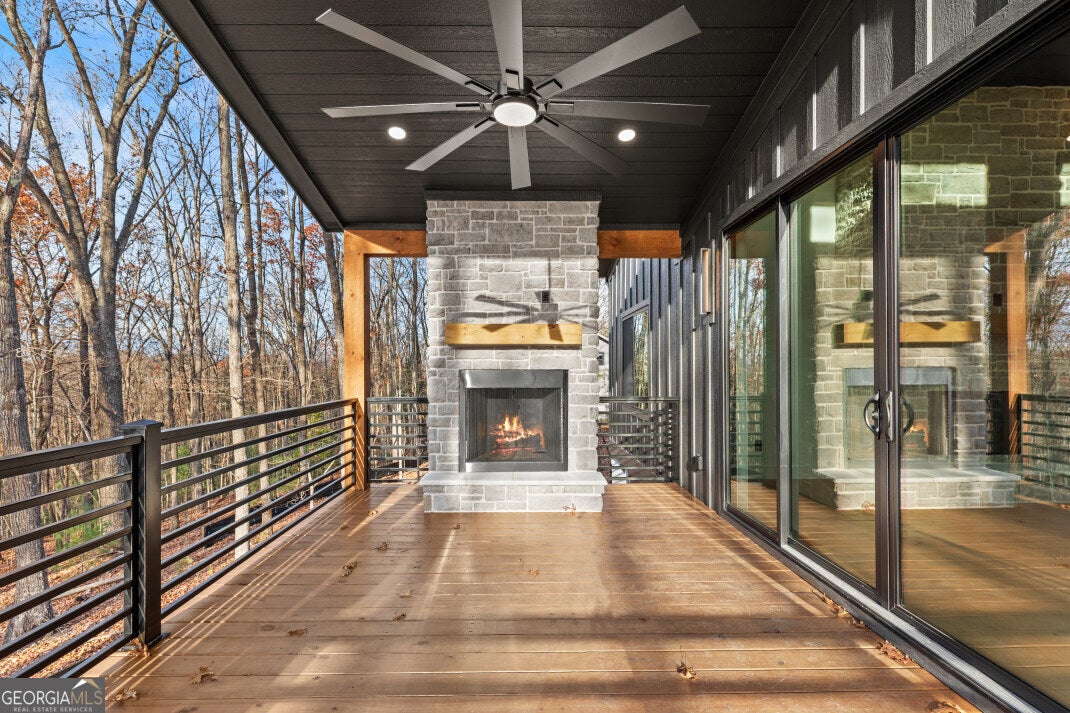 Your dream mountain escape awaits in a home that combines contemporary design with breathtaking outdoor living. This 2025-built home, essentially complete, offers 1,521 square feet of thoughtfully designed living space and a 279-square-foot covered porch perfect for enjoying the outdoors year-round. The vaulted-ceiling entryway opens into a spacious great room featuring a fireplace and large glass doors leading to the back deck with its own outdoor fireplace, creating the ideal setting for entertaining or relaxing. The kitchen includes a walk-in pantry and wet bar, blending style and function with modern finishes, while the adjoining laundry and mudroom provide convenient access from the two-car garage. The main level also includes a guest bedroom and full bath, while the owner's suite features vaulted ceilings, double vanities, a walk-in closet, and a luxurious walk-in shower with dual shower heads. The 528-square-foot garage offers 11-foot ceilings and crawlspace access for added storage. Built with low-maintenance NewTech composite siding and hardwood ceilings, this home is as durable as it is beautiful, with no worries about carpenter bees. Located just minutes from Coopers Creek and USFS lands, this modern build combines contemporary comfort with the peace and beauty of the mountains, making it an incredible opportunity to secure a one-of-a-kind property that is sure to sell quickly.