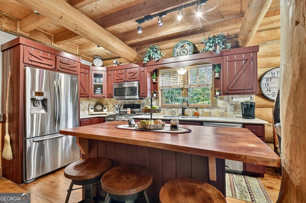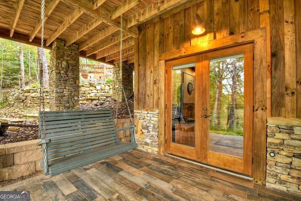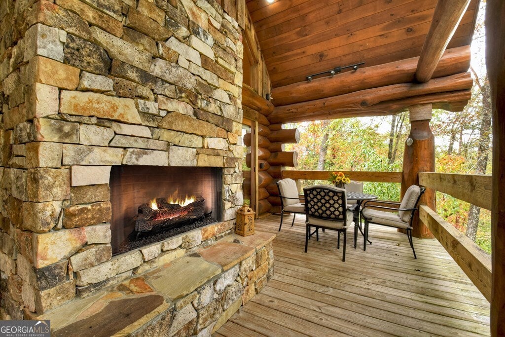 Remarks: BRITISH COLUMBIAN CUSTOM LOG HOME COMPOUND w/ Toccoa River access! Spacious open floor plan featuring 4BR, 3BA home w/ additional sleeping loft/office featuring a BR/BA on each level. Interior finishes are the perfect blend of rustic logs & drywall complimented by the natural pine floors & tile floors throughout. Offering the best of outdoor living from many places to enjoy this spectacular mountain view setting of the mountains & Toccoa River flowing in the distance including on one of the large covered porches, terrace patio w/ rock fireplace, outdoor firepit or custom log pavilion & outdoor dining. Fin. Terrace level offers Rec/Media Rm. w/ gorgeous wet bar, floor to ceiling stone fireplace & entertaining space w/ 2 private bedrooms & BA. Soaring cathedral ceilings throughout, walk in tile showers in bathrooms, exposed custom beams, Rock gas log fireplaces in Great Rm & in Media Rm on terrace level, lots of windows & fixed glass in LR & oversized custom antler chandelier in dining rm. Custom rich wine colored z-bar door kitchen cabinetry w/ stainless appliances & bar/island w/ overhang for bar seating. Located within walking distance to Old Toccoa Golf Course & a 15 min. drive into downtown Blue Ridge + deeded access + public access to the Toccoa River just a stone's throw away. Mostly all paved road frontage including newly paved driveway & parking area. Property also features 2 outbuildings: a storage shed & workshop/storage garage. Professionally landscaped w/ outdoor lighting adding to the ambiance of this beautiful mtn. home. This compound comes on 2 lots totaling 1.66 acres of mature hardwoods & native flora including gorgeous natural boulder retaining wall & planter. Additional acreage is available for purchase if interested in even further future privacy or prime investment potential. This custom log home can be purchased fully furnished turnkey - furniture to be purchased separately via a Personal Property Bill of Sale for $20,000.