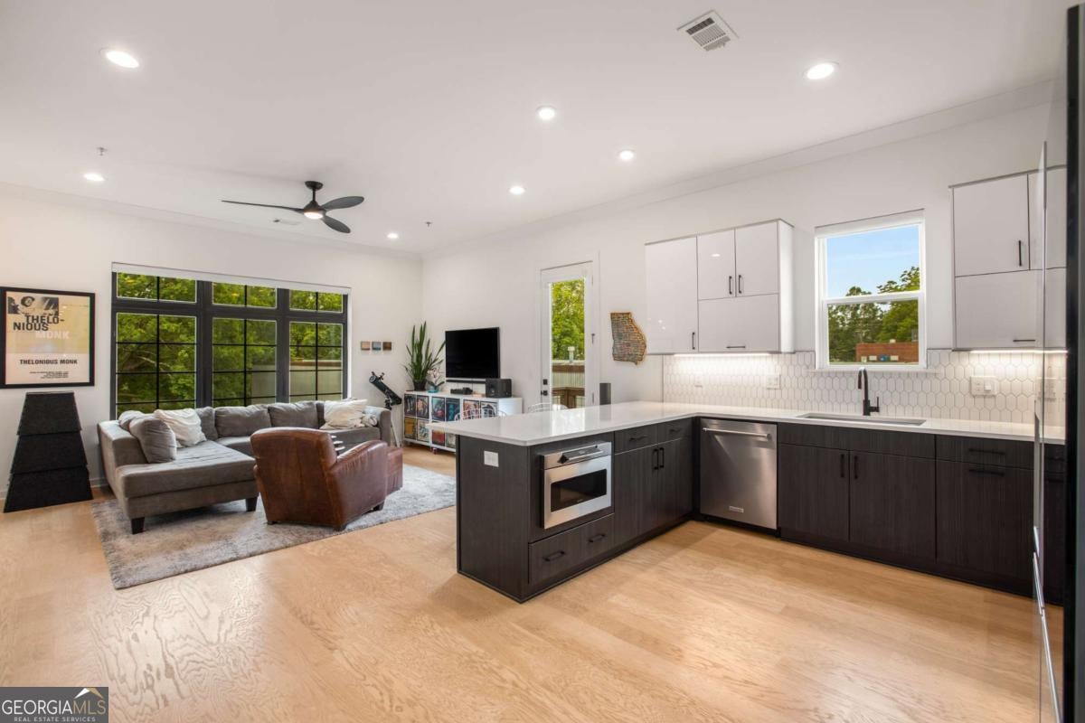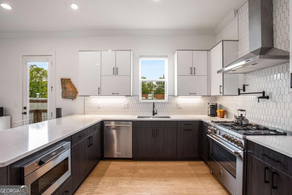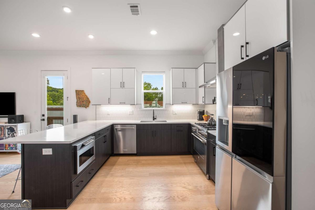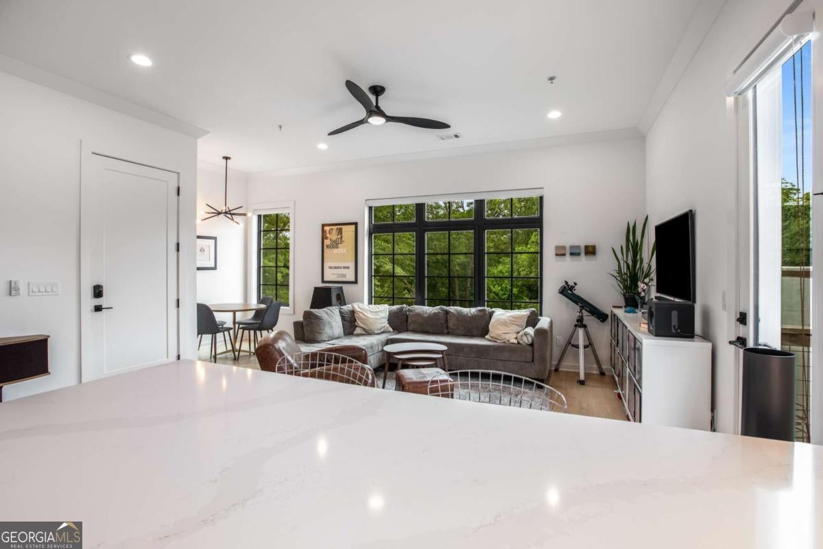 Top-Floor Luxury + Walkable Decatur Lifestyle! Welcome to The Flats 302, the premier unit in an exclusive 6-home community located in sought after, City of Decatur. This stunning top-floor flat offers the best of both worlds: elevated, modern living, paired with the convenience of all things Decatur-acclaimed restaurants, shops, festivals, parks/greenspace and more! Inside this amazing, top floor condo, enjoy 10' ceilings, wide-plank wood floors, and a beautifully designed kitchen for the chef, complete with quartz countertops, custom cabinetry, a Bertazzoni gas range, Bosch dishwasher, Broan vent hood, soft-close drawers, tiled backsplash and pot-filler! The open concept living space features a abundant natural light, dining area, and plenty of room for entertaining or relaxing in style, plus a private grilling balcony off the kitchen. The oversized owner's suite offers a true retreat, featuring an accent wall, ensuite bath with double vanities, floor-to-ceiling tile, and a frameless glass shower, plus a customized walk in closet. Two additional bedrooms, large secondary bathroom, also with double vanities, separate powder room for guests, custom window blinds and a full-sized laundry room complete the interior. But the true showstopper? An expansive rooftop terrace, with full decking and room enough container gardening, dining under the stars, naps in a hammock, lounging with a book, soaking in some sun, or a sunset toast with friends! Additional highlights include an attached, 2-car garage, unique to the top floor condos; secured building access, and a community garden and greenspace. A rare opportunity to live in best unit in this boutique community, in one of the South's most beloved neighborhoods - acclaimed dining, shopping, festivals, parks - plus its convenient proximity to Agnes Scott College, Emory University and Hospitals, and more - this is the turnkey, Decatur lifestyle you have been searching for! Owner will consider a LEASE PURCHASE.