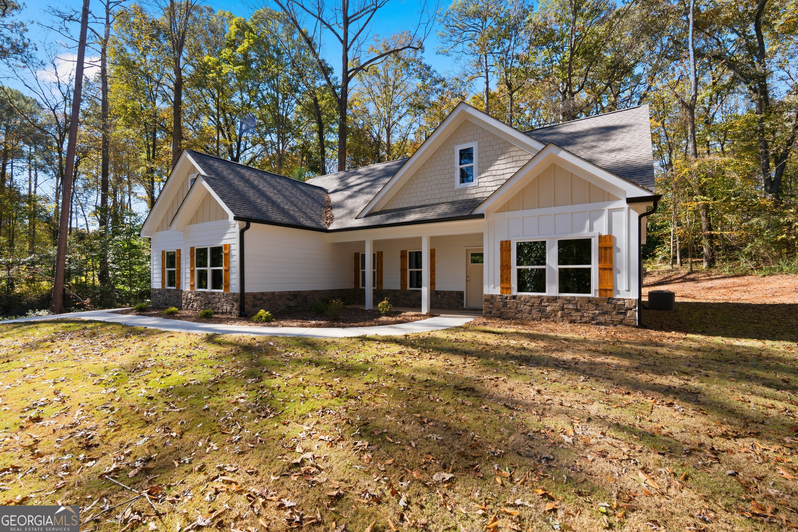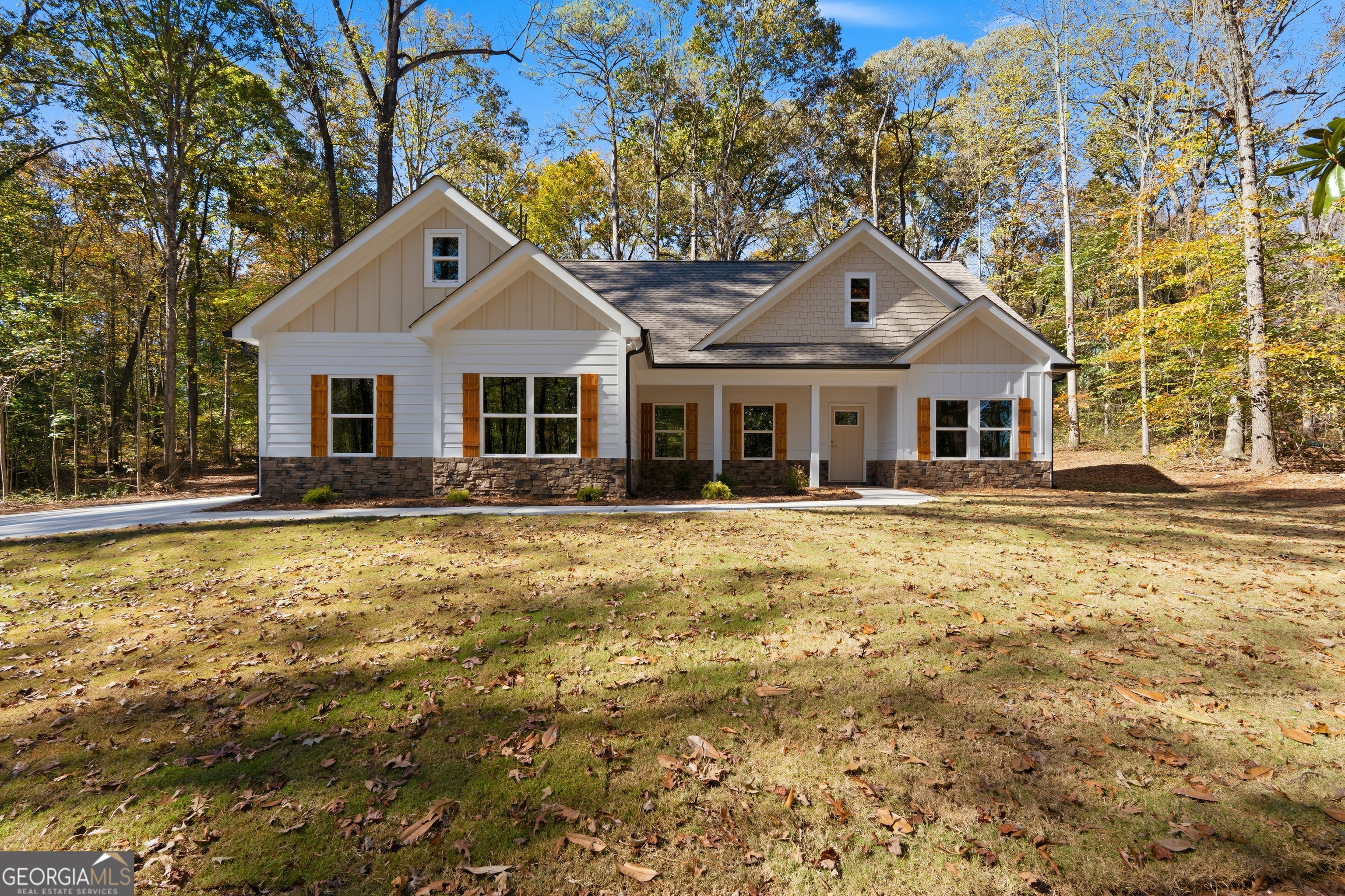 Beautiful New Construction home on a private 1.5 acre lot with mature trees. Spacious open concept living room, dining room and Gourmet kitchen with designer cabinets. Tile backsplash, solid surface countertops. LVP flooring throughout home. Exterior features include Hardy plank siding, architectural roof and sod on all sides of the home. Double garage with openers. Carrier HVAC system. Covered front and rear porch with stain grade wood ceiling. Minutes to I-20