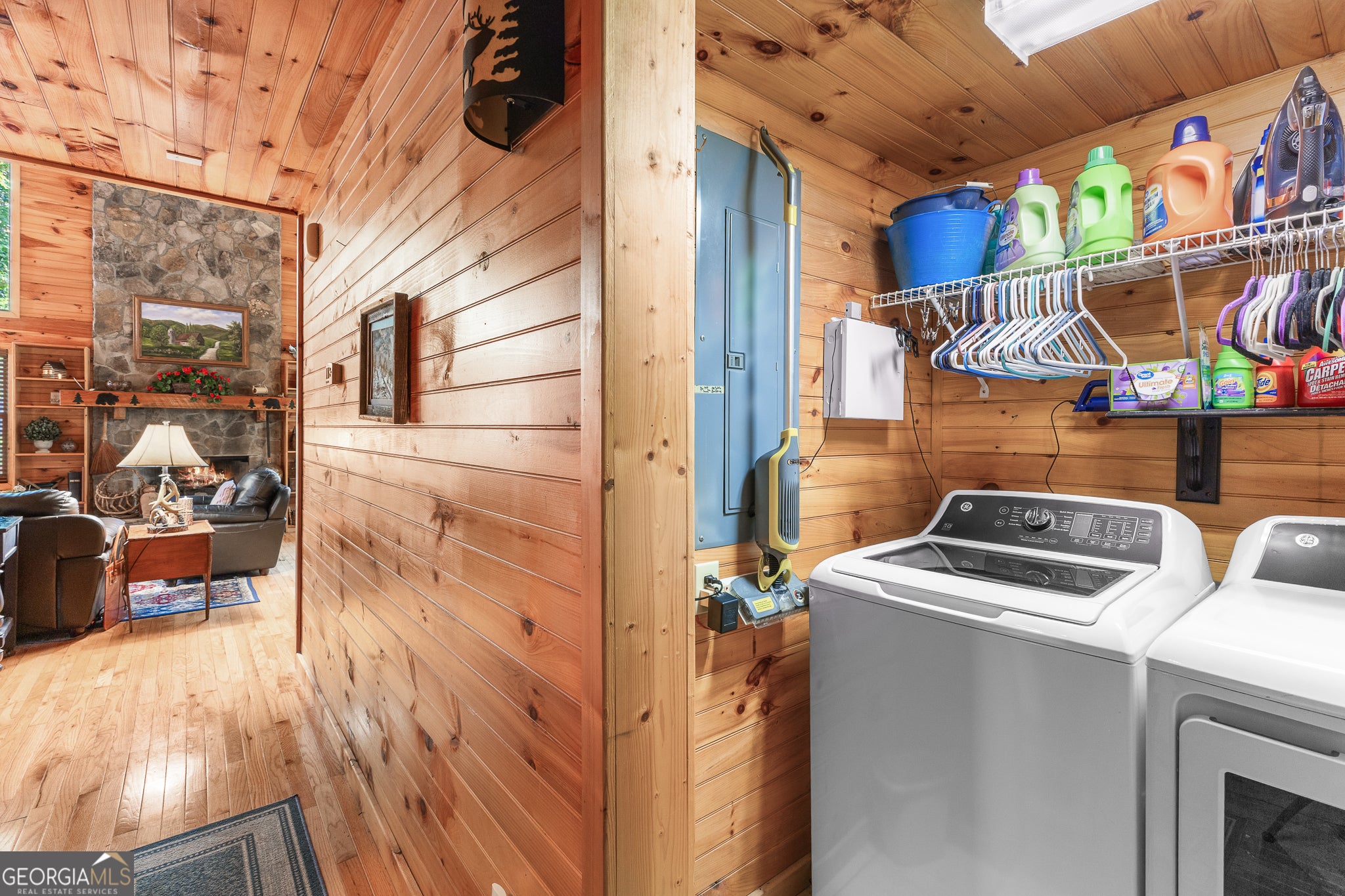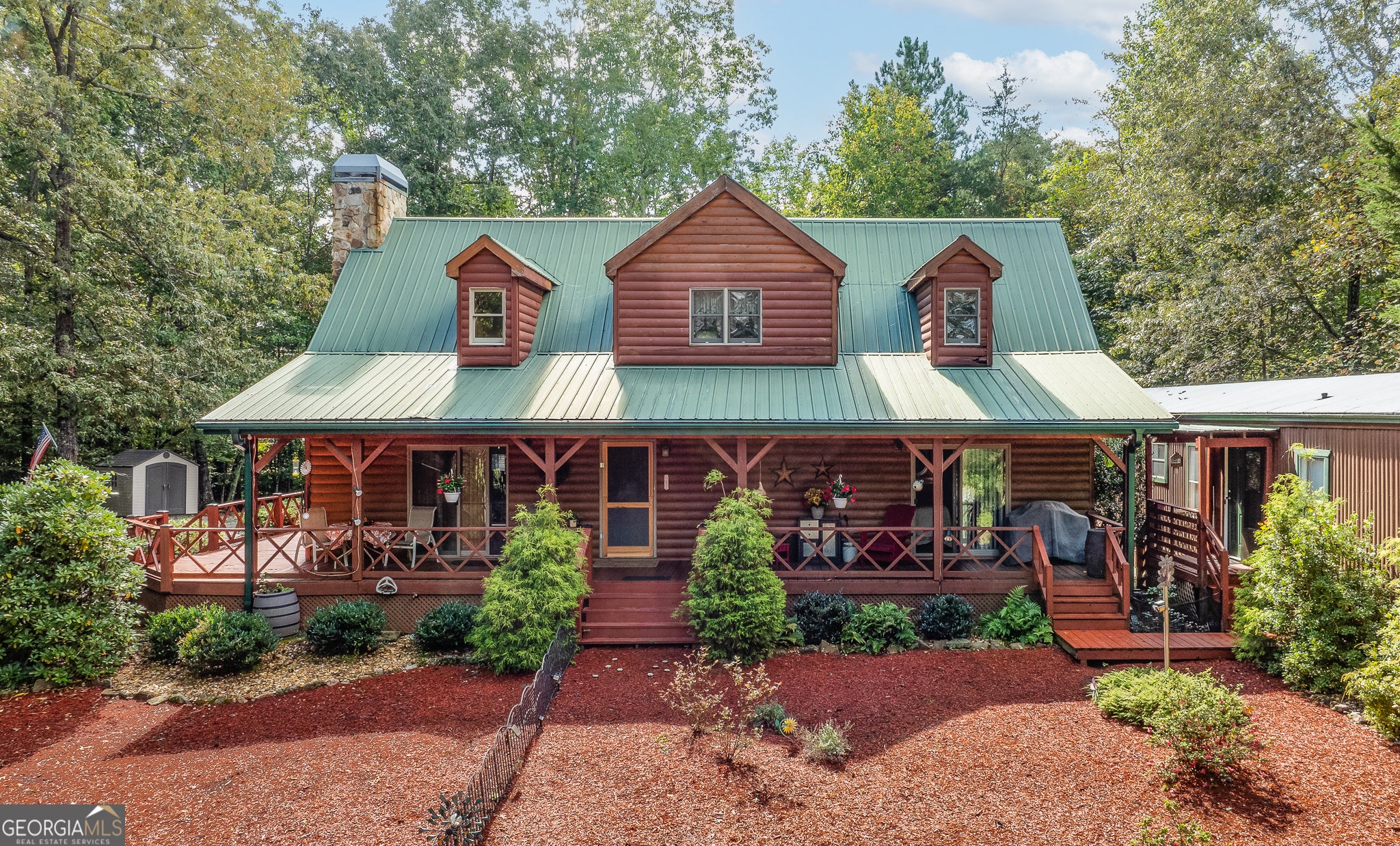 Mountain Paradise with Dual Living! Stunning Log Cabin & Separate Guest/Rental Mobile Home on 1.79 Acres in Cleveland, GA Escape to your own mountain sanctuary! This one-of-a-kind property on 1.79 acres offers the perfect blend of rustic cabin charm and versatile modern living, nestled in the scenic mountains of Cleveland, GA. The Main Home is a stunning, beautifully maintained log cabin that embodies the cozy cabin aesthetic. Key features include: -A-Frame Architecture in the living/dining area with soaring, tongue-and-groove pine ceilings. -Massive Stone Fireplace creating a spectacular focal point. -Large Picture Windows that frame beautiful wooded views. -Gorgeous Wood Finishes throughout, from the walls and ceiling to the flooring and kitchen cabinets, giving it that true mountain feel. -Loft Area overlooking the main living space, perfect for an office or additional sleeping area. -Covered Wraparound Porch ideal for relaxing and enjoying the tranquil surroundings. -Modern Kitchen with white cabinets and granite countertops. -Luxurious Primary Suite with an attached bath featuring a dual vanity and a corner soaking tub/shower combo. The Second Residence (Immaculately Maintained Mobile Home) is 3 bed/2 bath and offers exceptional flexibility and is attached to the main cabin via a covered breezeway, creating a seamless connection while maintaining privacy. This space is perfect for: -In-Law Suite -Guest Quarters -Long-Term Rental Income -Short-Term Vacation Rental (Airbnb/VRBO) Exterior & Location: The property is situated on a spacious 1.79-acre lot, providing plenty of privacy and a serene, wooded backdrop. You'll love the convenient proximity to the charming towns of Cleveland and Helen, offering local amenities, dining, and easy access to the numerous outdoor adventures of North Georgia. Don't miss this rare opportunity for a dual-living mountain retreat!