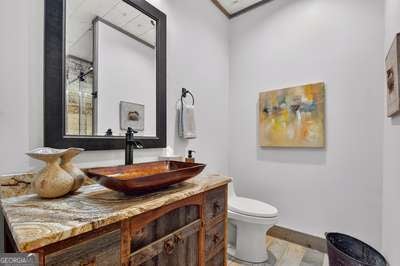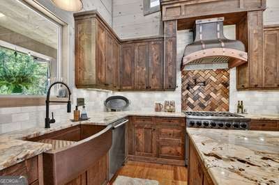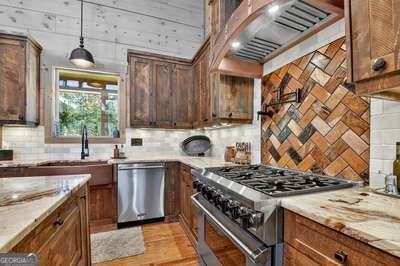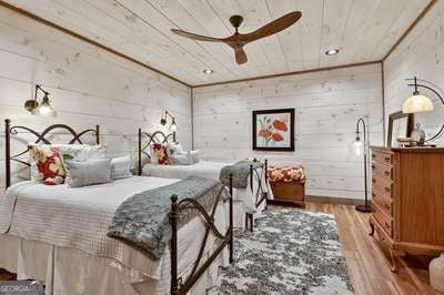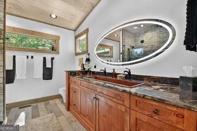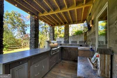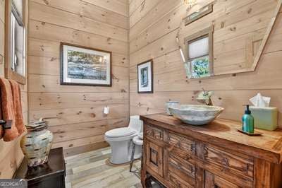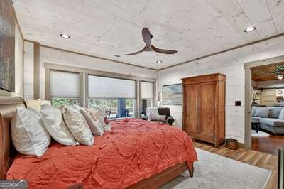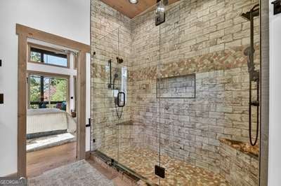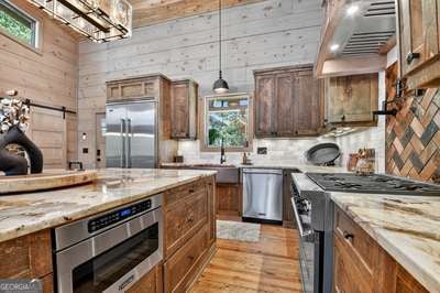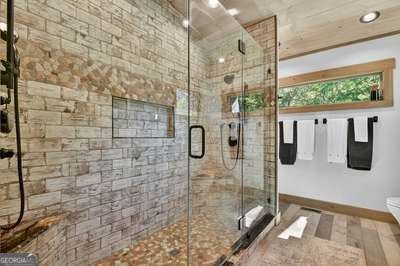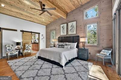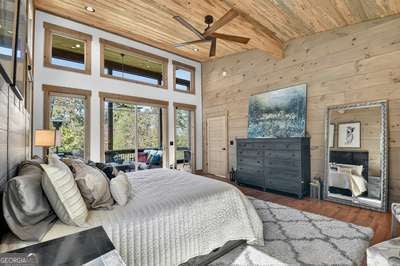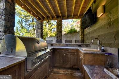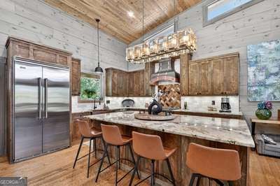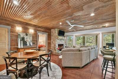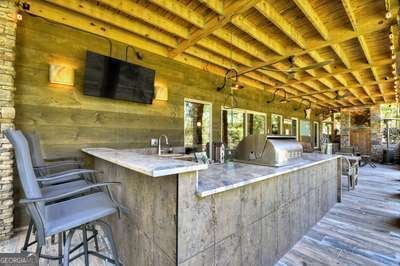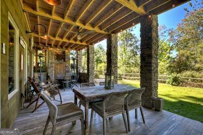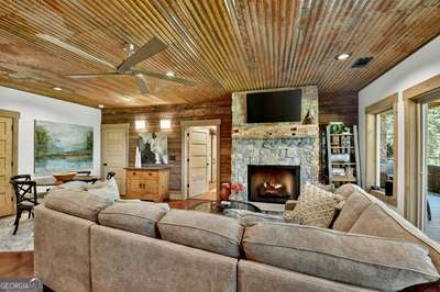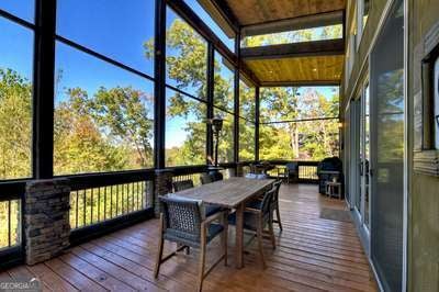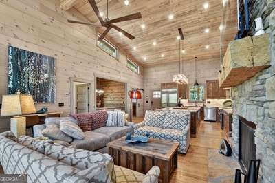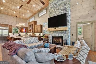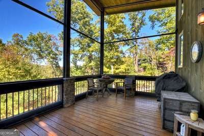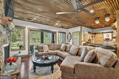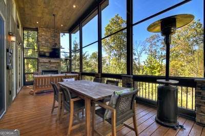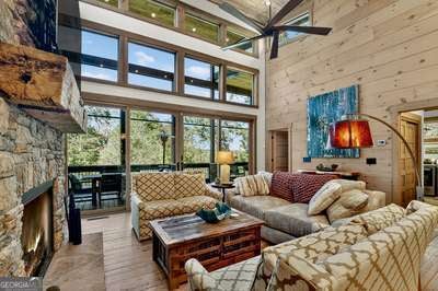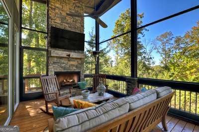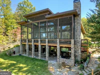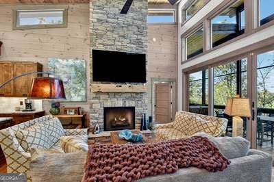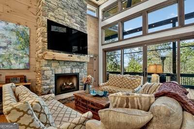 Modern luxury meets everyday comfort in this stunning three-bedroom, two full bath, and two half bath home showcasing exceptional design and craftsmanship. The open-concept main level features a floor-to-ceiling stone gas fireplace, walls of windows, a chef's kitchen with high-end appliances, a spacious island, and a walk-in pantry. The main-level primary suite offers a large bedroom and spa-inspired bath. Enjoy outdoor living year-round on the screened porch with a gas log fireplace overlooking the beautifully landscaped grounds. The terrace level is equally impressive, featuring a spacious great room with another stone gas fireplace, a wet bar, office space, and two additional bedrooms. Step outside to a covered patio with a full outdoor kitchen - perfect for entertaining or relaxing outdoors. Additional highlights include a full-house generator, fenced backyard, oversized two-car garage (heated and cooled) with a workshop, ample storage, and a gorgeous fire pit area. Best of all, this gated community has River Access on the Toccoa River for recreation and relaxation. This home combines modern luxury, functionality, and scenic beauty - truly a must-see! Call me today!