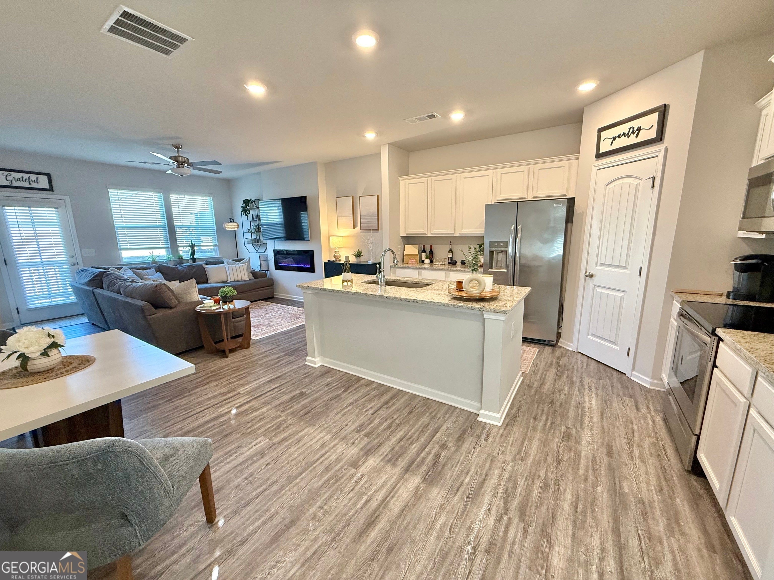 Adorable Home in an amazing location-short walk to Sidelines & Kroger! This home is practically NEW, & one of the last homes built in the subdivision. The kitchen is larger in this floorplan with extra cabinets and Large Walk in Pantry! Kitchen offers white cabinets, granite, Stainless Steel appliances. LVP flooring throughout the main level. Upstairs is an Owners Suite with trey ceiling, Master bath offers a 5 ft. shower, double vanities, and large walk in closet. Secondary Bedrooms are Spacious! You can't beat the location less than 1 mile from Hwy 575 N (off Sixes Road) 5 minutes to Woodstock Outlet and Costco. Less than 10 minute drive to Downtown Woodstock!