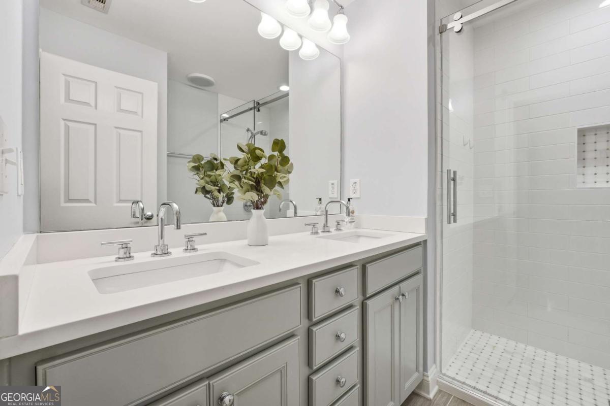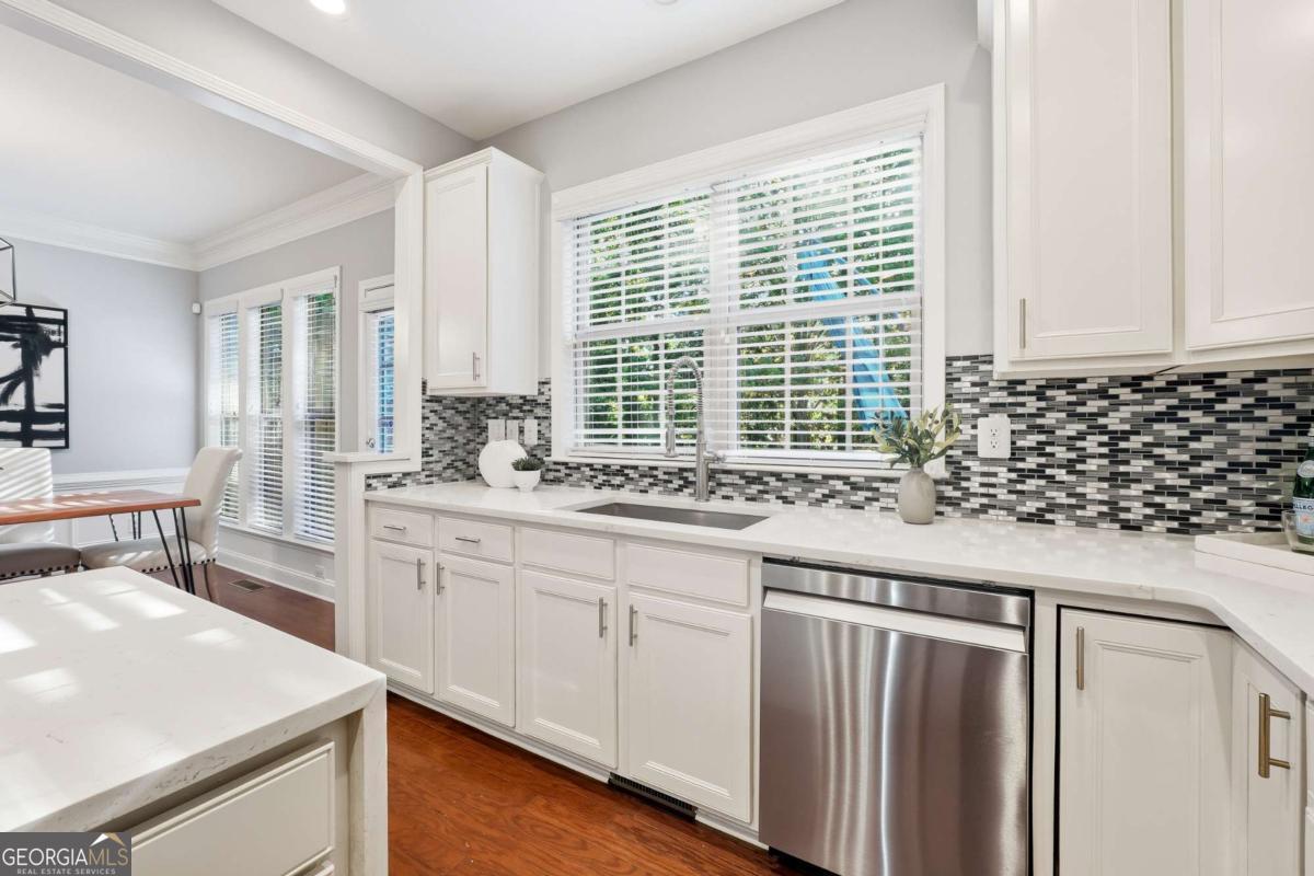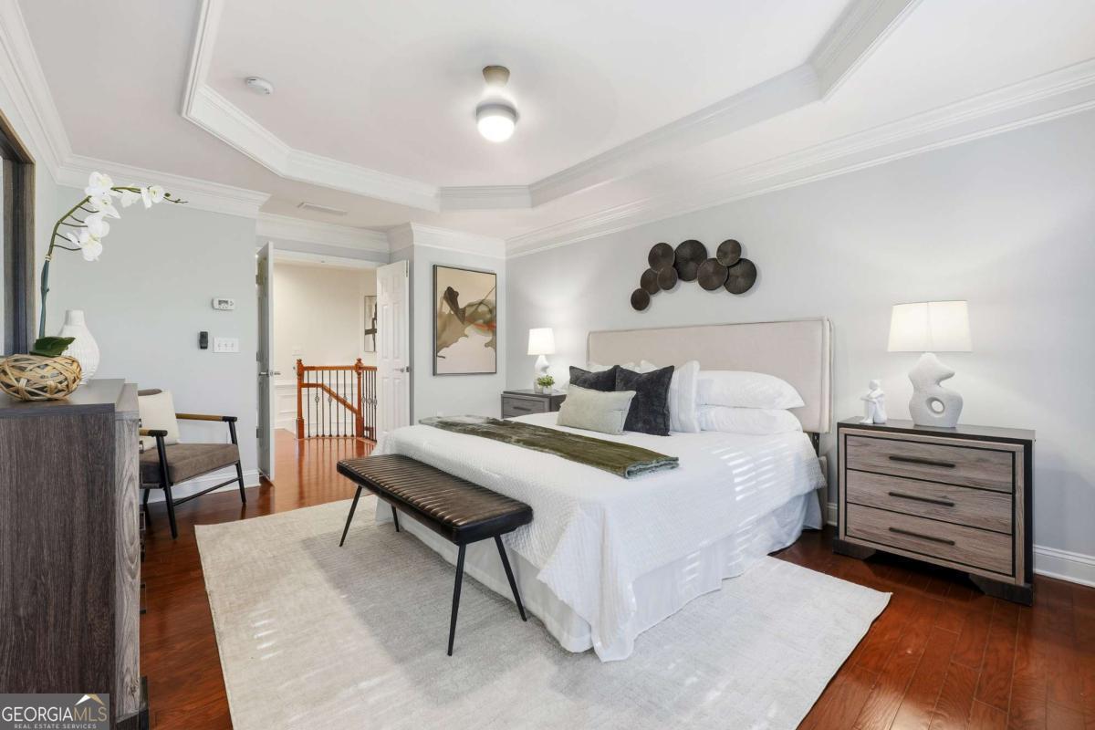 Don't miss this opportunity in The Park at East Paces! This boutique gated townhome is located in the heart of Buckhead and is walkable to top Buckhead shopping, restaurants and nearby parks. Enjoy low HOA fees, no rental restrictions and fantastic amenities, including gated access, a large community pool and a dog park. Sought-after end unit! Spend time outside on the NEW wooden deck, allowing for excellent outdoor entertaining and relaxing. BRAND-NEW Roof, LeafGuard gutters and epoxy floor on garage! This home features gorgeous hardwoods throughout, freshly painted, crown molding, and more. Renovated kitchen features Zline stainless steel hood and waterfall island, gorgeous quartz countertops, and NEW appliances including a second fridge. BRAND-NEW washer, dryer AND 75inch TV stays! Have friends and family over for dinners and entertaining in your separate dining room! Upstairs, discover the luxury owner's suite with an oversized, custom-built walk-in closet and an en suite fully renovated bathroom with a separate spa bathtub and frameless, walk-in shower. Two additional bedrooms, a shared renovated bathroom and a convenient laundry room complete the upstairs. This townhome is a rare find in such a sought-after location!