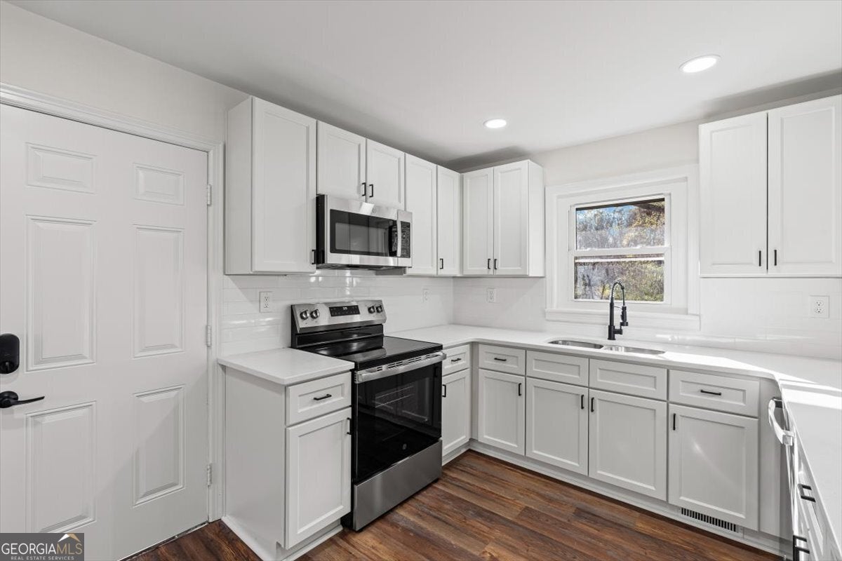 Stunning Fully Remodeled Home in Cartersville City School District! Welcome to your dream home! This beautifully remodeled property has been completely transformed inside and out with top-quality finishes and modern upgrades. Located in the highly sought-after Cartersville City School District, it offers both comfort and convenience for families. From the moment you arrive, you'll notice the fresh landscaping, new front porch stoop, and brand-new deck overlooking the large, fully fenced backyard-perfect for kids, pets, or outdoor entertaining. Step inside to an open, inviting layout with brand-new flooring throughout, stylish light fixtures, and a bright, modern feel. The kitchen is a showstopper, featuring brand-new soft-close cabinets, quartz countertops, a designer tile backsplash, and all-new stainless steel appliances. Upstairs, the remodeled bathroom includes quartz countertops, a tiled shower with a bathtub, and sleek glass shower doors. The lower level showcases a brand-new master suite addition with a spacious walk-in closet, quartz-topped vanity, and a stunning walk-in tiled shower-the perfect retreat. Every detail has been considered: freshly painted exterior and interior, new doors, trim, flooring, and fixtures throughout. The unfinished basement also offers plenty of storage or future expansion possibilities. With everything replaced and updated, plus a large fenced backyard in the prestigious Cartersville City School District, this home is truly move-in ready. Schedule your showing today and see all the incredible upgrades for yourself! AGENT IS ALSO THE OWNER