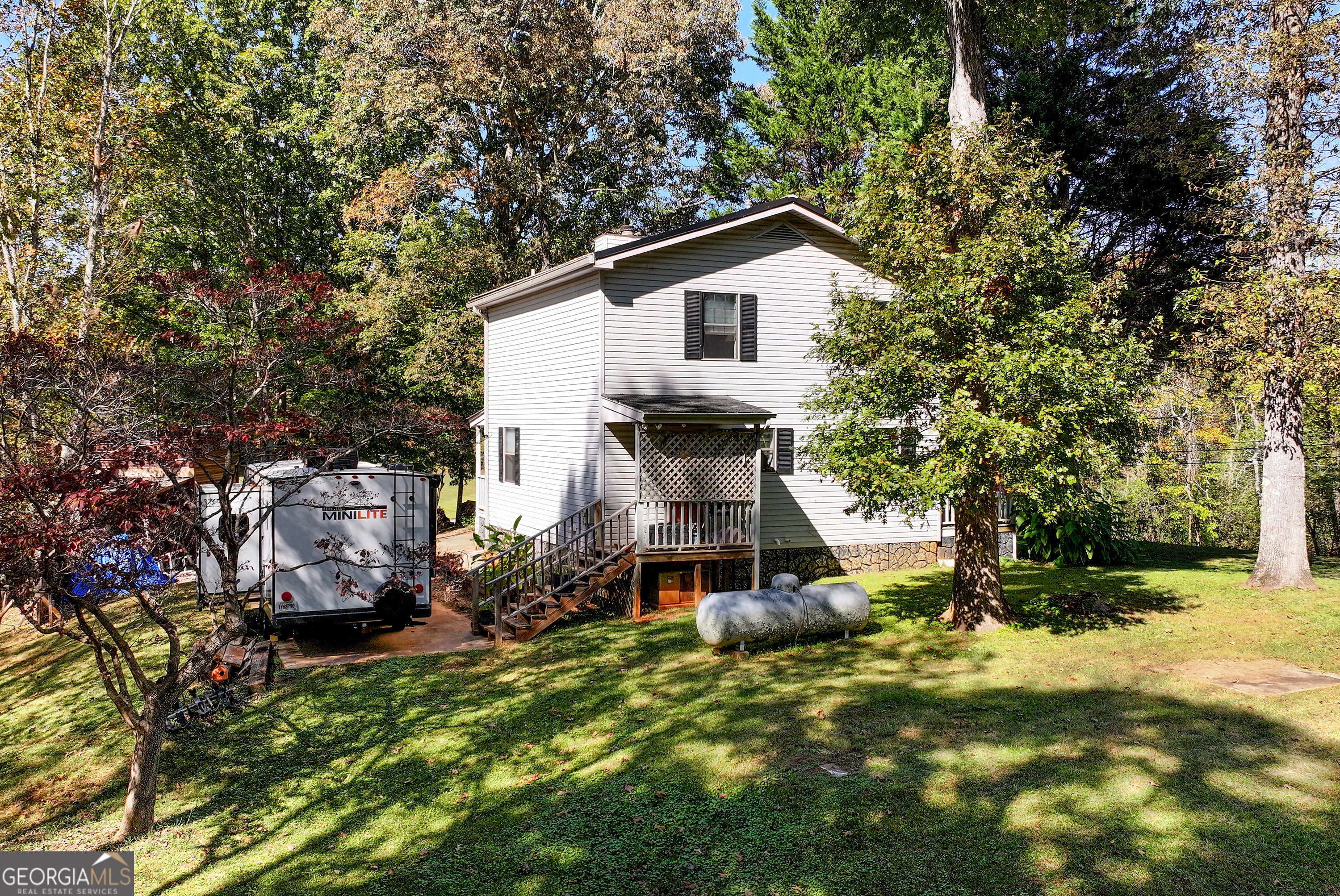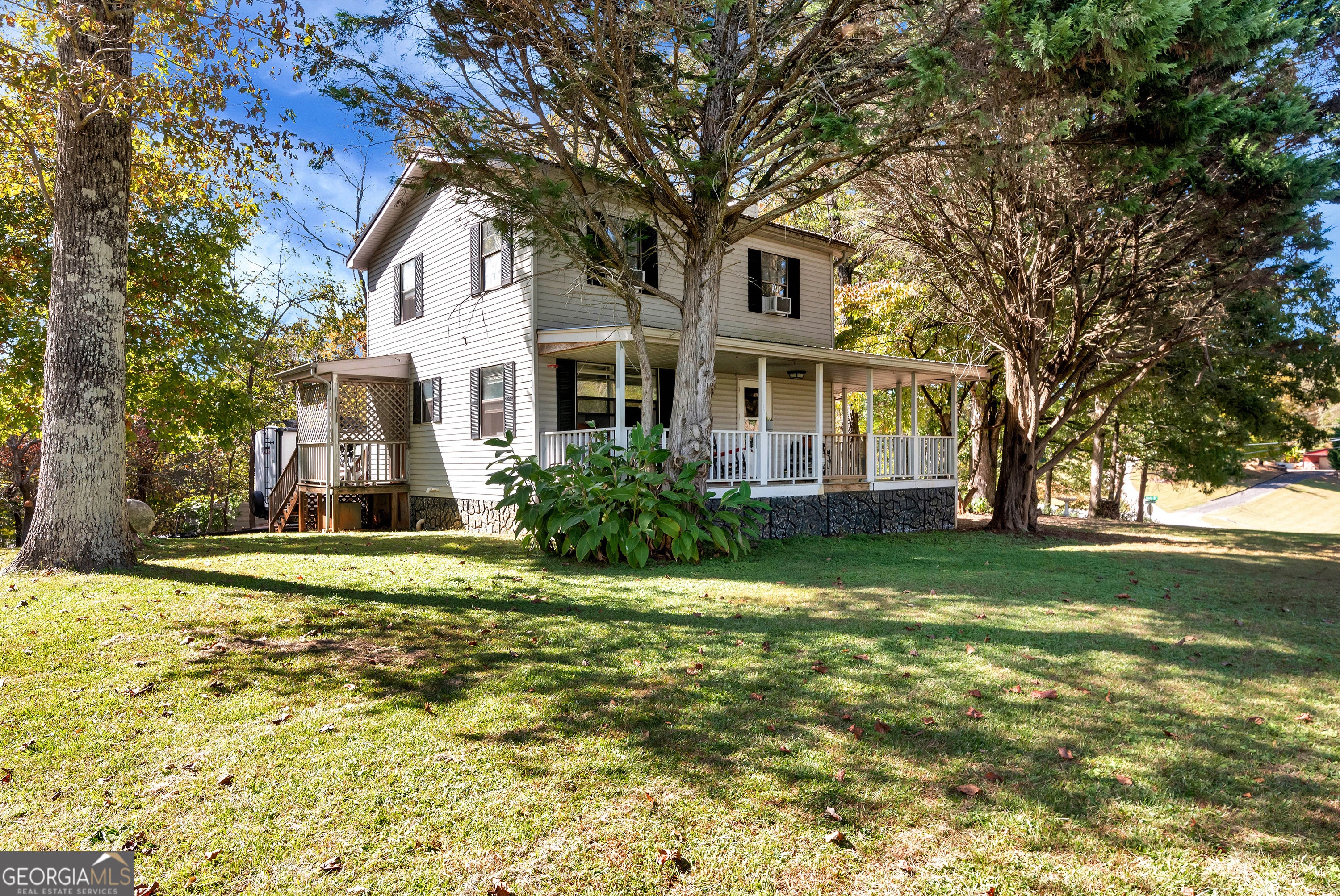 Nestled in the foothills of North Georgia, this 2-bedroom, 2-bathroom, two story home captures the perfect balance of comfort and natural beauty. Enjoy peaceful surroundings, expansive mountain views, and a large covered wrap-around porch that's perfect for relaxing outdoors year-round. Inside, the living room features a beautiful fireplace that creates a warm and inviting atmosphere. The thoughtful layout provides distinct living and dining areas while maintaining a cozy, connected feel throughout the home. Both bedrooms offer plenty of space and natural light, with a full bathroom on each level for convenience. Outside, you'll find ample driveway parking and plenty of space to take in the quiet mountain setting. Whether you're sipping coffee on the porch, hosting friends for the weekend, or simply enjoying the peaceful views, this home offers an ideal retreat from the everyday. Perfect as a full-time residence, weekend getaway, or mountain investment property, this Cleveland gem is ready to welcome its next owner.