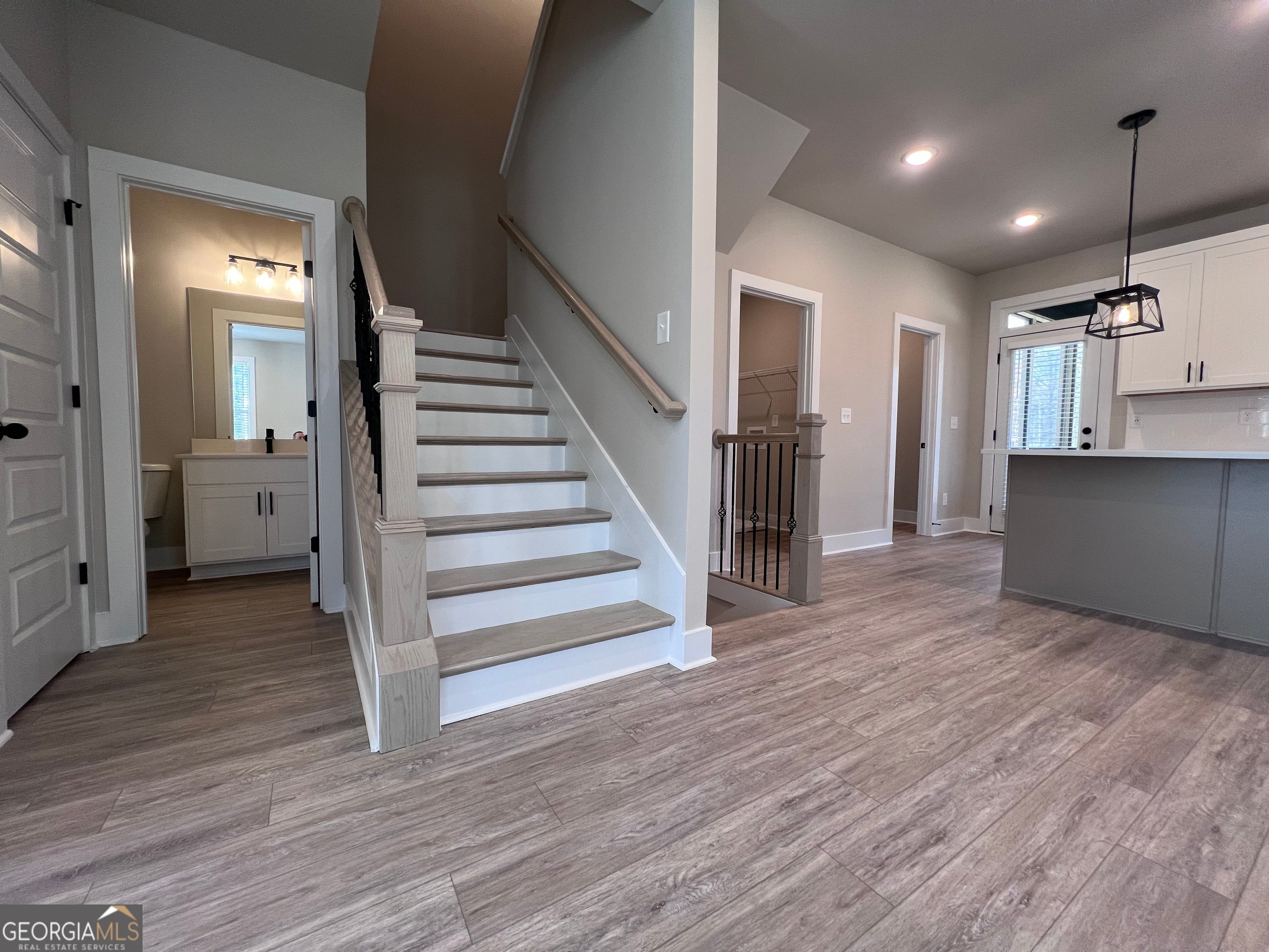 Richardson Housing Group - the Kinsley END UNIT floor plan, a 5-bedroom design with a covered screened-in back deck in the gated community of Parkstone Row in Tucker, GA. This exclusive 33-home neighborhood is ideally located just 12 miles northeast of Atlanta and offers quick access to I-85, I-285, and Highway 78, placing shopping, dining, parks, and local events all within convenient reach. Parkstone Row is also located in the highly regarded Parkview High School District, making it a top choice for buyers seeking quality schools and convenience. The homes in Parkstone Row feature a premium list of modern finishes that outshine the competition. Brick exteriors with cedar accents, 3/4 view front doors, and 30-year architectural-style shingle roofs create curb appeal and long-lasting value. Inside, you'll find designer kitchens with quartz countertops, shaker-style cabinetry, stainless steel appliances, subway tile backsplash, and pendant lighting over the island. High-end details continue throughout with 1x6 baseboard trim, 1x4 door casings, 1x4 window surrounds, 5-panel interior doors, flat-panel wainscoting in the foyer and dining area, black hardware and fixtures, oak site-finished stained hardwood stairs, and fully tiled master showers on the floor and walls with frameless glass doors. LVP flooring extends through the main level and continues upstairs in the common areas, providing both durability and style where it's often overlooked. All 3 levels feature 9-foot ceilings, and the main level is enhanced by 6-foot-tall windows that fill the space with natural light. Each home also includes an electric vehicle charging outlet. HOA dues cover lawn maintenance, termite bond, and select exterior building maintenance, offering a low-maintenance lifestyle in a secure, gated setting. The home is 100% completed, and the photos shown are of the actual home currently listed for sale. Ask about up to $10,000 in closing cost incentives when using an approved lender, plus options for 100% financing or a 1% below-market interest rate.