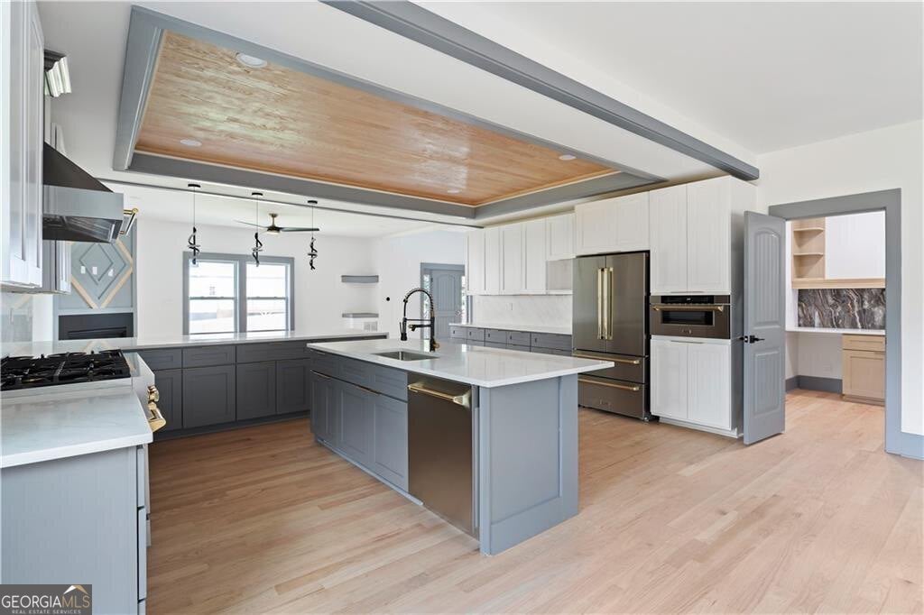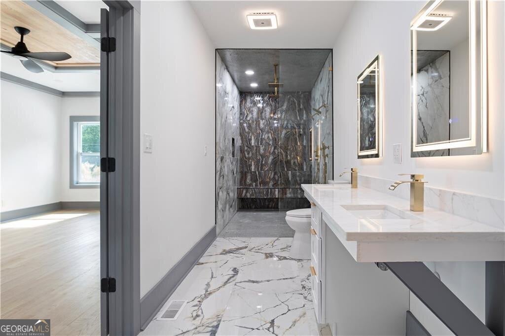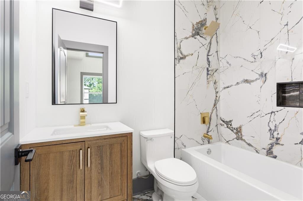 Welcome to this stunning new construction modern farmhouse, where timeless elegance meets today's luxury in the heart of East Lake Terrace! This stunning 5-bedroom, 5.5-bathroom modern farmhouse offers 4,056 square feet of beautifully crafted living space on more than an acre, perfectly combining elegance, comfort, and functionality. Located in one of East Lake's most established neighborhoods, you're just minutes from Barker Bryant Memorial Park, East Lake Golf Club, Oakhurst, downtown Atlanta, and a variety of shops and restaurants. Step inside to soaring ceilings and expansive natural light that highlight the open-concept floor plan. The spacious living room, complete with a cozy fireplace, flows seamlessly into a light-filled breakfast area and a stylish deck, perfect for outdoor entertaining. Off the back deck, enjoy your very own outdoor fireplace, creating a private retreat for year-round gatherings. The chef's kitchen features custom shaker cabinetry, gorgeous quartz countertops, stainless steel appliances, and a spacious walk-in pantry with a custom wine bar, designed for both casual evenings and sophisticated hosting. The main-level owner's suite or guest suite offers flexibility, featuring a walk-in closet and full bath, perfect for multi-generational living or a home office. Upstairs, the primary owner's retreat stuns with tray ceilings, a fireplace, and a luxurious en-suite bath with a soaking tub, oversized walk-in shower, dual vanities, and built-in closet organization. Let's not forget, in the primary the additional his-and-her suite provides flexibility and privacy, while three additional bedrooms and all have three full baths that offers ample space for family and guests. Outside, the oversized lot offers endless potential-imagine your own pool, basketball court, or pickleball court. A 3-car garage includes an EV charging station hookup for added convenience. Don't miss this rare opportunity to own a masterfully designed new construction home that truly has it the space, style, and an unbeatable location!