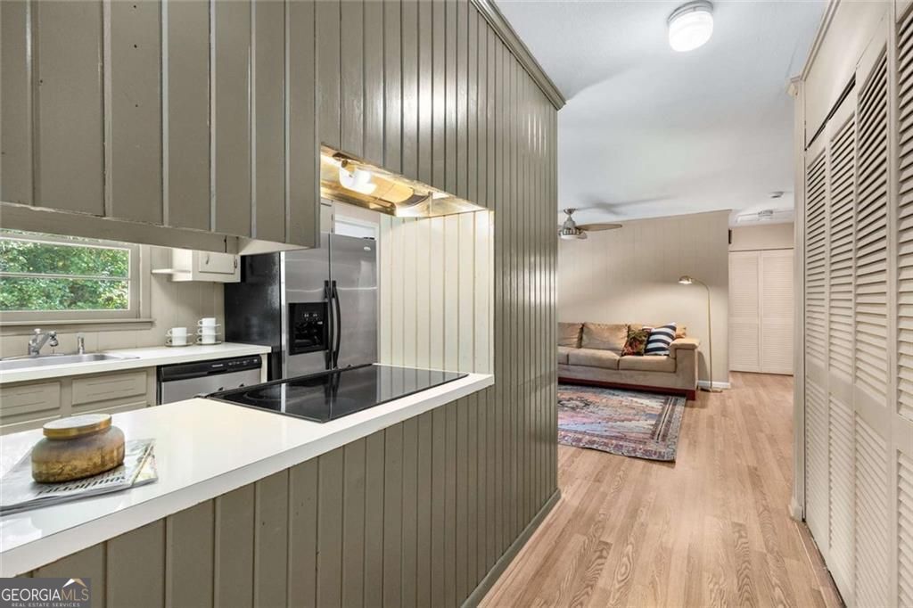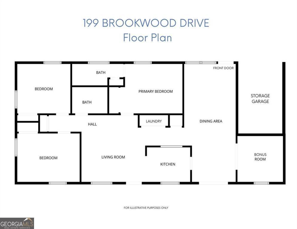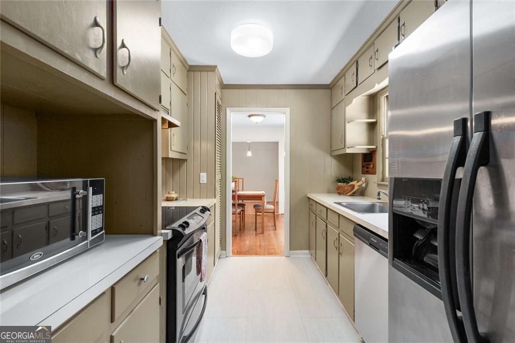 Want to be in the heart of Marietta City, minutes from the Marietta Square at an affordable price? Well, let me introduce you to 199 Brookwood Drive. This sweet 3-bedroom, 2-bath ranch is all about location! You'll love being able to get to the Marietta Square in minutes-where you can grab coffee, shop the weekend farmers market and boutiques, enjoy local restaurants, and take in all the fun, year-round community events. You'll open the front door to the formal family room which runs the full depth of the home, and you will be greeted with freshly buffed, warm and welcoming hardwood floors and plenty of natural light. You'll even get a tree lined view through the back of the home. Just around the corner the galley kitchen is equipped with a mix of more modern stainless-steel appliances, including a brand-new dishwasher and some adorable vintage touches. Open to the kitchen is a more private den on the back of the home which is ideal for cozy nights. The primary bedroom with attached bathroom and 2 guest bedrooms with hall bathroom are just past the den. Bonus! A portion of the garage has been converted into extra living space, giving you even more room to spread out. Home library, gym, playroom? So many options! The front half of the garage is perfect for storage and maybe a golf cart. As you tour the outside be sure to notice the brand-new roof, new rear wood stairs and the gorgeous new broken slate patio inside the fully fenced backyard-perfect for relaxing or entertaining. While the home is move-in ready, there's also a great opportunity to make some updates and truly make it your own. And at this price, it's an incredible value for such a great location in the city of Marietta!