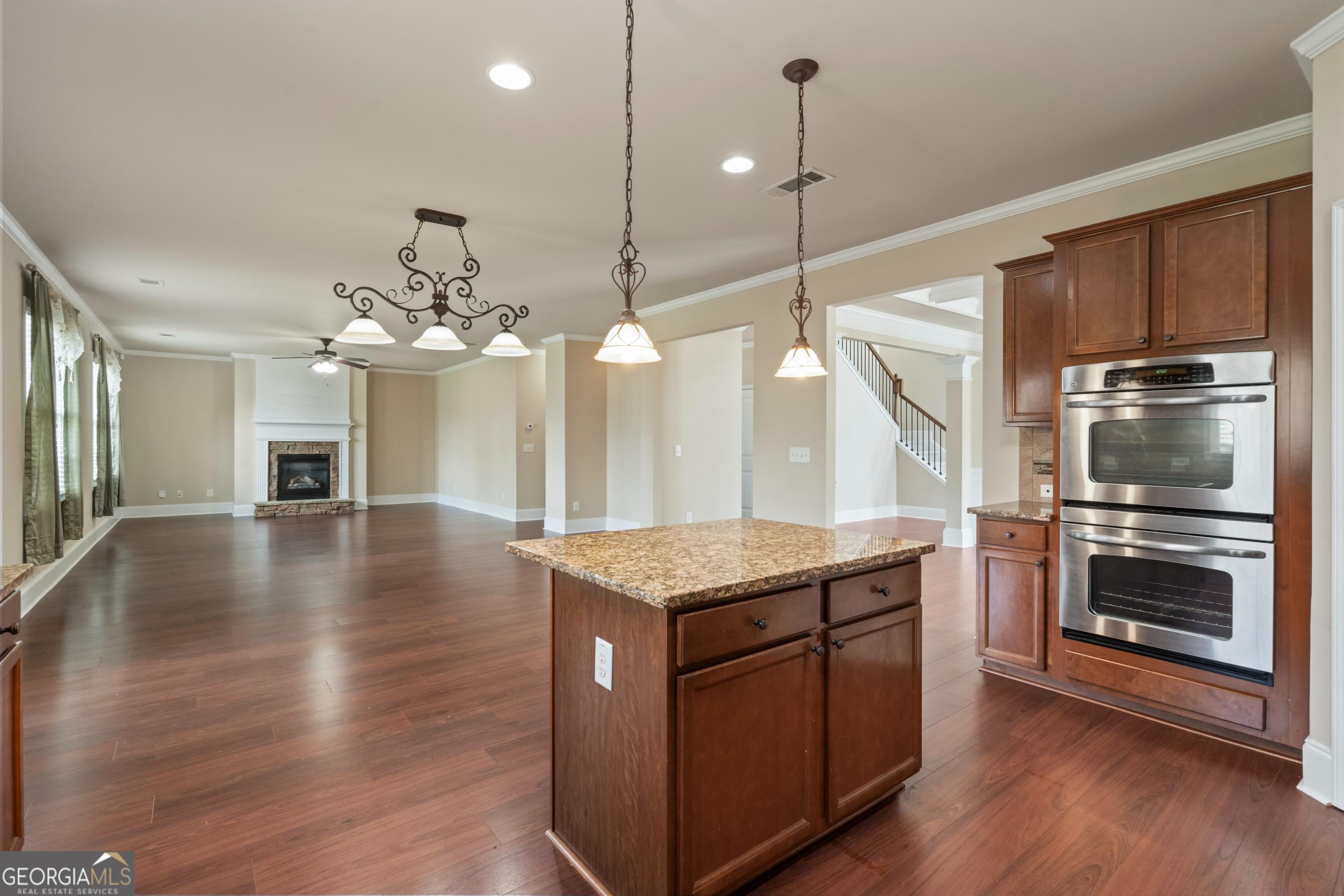 ***AVAILABLE JANUARY 2026*** Welcome to this stunning 5 bedroom, 4 bathroom home located in the desirable Sterling on the Lake community. This community boasts a variety of amenities including multiple pools, park, trails, ponds, clubhouse, community gym, tennis courts, and playground. Inside this home you'll find hardwood floors on the main level and a soaring great room with tons of natural light. A living area off of the kitchen features a gas fireplace. The separate formal dining room is graced by a beautiful coffered ceiling. The kitchen is equipped with an island, gas range, double oven, granite countertops, and stainless appliances. Upstairs, you'll find 4 bedrooms with newer carpet and paint. The oversized master bedroom includes a gas fireplace and large walk-in closets, and the master bathroom features a double vanity, separate tub, and shower. Step outside to the covered rear patio and fenced backyard, perfect for entertaining. With a prime location, this home is sure to impress. Pets negotiable based on type, size and amount. Contact us for a tour! Long term lease preferred.