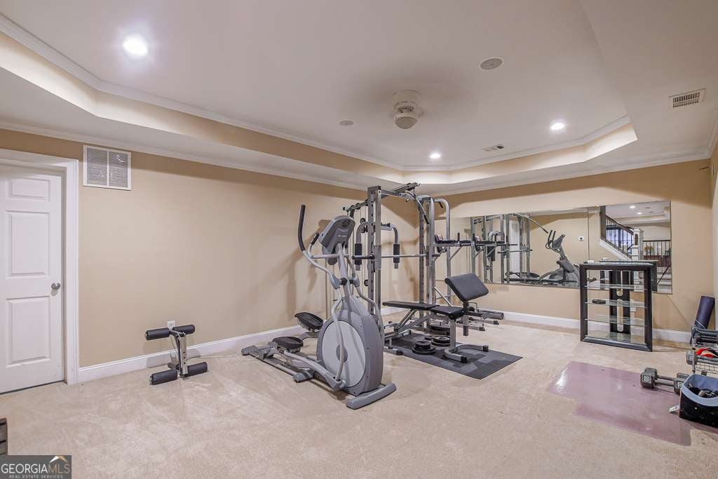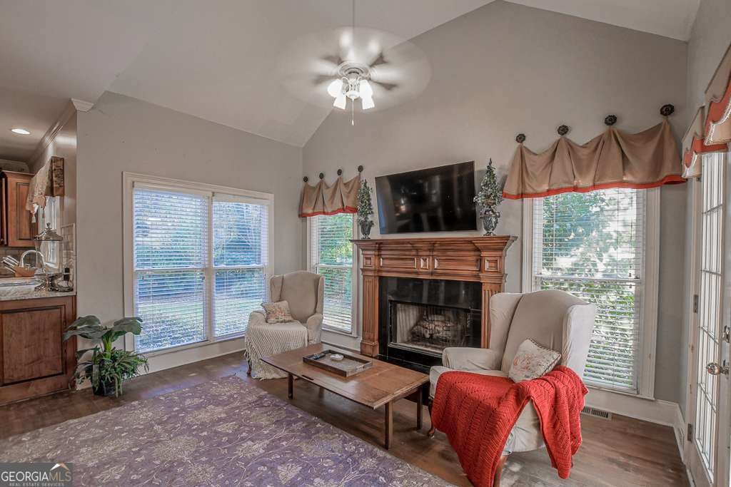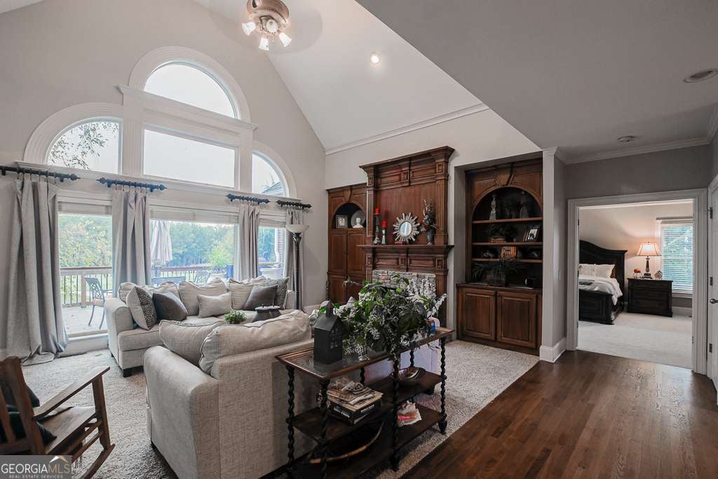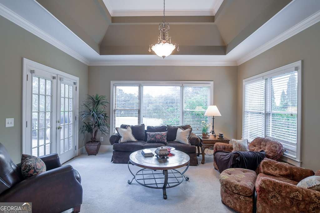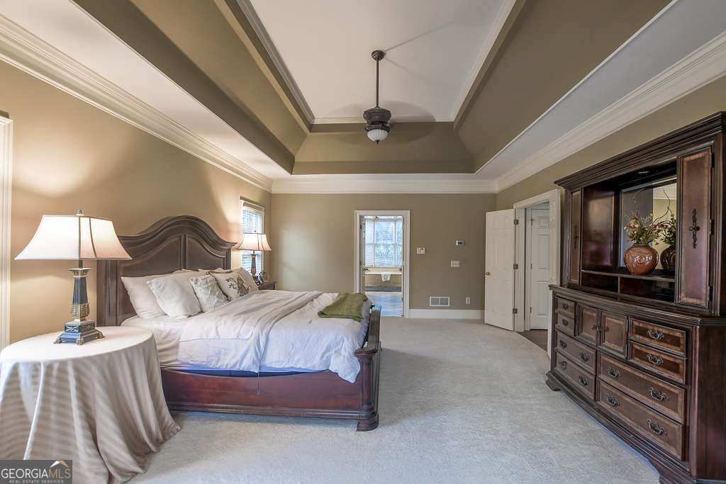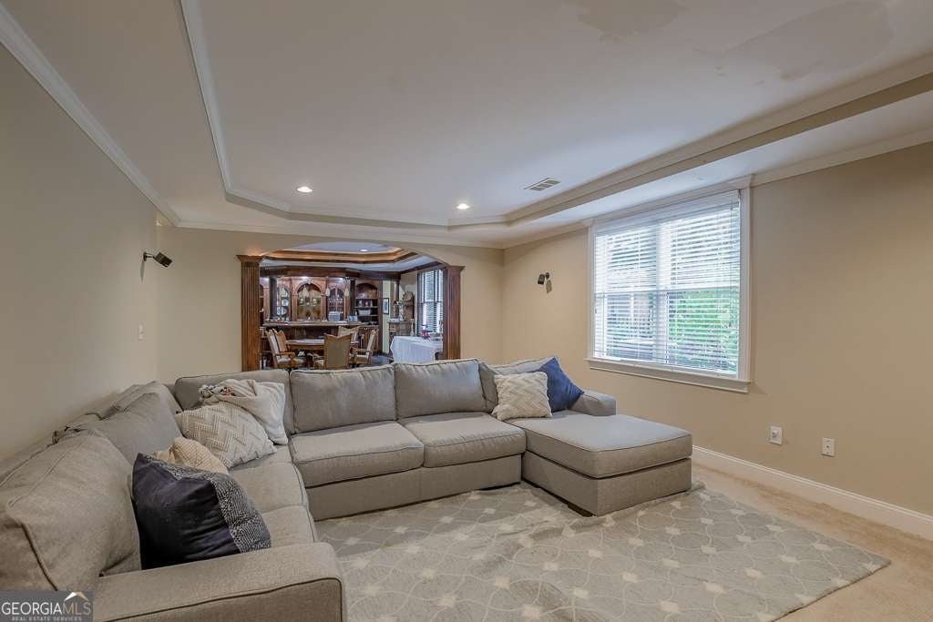 Experience refined country club living at 1041 Windermere Crossing, an elegant single-family residence located within the prestigious Windermere community in Forsyth County. This beautifully appointed 4-bedroom, 4.5-bath home offers timeless architectural design, exceptional craftsmanship, and expansive living spaces across two levels plus a fully finished basement, totaling approximately 5,977 square feet (per public records). Upon entry, you are welcomed by a dramatic two-story foyer and a stunning great room featuring soaring 20-foot ceilings, abundant natural light, and custom details throughout. The chef's kitchen is thoughtfully designed with high-end appliances, solid surface countertops, stained cabinetry, a breakfast bar, and an inviting keeping room, perfect for both everyday living and entertaining. Formal dining comfortably seats 12+ guests, making it ideal for gatherings. The primary suite on the main level offers a private retreat complete with a sitting area, spa-inspired bathroom featuring double vanities, whirlpool tub, separate shower, vaulted ceilings, and a generous walk-in closet. Additional living spaces include a media room, exercise room, office, family room, and a fully finished daylight basement with interior and exterior access. Step outside to enjoy a private patio, deck, and front porch, ideal for year-round enjoyment. The backyard patio features a permanently attached gas grill, perfect for entertaining. Situated along the 13th hole of the Windermere Golf Course, the property offers scenic golf course views and a peaceful, landscaped lot. Residents enjoy access to resort-style amenities, including championship golf, tennis courts, a swimming pool, a clubhouse, playground, walking trails, and street-lit neighborhoods. Additional features include three fireplaces, hardwood and carpet flooring, zoned heating and cooling, rear stairs, high-speed internet, an irrigation system, and a three-car side-entry garage with kitchen-level access. Conveniently located near top-rated South Forsyth schools, upscale shopping, dining, and major roadways. Home is occupied and not vacant. Appointment required for showings.