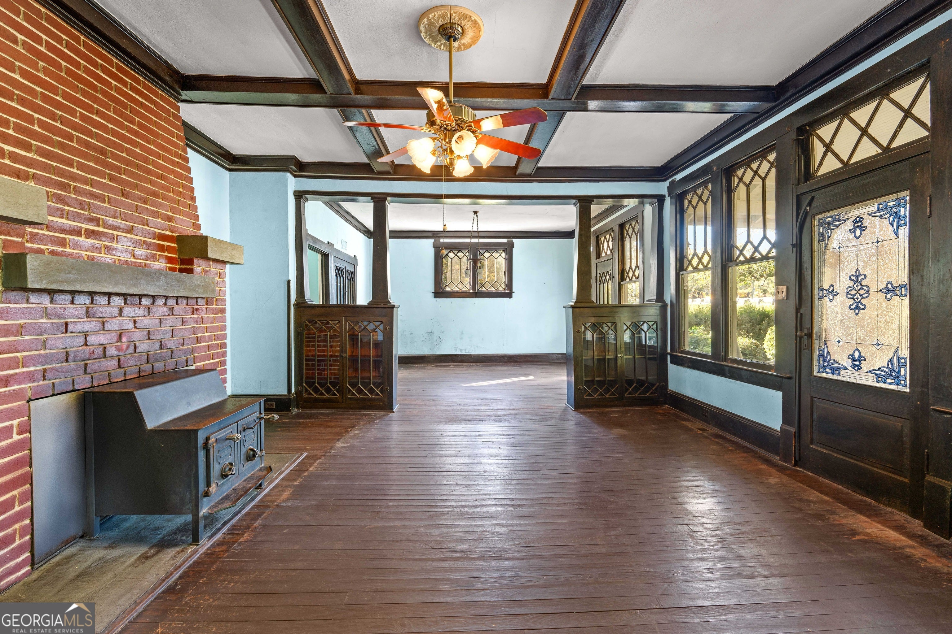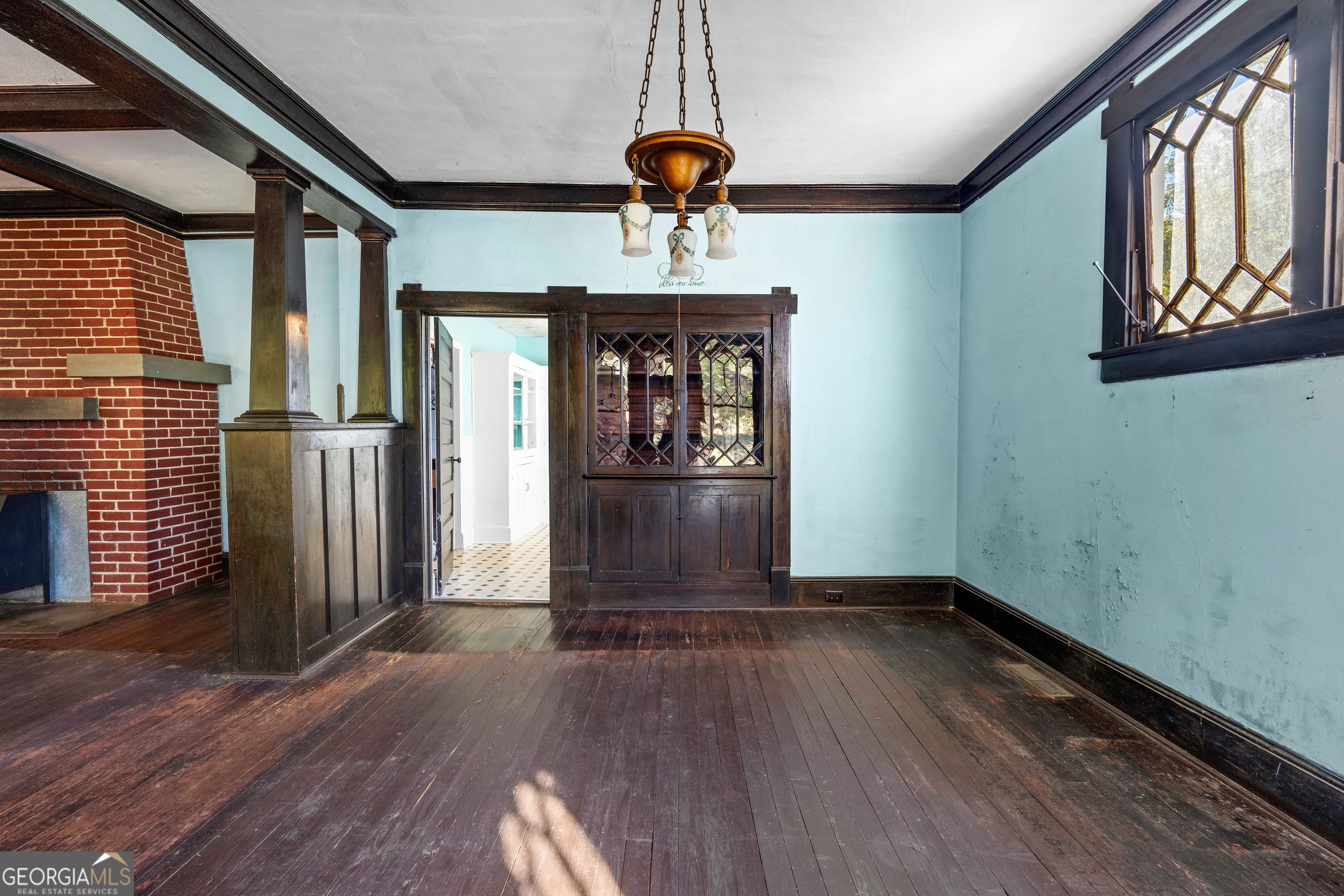 Step back in time with this 1930s Craftsman-style home, rumored to be one of the original Sears Kit Homes. Full of charm and character inside and out. This 3-bedroom, 1-bath property sits on a beautiful 1.5-acre lot, offering the perfect blend of history, space, and potential. From the moment you arrive, you'll appreciate the classic stone pillars, inviting front porch, and the architectural detail that defines this era. Inside, the home features coffered ceilings, four fireplaces, rich wood trim and built-ins that showcase the craftsmanship of its time. The spacious family room and dining room offer a warm and welcoming feel, while the screened-in back porch provides the perfect spot to enjoy quiet mornings or relaxing evenings overlooking the private yard. With 1.5 acres, there's ample room for gardens, outdoor entertaining, or future expansion. Whether you're looking to restore a true piece of history or bring your own creative vision to life, this property offers endless possibilities.