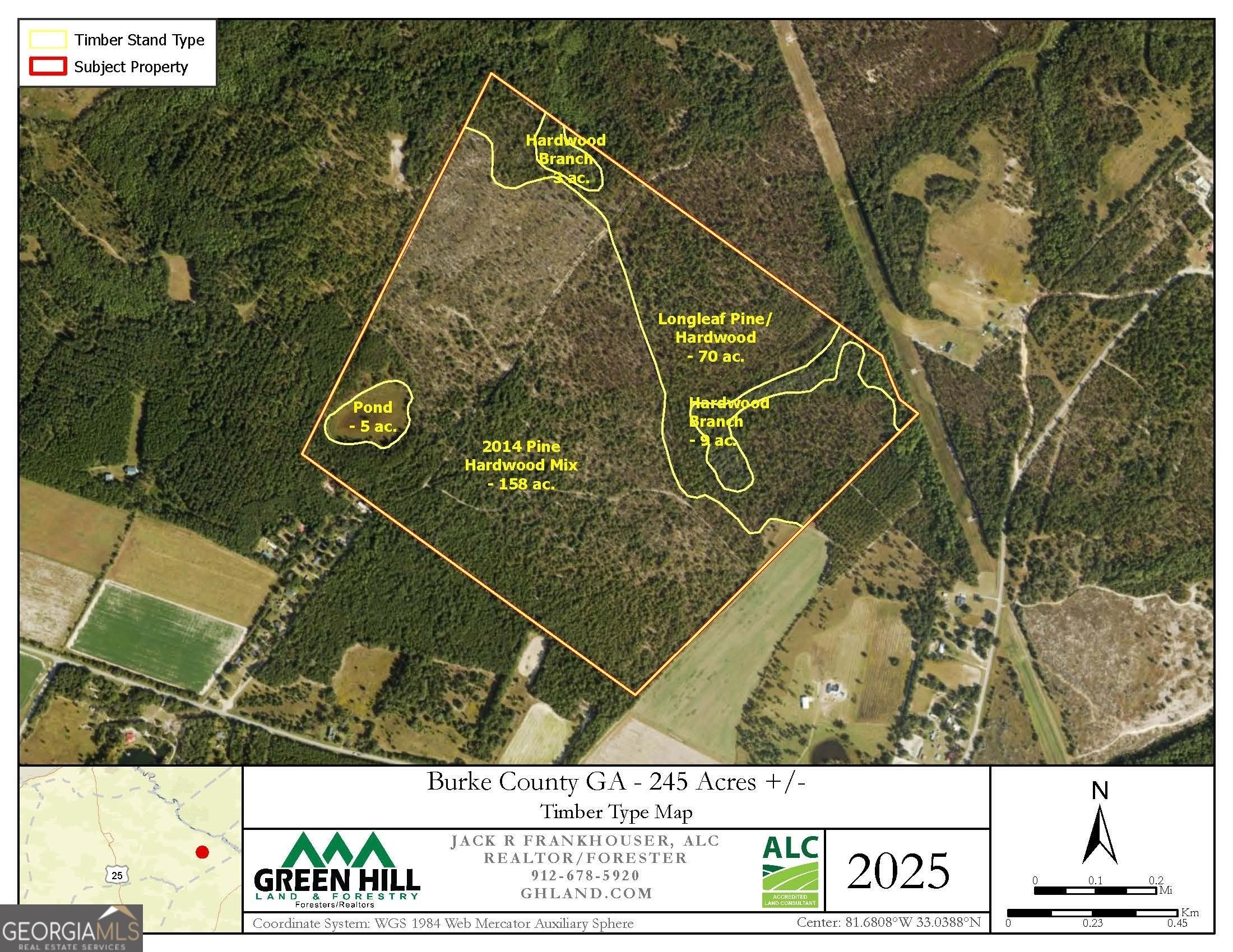 Poplar Root Farm, located in eastern Burke County near Stoney Bluff Road, is a beautiful 245-acre tract featuring a mix of longleaf pine and upland hardwood. Just a short drive from several of the Southeast's premier plantations-including Wade Plantation and Millhaven Plantation-this property offers exceptional seclusion, privacy, and habitat diversity. Laced with deer trails, scrapes, and rubs, the property's multiple age classes of longleaf pine and oak provide excellent bedding and foraging habitat for both deer and turkey. Three distinct timber types are present: approximately 158 acres of 10-year-old mixed longleaf pine and hardwood, 70 acres of mature longleaf pine and hardwood, and 12 acres of bottomland hardwood. The bottomland hardwood areas are located along spring-fed hardwood branches, offering a reliable, year-round water source for wildlife. A five-acre pond site on the west side of the property can be expanded and reclaimed. While it does not currently hold standing water, it retains moisture for most of the year and has excellent potential for enhancement. A well-maintained primary woods road circles the property, providing excellent year-round access and multiple shooting lanes for hunting. Several auxiliary roads and trails branch off the main road, serving as firebreaks and access routes to strategic hunting areas. The main gated entrance is located at the end of Penn Lane, with overhead power available a short distance from the gate. The topography is generally level to gently rolling, with more pronounced slopes surrounding the pond site and hardwood branches. These transitional areas-between uplands and bottoms-show heavy deer traffic and add fantastic aesthetics to the landscape. The soils are a well-balanced mix of productive uplands and natural bottomlands. Uplands consist primarily of well-drained soils, ideal for loblolly and longleaf pine production, food plots, and recreation. The lower elevations support hardwood species, wetland vegetation, and diverse wildlife habitat. Together, these soil types create an attractive combination of productive pine timberland, hardwood bottoms, and scenic water features-perfectly suited for timber investment, hunting, and outdoor recreation.