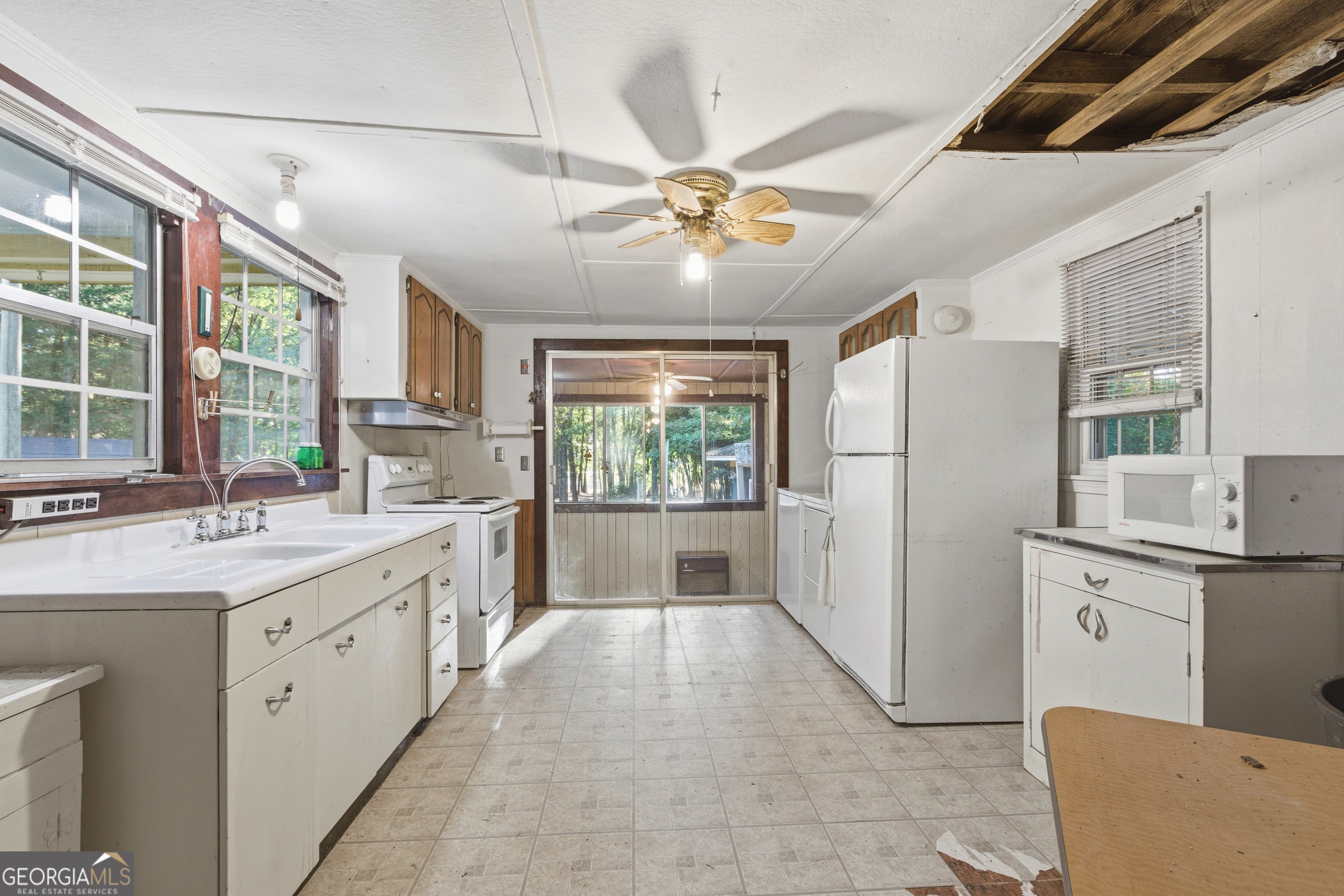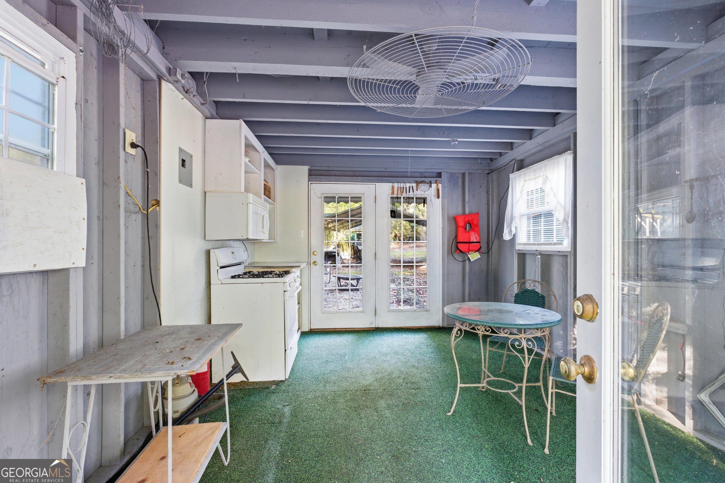 LAKEFRONT FIXER ON 0.8 ACRES!! This lake home was the family getaway for over 60 years. She needs a new family to bring her back to life. Bring your vision and some elbow grease to make this your own. Originally a small one room cabin, it grew over the years. Now, with three bedrooms and two and a half baths, there is plenty of room. Large windows bring lots of natural light into the living room and separate dining room connected by old wooden french doors. We've left the bar for you! In the kitchen there is a vintage metal sink cabinet in great shape! There is a leak in the roof over the kitchen that will need repair (estimate around $4000). The "outdoor kitchen" building opens up onto the back patio and comes with a stove. It would be a perfect She Shed, craft room, or guest room. A workshop and garage with two large swinging doors provide extra storage for lake toys or work areas. Two metal carports. And, in case you get dirty enjoying all there is to do, you can rinse off in the semi-private outdoor shower complete with a mirror. BYO shower curtain. Home is on septic and city water. No dock rights but you can always make friends with the neighbors. If that doesn't work out, Rocky Ford boat ramp is a stone's throw away, just around the corner. The level lot is big enough for family baseball or football games without breaking a window. Lots of parking and an easy walk down to the water. Priced to sell "AS IS". Come and get it.