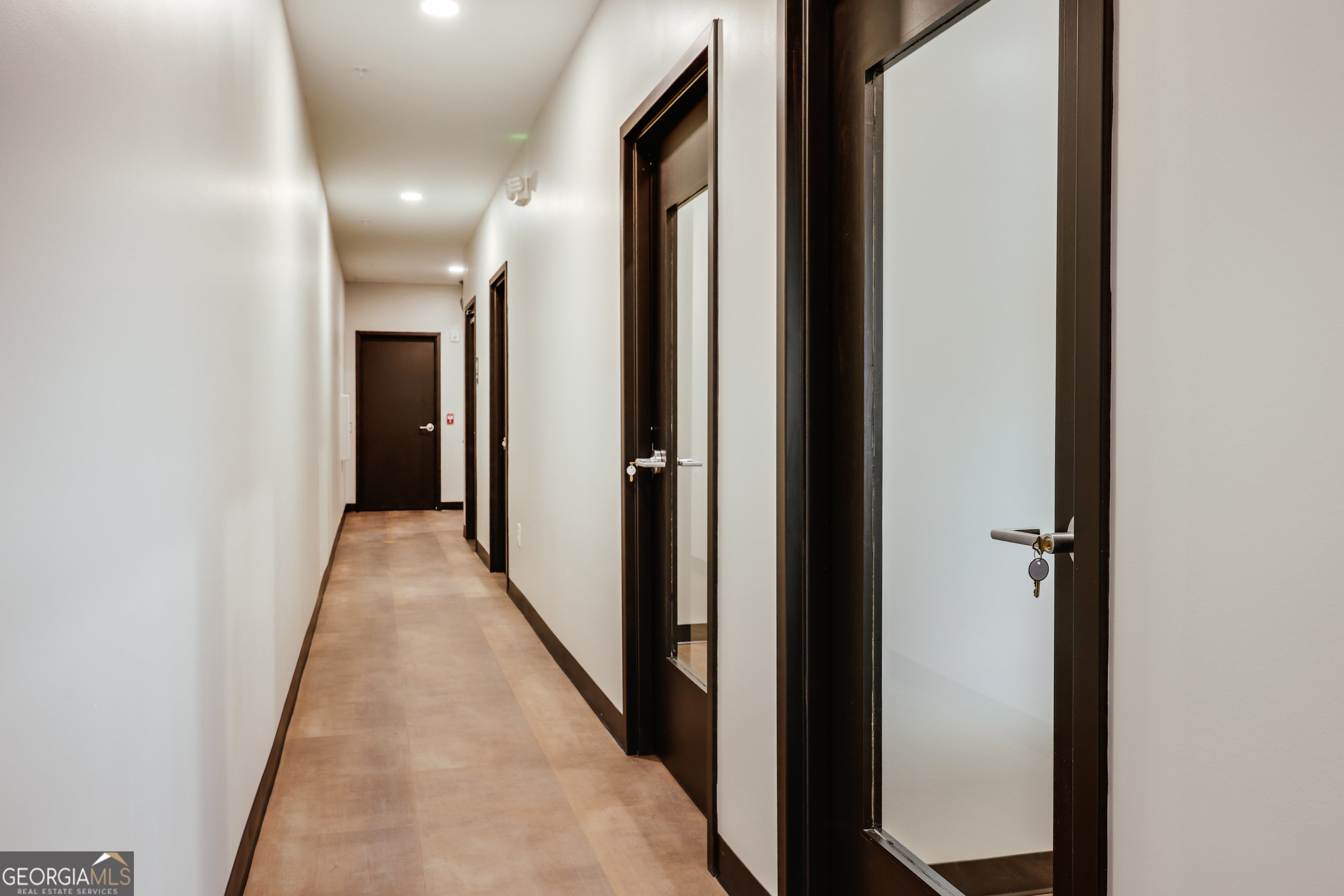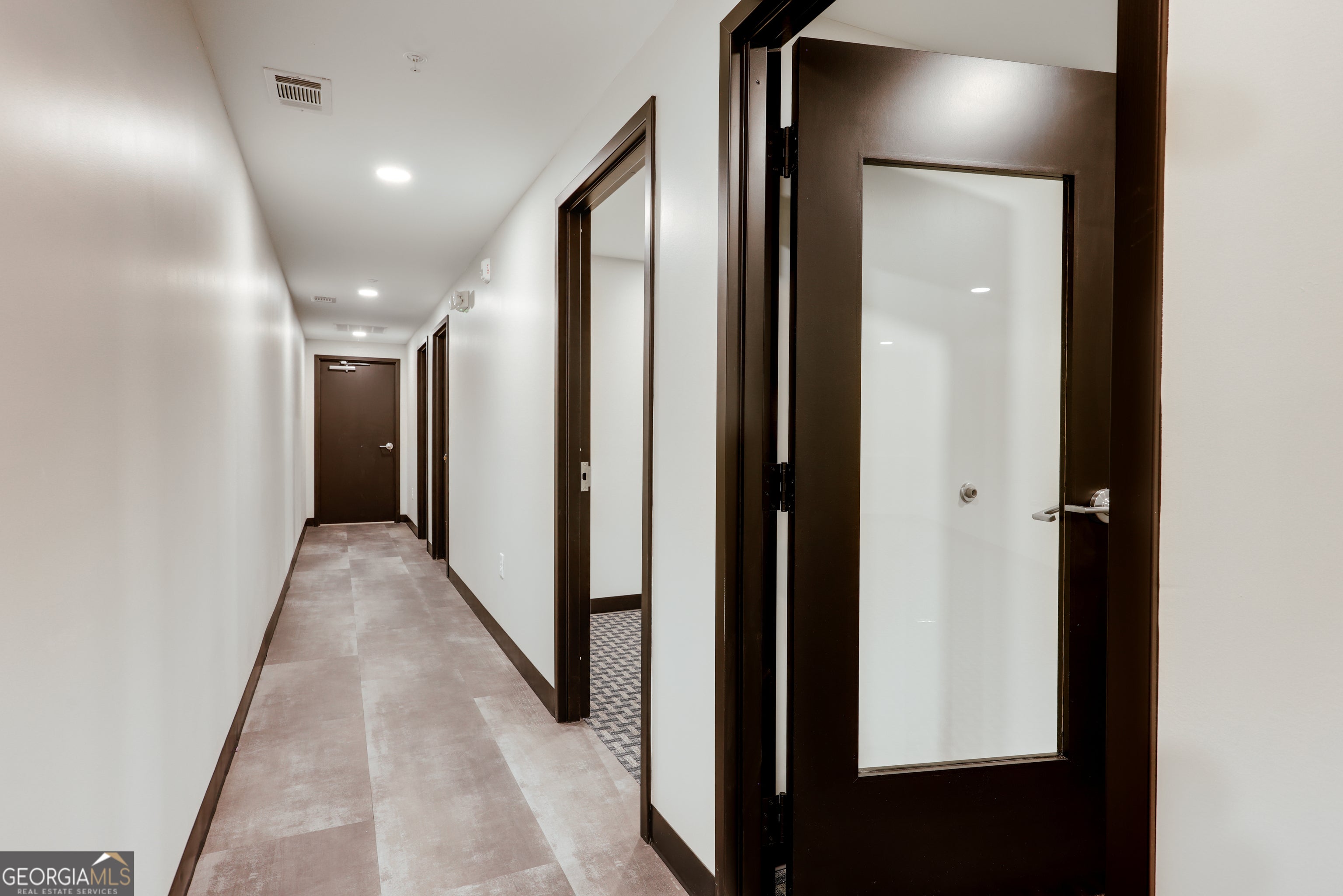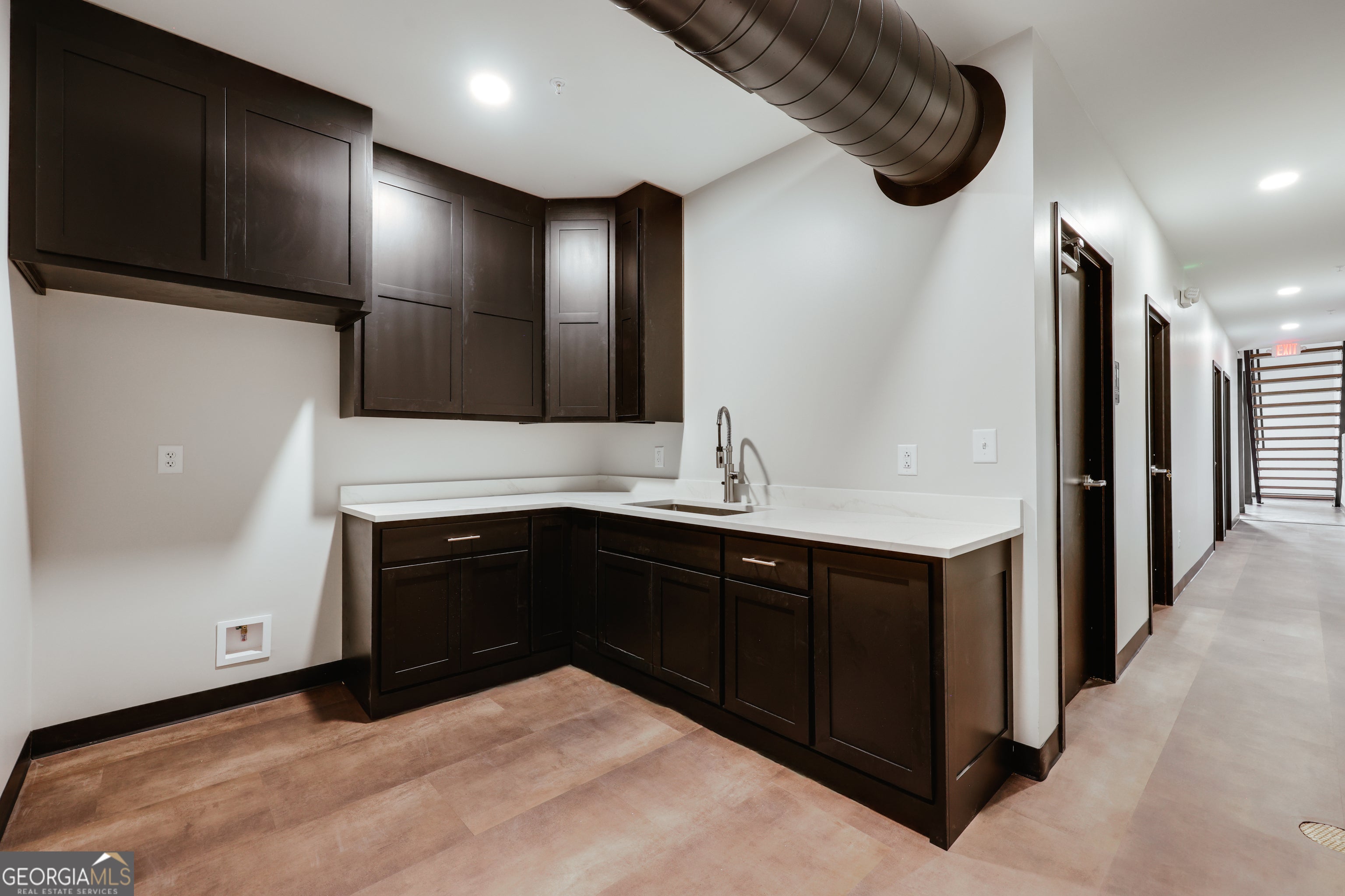 Welcome to 1725 Electric Ave Unit 230-A, a 1,572 square feet Office Space at Wire Park. U 230-A is a turn-key space that perfectly marries industrial-chic design with professional functionality. Featuring a striking glass front entryway, flooding the lobby with natural light. Inside, an open, contemporary staircase connects the floors, creating a seamless, airy feel. The design includes 6 private offices, a conference room (that could double as a 7th office space), a sleek kitchen/break room, & a private bathroom. This layout is ideal for a growing law firm, tech company or executive services provider. Every detail speaks to quality & modern taste: finished concrete floors are complemented by warm, low-maintenance modern LVP flooring & low pile carpeting in key areas. The use of interior glass doors maximizes light flow, ensuring a dynamic, collaborative environment that feels both private & open.