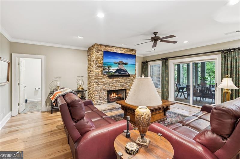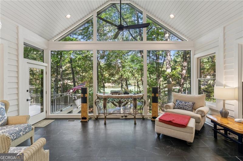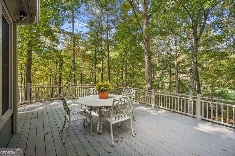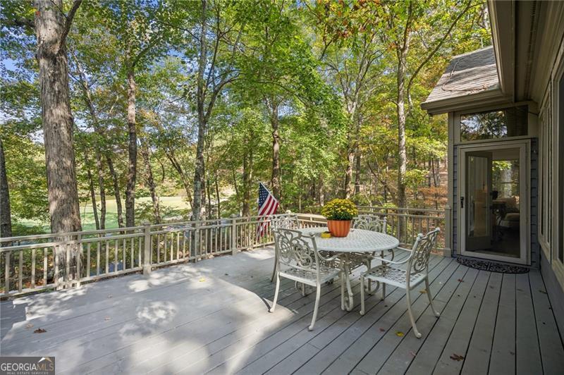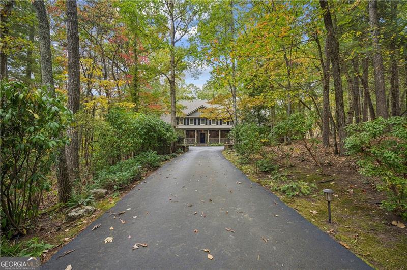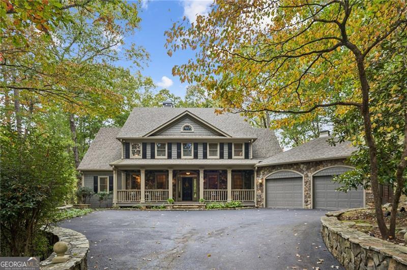 Enjoy resort style living in this meticulously maintained five bedroom home nestled on a private lot along the signature #2 hole of Big Canoe's Cherokee nine. A long, tree lined driveway leads to the residence, setting a tone of seclusion and serenity. Inside, the two story great room makes a dramatic first impression with soaring ceilings and cozy fireplace. Adjacent to the great room, a sunroom, with floor to ceiling windows, offers a quiet space to watch golfers or wildlife without leaving the comfort of your home. The heart of the house is a spacious, recently updated chef's kitchen with high end appliances, custom cabinetry and abundant natural light. The main level also features the large primary suite, dining room, and library, while the terrace level includes a kitchenette and a second family room with its own stacked stone fireplace. From here, walk out to a stone patio, ideal for outdoor entertaining or enjoying seasonal views of the nearby creek and waterfall. The upper level has three large guest bedrooms and two full baths. With four full bathrooms and three half baths, there is ample accommodation for family and visitors. A large workshop with exterior entry provides a dedicated space for projects or storage. A new roof (2019) and fresh exterior paint underscore the property's well maintained condition. Whether sipping coffee on the deck, entertaining in the sunroom or relaxing by either fireplace, you will appreciate the tranquility of this wooded homesite. The home's position on the golf course adds green vistas without sacrificing privacy. Listen to the creek and waterfall in the background while still being just minutes from all of Big Canoe's amenities. Located in the lush landscape near Jasper, Georgia, Big Canoe stands as a beacon of serene living in a gated community designed for those who appreciate privacy and natural beauty. This neighborhood, characterized by its peaceful surroundings and high-end amenities, offers a unique living experience where luxury meets the wilderness. The area is carefully planned to harmonize with the environment, featuring homes that blend seamlessly into the scenic backdrop of rolling hills and vibrant greenery.