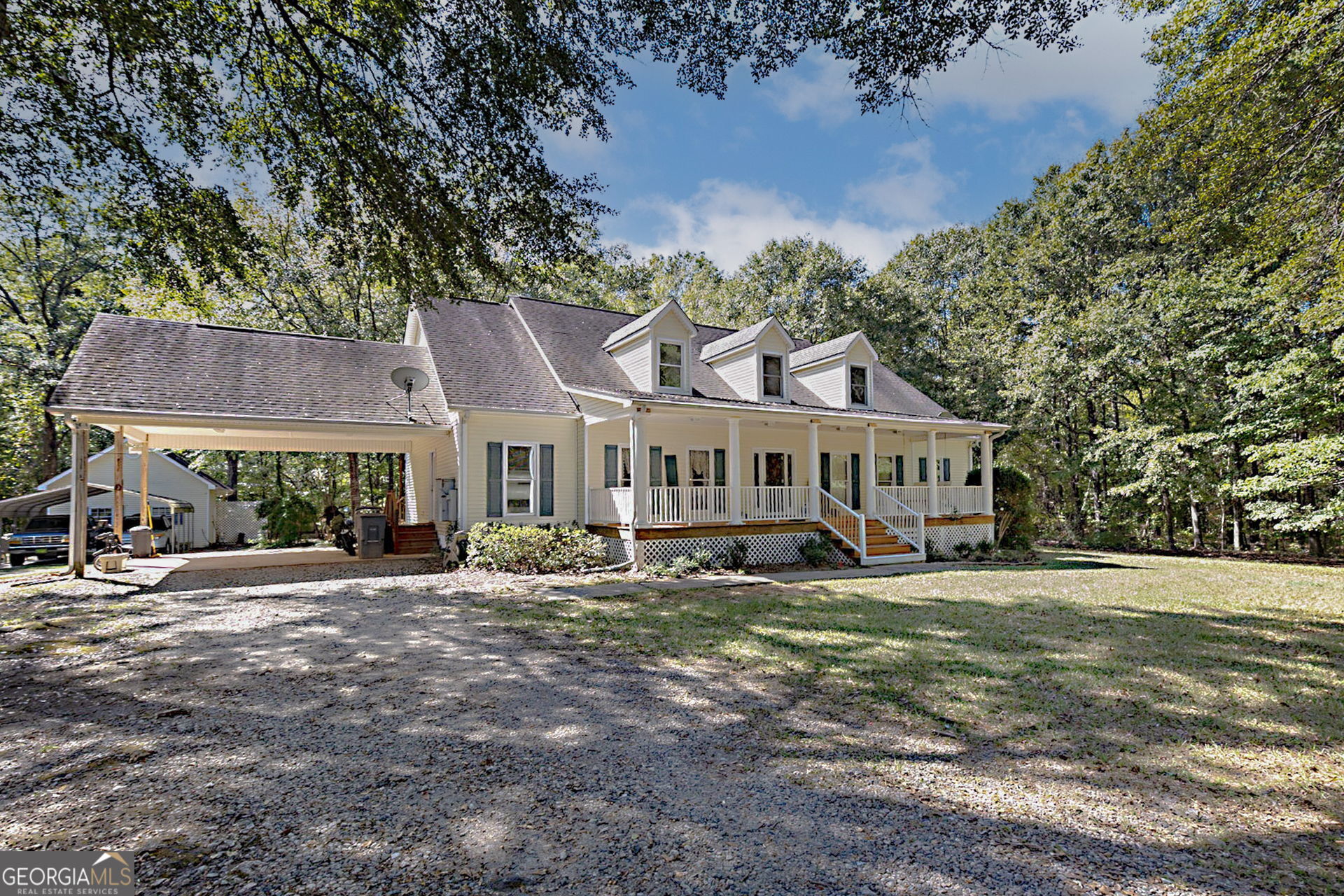 Welcome to 1216 Fern Road - a beautifully maintained 5-bedroom, 3-bath home on 38 stunning wooded acres in Meriwether County. The property offers complete privacy and a serene setting surrounded by mature hardwoods, with open grassy areas around the home and pond that provide the perfect space for children to play, family gatherings, or quiet evenings outdoors. A long private driveway leads to the home's full-length covered front porch overlooking the picturesque landscape. Inside, a two-story foyer opens to an oversized living room featuring a brick fireplace and gleaming hardwood floors. Behind the fireplace, a cozy sunroom offers the perfect flex space for an office, library, craft room, or home gym. The spacious kitchen and breakfast area include pine cabinetry, a breakfast bar, wall oven and microwave, cooktop, and refrigerator. Just off the kitchen are a formal dining room, covered back stoop, and three additional closets ideal for pantry or linen storage. The large laundry room features a sink, rolling folding table, and a utility closet. Every main-floor room showcases beautiful pine crown molding. The huge primary suite includes a soaking tub, separate shower, and large vanity. A secondary bedroom and full hall bath complete the main level. Upstairs you'll find three additional bedrooms, a full bath, a bonus room, and multiple oversized closets-no space wasted and incredible storage throughout. Outside, you'll find a two-car attached carport, a wired workshop with covered lean-to and generator connection, and an additional outbuilding with power and water that was previously used as a dog grooming space. It opens to a fenced dog run with a concrete pad, perfect for pets. The backyard is also fenced and includes a long ramp for easy access. This home is in excellent condition and sits on breathtaking land-mainly wooded with trails running throughout and a private stocked pond with a dock. The property is bordered by roads on three sides-Fern Road to the north, Baughan Road to the east, and Findley Cato Road to the west-with a 175-acre neighboring field to the south. A rare find offering the perfect blend of privacy, comfort, and country living in Meriwether County Note: Property is currently enrolled in Meriwether County CUVA through December 31, 2029. Buyer will be required to adopt and maintain the CUVA covenant until its expiration.