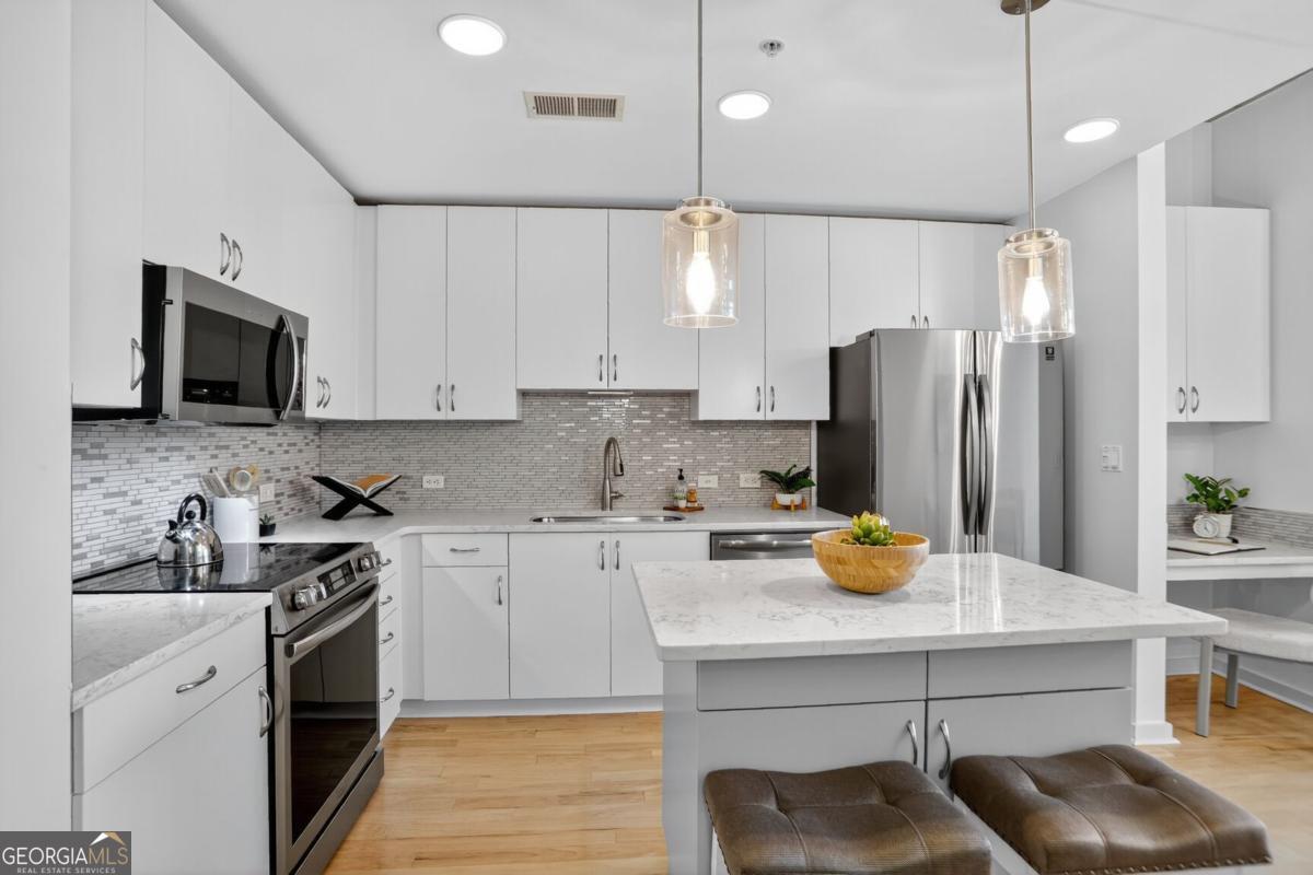 Experience the perfect blend of style, space, and location in this stunning Midtown retreat. This beautifully updated condo is a rare find-offering a seamless mix of modern touches and classic charm. The open-concept layout feels spacious and inviting, with oversized windows that flood the home with natural light and frame breathtaking views of the city skyline. Step into the sleek, updated kitchen featuring brand-new appliances and contemporary finishes, all set against the backdrop of rich hardwood floors that run throughout the home. Every detail is designed to create a warm, comfortable space that feels instantly like home. Located in the heart of Midtown Atlanta-one of the city's most vibrant and walkable neighborhoods-you're just steps from Piedmont Park, acclaimed dining, shopping, MARTA, and easy access to major highways. Whether you're grabbing coffee, heading to the park, or enjoying a night out, everything is right at your doorstep. The building complements your lifestyle with resort-style amenities, including a luxurious pool, fully equipped fitness center, 24-hour concierge service, business center, gated parking, and secure key card access-offering convenience and peace of mind. Don't miss your chance to own this move-in-ready gem that captures the very best of Midtown living.
