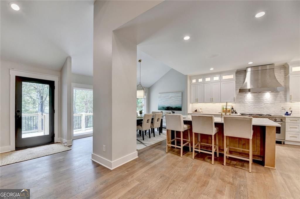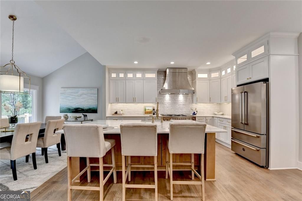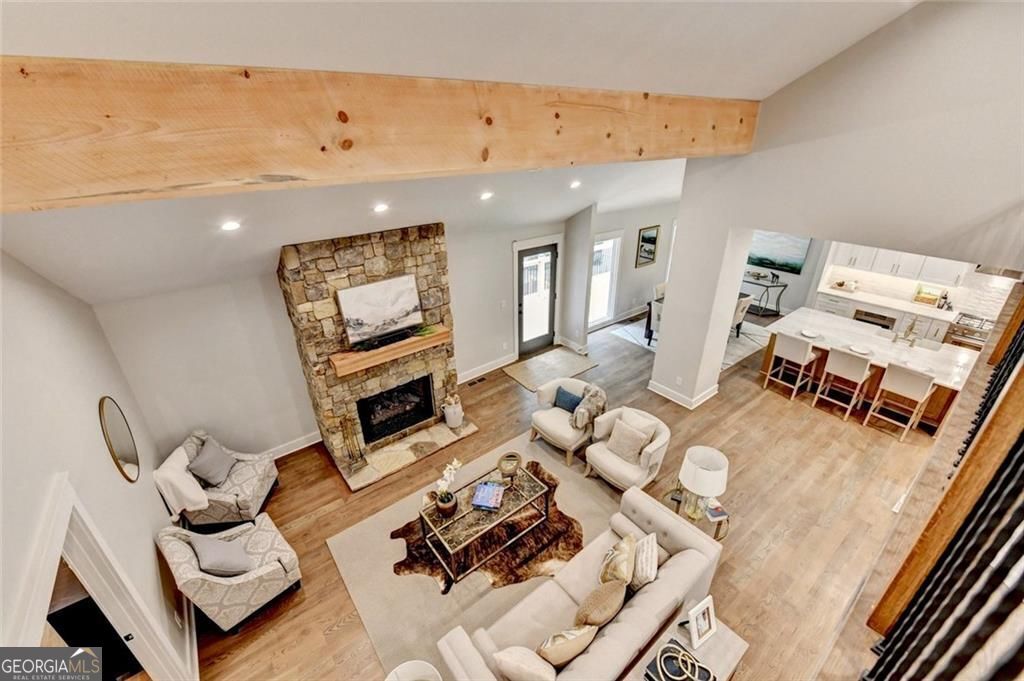 New Build 2025 - Completely reimagined from the studs of a 1971 home. Relax on over a half acre lot- private lake dock. Designed by Architect with combined skills of structural engineer. Quality construction with attention to detail. Created for a rare one level living if desired. Oversize master on main- enjoy coffee on screen porch overlooking Kingsley Lake. Second master/bedroom option on main. Upper level 2 bedrooms for office or quests - full bath and storage. Open floor plan includes vaulted ceilings. Finished terrace level perfect in-law, au-pair or student suite. Stubbed for second kitchen. Separate entrance. Wrap around decks. Nature lovers' and gardener's paradise. Canoe over to renovated Kingsley swim/tennis club. Firepit -Interior boosts high end appliances- Chef's kitchen - 5" oak hardwoods throughout. River Stone fireplace - All permitted and approved. Surveyed. Developed with vision for strong buyer. All this plus on a quiet cul-de-sac and friendly walkable neighborhood. Hard to find and won't last. Use showing time - Seller is listing agent.