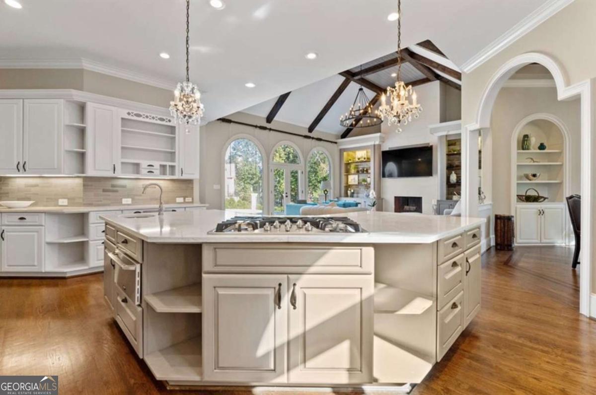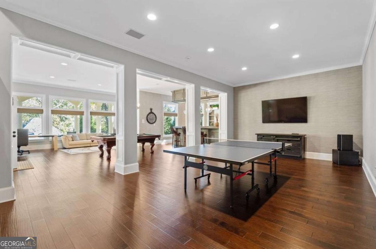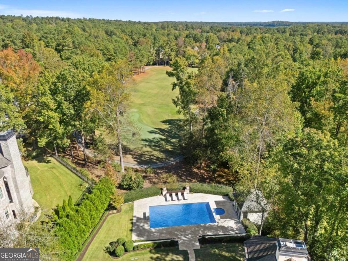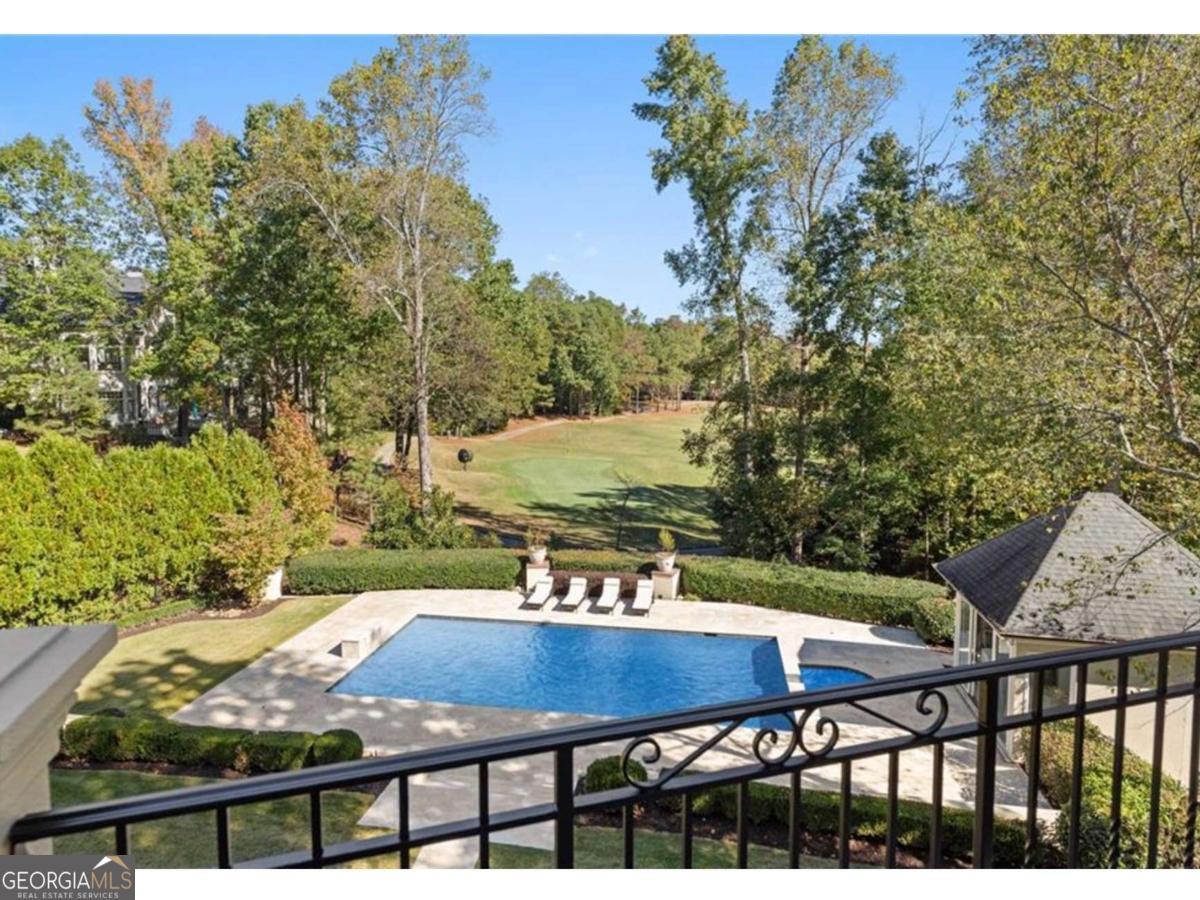 Perfectly positioned on one of Country Club of the South's premier lots with breathtaking views of the 14th green and fairway, this beautifully UPDATED hardcoat stucco estate offers effortless, move-in-ready living. From the moment you enter, you're welcomed by lush greenery and thoughtfully designed living areas that create a refined yet warmly inviting atmosphere. Outside, your own private backyard oasis awaits, featuring a luxurious oversized heated pool surrounded by an expansive travertine pool deck, all perfectly set to capture uninterrupted fairway vistas. A pool house with half bath, refrigerator and storage adds both style and convenience, while multiple outdoor dining and living areas make this the ultimate setting for al fresco gatherings, summer celebrations, or quiet evenings under the stars. The home showcases refined updates throughout including a freshly modernized kitchen with Sub-Zero, Bosch, and Dacor appliances, designer lighting, and sleek finishes that elevate every space. A bright naturally lit vaulted breakfast area and the adjacent fireside keeping room w/cathedral ceiling and architectural beams offers an intimate retreat for casual moments. Walk-out access to the veranda and a large screened in porch invites relaxation & effortless entertaining year-round. The open-concept floor plan flows seamlessly into the great room, where floor-to-ceiling windows frame sweeping golf course views. The luxuriously updated primary suite boasts a double vaulted ceiling, an elegant fireside sitting area, and a spa-inspired bath complete with soaking tub and dual walk-in closets. Upstairs, four generously sized bedrooms with updated baths and oversized closets ensure comfort for family and guests alike. The terrace level is thoughtfully designed with a pub-style bar, newer LVP flooring, high ceilings, separate spacious areas for recreation, exercise, and an oversized media room. A sauna, additional bedroom and 1.5 baths complete this versatile lower level. The panoramic vistas from the walk-out veranda and patio on the main and terrace levels provide a constant backdrop of natural beauty. This home captures the best of luxury golf course living in Johns Creek's most distinguished community. With top-rated schools, 24/7 gated security, and a true sense of community, this is a place where "home" is your personal sanctuary.