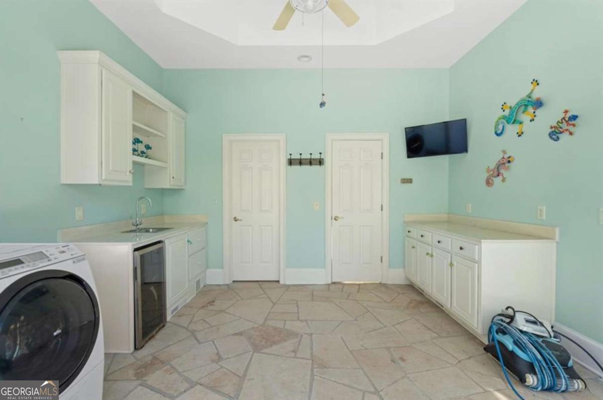 - Interior FeaturesBookcases, Master On Main Level, Sauna, Tray Ceiling(s), Vaulted Ceiling(s), Walk-In Closet(s), Wet Bar, Central Vacuum