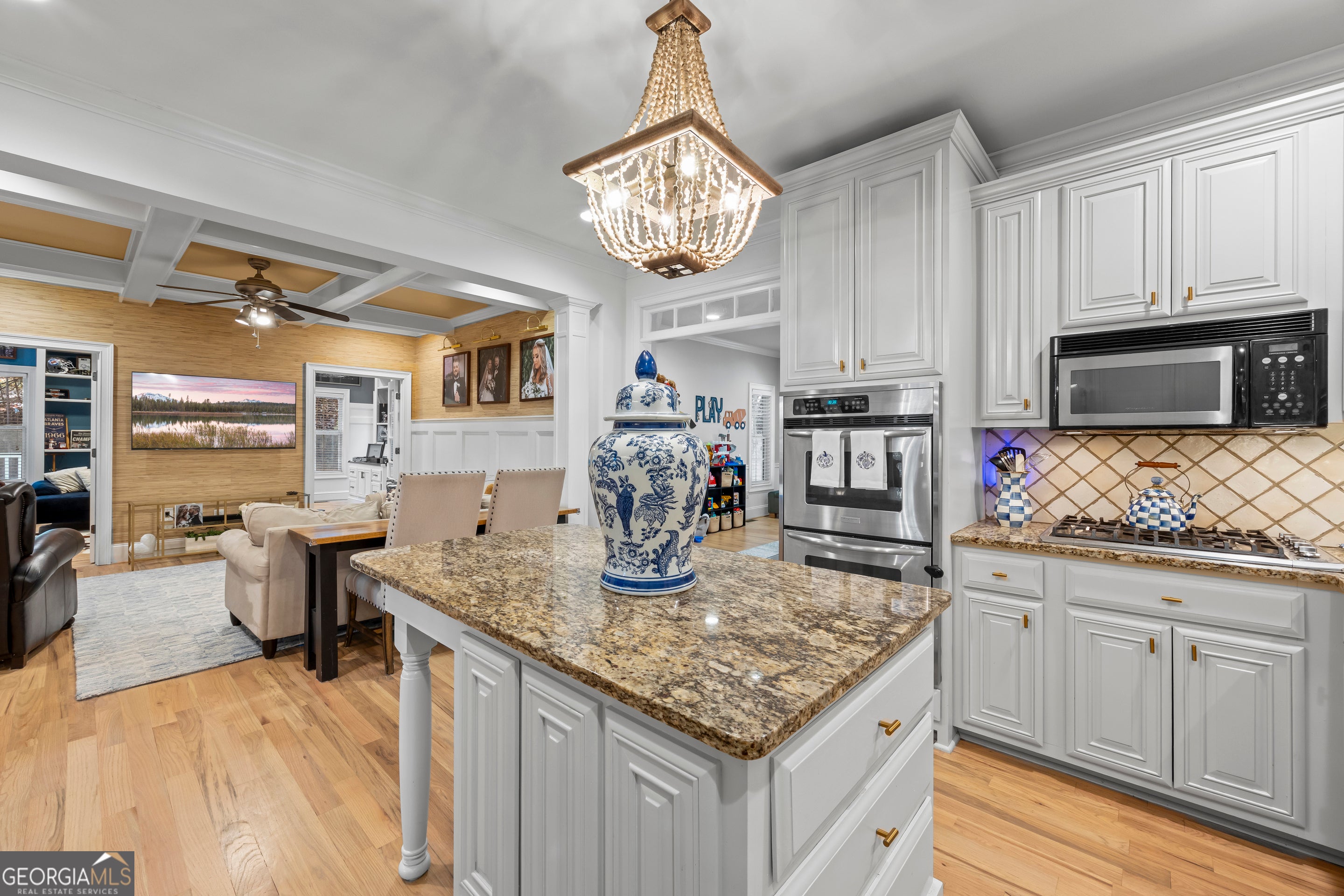 Discover timeless comfort at Chattahoochee Country Club. Located in one of Gainesville's most desirable neighborhoods, this beautifully maintained 4-bedroom, 3.5-bath home combines classic charm with thoughtful updates. From the moment you step inside, soaring beamed ceilings and rich hardwood floors create a warm, inviting atmosphere. The remodeled kitchen features granite countertops, stainless steel appliances, and a welcoming layout that makes cooking and entertaining easy. With two spacious primary suites-one on the main level and another upstairs-you'll enjoy flexible living options perfect for family or guests. Multiple gathering spaces, including two comfortable family rooms, offer plenty of room to relax or host friends. A versatile bonus room offers endless possibilities, serving as a home office, gym, or playroom tailored to your lifestyle. Seasonal glimpses of Lake Lanier and the convenience of being just minutes from Gainesville Square, where dining and shopping await, make this home the perfect blend of serenity, space, and sophistication, ready to welcome you home. Up to 1% of the loan amount in lender credits offered by preferred lender, Breanna Smith, Nexa Mortgage.