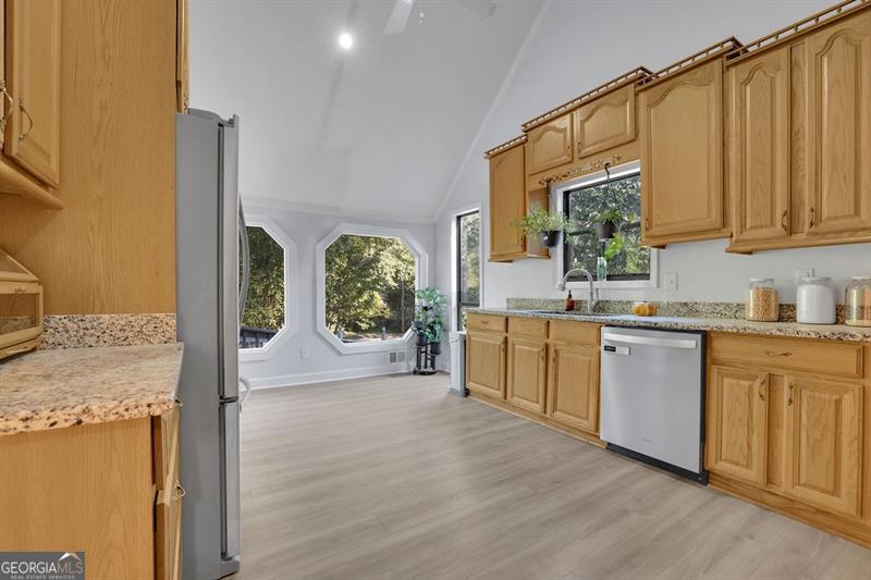 3.1% Rate Assumable FHA with Roam! " NEW PRICE! Best Value in Peachtree Corners. Move-in ready and fully updated with ALL NEW FLOORING, fresh paint, and flexible space ideal for multi-generational living or rental income. Finished lower level includes bedroom, full bath, living area + private entrance. Just a short walk to Peachtree Corners Town Center, parks, dining, concerts, and playgrounds. Minutes to Berkeley Lake & the Chattahoochee River. No HOA. Rental friendly. Fast-closing buyers prioritized. Highlights: * New flooring + updated kitchen * Stone fireplace + vaulted/beamed ceiling * Primary suite w/ renovated bath * Lower-level guest/in-law/rental suite * Detached heated/cooled studio - office, gym, or creative space * Wooded yard w/ firepit + privacy This home offers space, convenience, and income potential in one of the most desirable live-work-play corridors in North Atlanta - at a price that beats the competition."