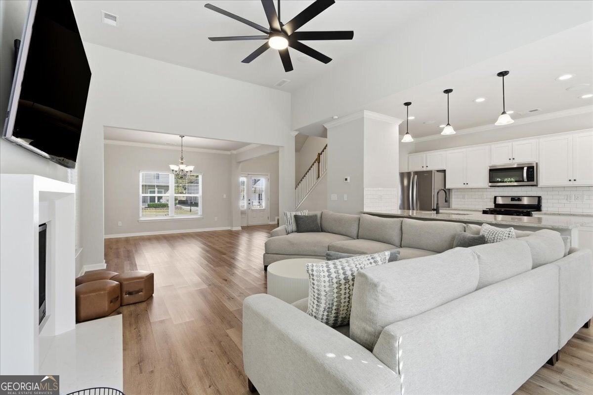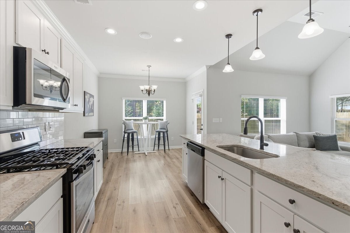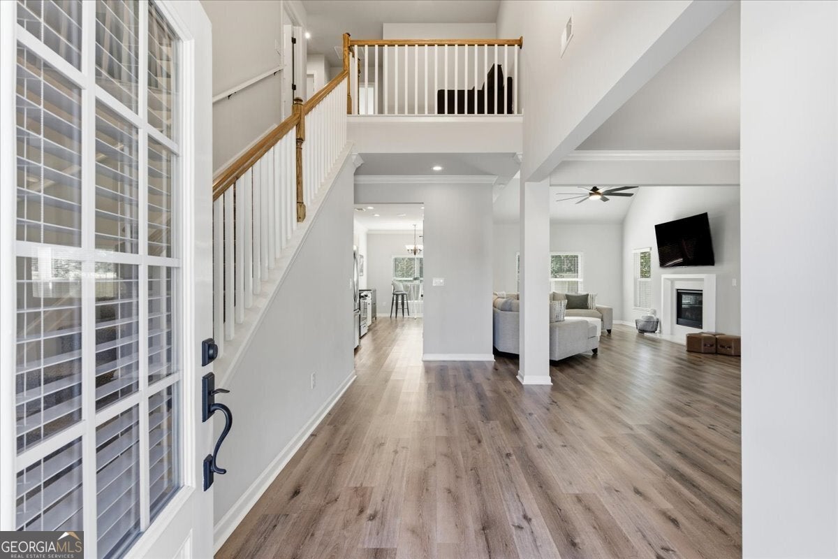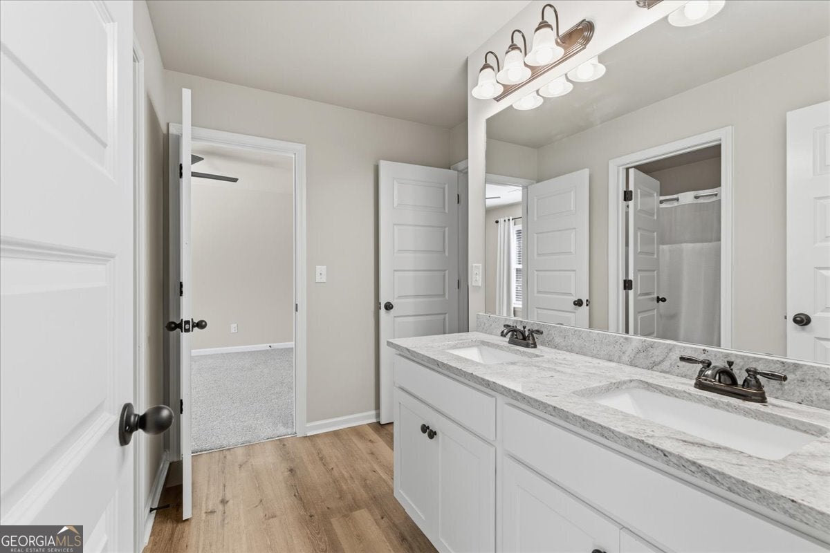 This meticulously maintained home sets the standard for pride of ownership, inside and out, every detail shines, and you won't find a blade of grass out of place! Nestled on a quiet dead end street in a well kept neighborhood within the highly sought after Fayette County school district, it immediately impresses with its curb appeal and inviting presence. Step inside to be greeted by abundant natural light, soaring ceilings, and luxury vinyl plank flooring throughout. The open, airy floorplan flows seamlessly, creating spaces that are both stylish and comfortable. The updated kitchen features stainless steel appliances, granite countertops, ample cabinet space, and an eat-in breakfast area overlooking the great room, perfect for everyday living or entertaining. In the great room, an elegant marble fireplace invites you to cozy up on chilly evenings with a cup of cocoa and your favorite movie. The formal dining room offers plenty of space for gatherings, while the primary en suite on the main level serves as a private retreat with a massive walk in closet and an updated bath with double vanity, tiled walk in shower, and relaxing soaking tub. Upstairs, a versatile loft area provides an ideal reading nook or home office, while two spacious bedrooms share a convenient Jack and Jill bathroom with double vanity. An additional secondary en suite with vaulted ceilings and walk in closet offers the perfect setup for guests, teens, or in-laws. Even the garage impresses with sealed epoxy floors, upgraded paneling, and LED lighting for a clean, finished look. With major systems, including the roof, HVAC, and dual water heaters, only five years old, this home combines modern comfort with peace of mind. All this is set within Fayetteville, a community that blends historic charm with modern convenience. Just south of Atlanta, the area offers a revitalized downtown, a thriving film industry, and a high quality of life. Residents enjoy local gems like Starr's Mill Park, with its scenic red mill and waterfall, and Fun Spot America Theme Park for family fun. Fayetteville is home to Trilith Studios, a major film campus, and nearby The Town at Trilith, a walkable "live-work-play" community with boutique shops, restaurants, and creative spaces. Downtown blends history, culture, and commerce along Main Street, while Fayette Pavilion, Georgia's largest open air shopping center, provides even more shopping, dining, and entertainment options, all just 30 minutes from Downtown Atlanta and Hartsfield-Jackson Airport. This home truly has it all, comfort, style, and a location you'll love. The only thing missing is you!