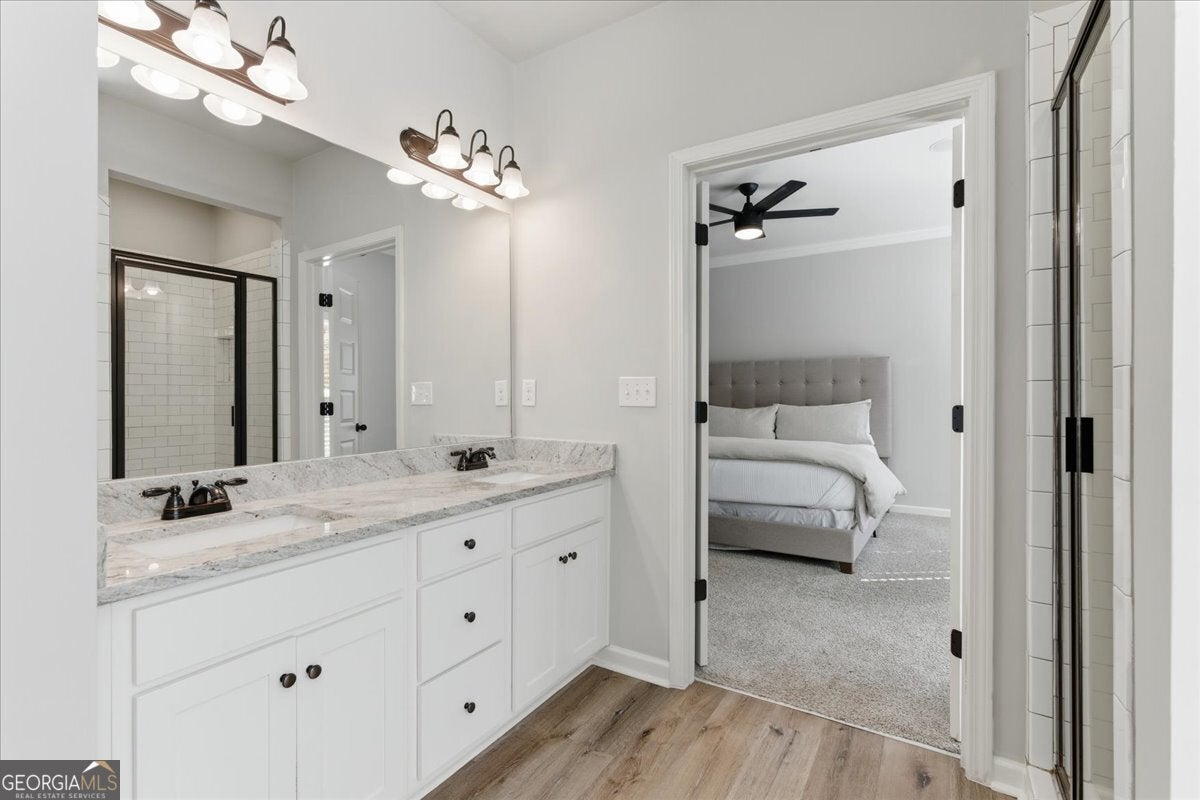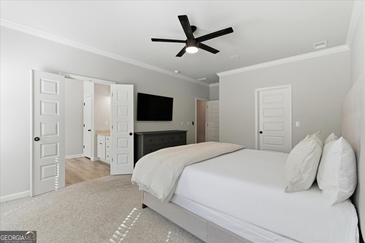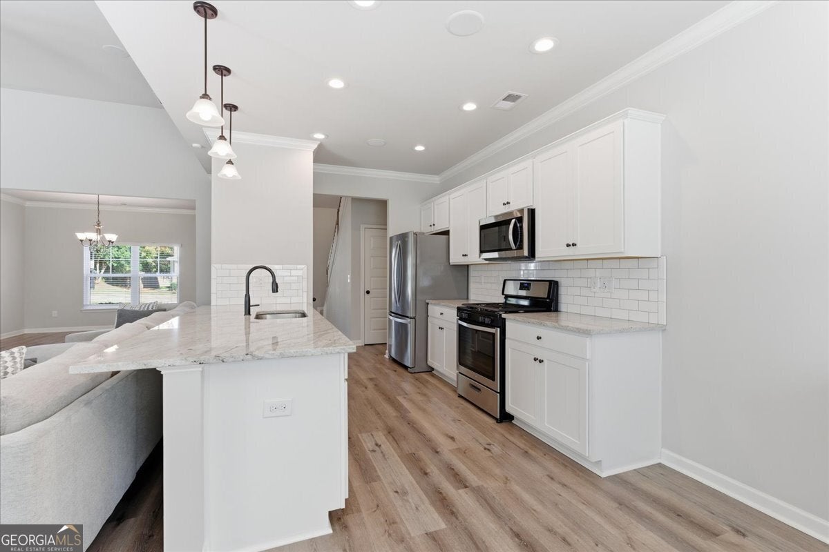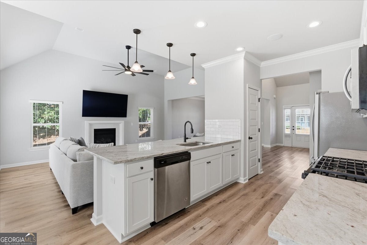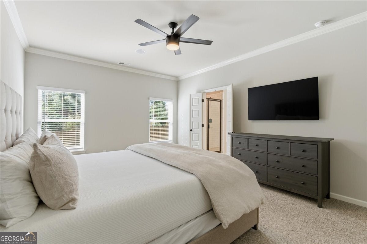 This meticulously maintained home sets the standard for pride of ownership, inside and out, every detail shines, and you won't find a blade of grass out of place! Nestled on a quiet dead end street in a well kept neighborhood within the highly sought after Fayette County school district, it immediately impresses with its curb appeal and inviting presence. Step inside to be greeted by abundant natural light, soaring ceilings, and luxury vinyl plank flooring throughout. The open, airy floorplan flows seamlessly, creating spaces that are both stylish and comfortable. The updated kitchen features stainless steel appliances, granite countertops, ample cabinet space, and an eat-in breakfast area overlooking the great room, perfect for everyday living or entertaining. In the great room, an elegant marble fireplace invites you to cozy up on chilly evenings with a cup of cocoa and your favorite movie. The formal dining room offers plenty of space for gatherings, while the primary en suite on the main level serves as a private retreat with a massive walk in closet and an updated bath with double vanity, tiled walk in shower, and relaxing soaking tub. Upstairs, a versatile loft area provides an ideal reading nook or home office, while two spacious bedrooms share a convenient Jack and Jill bathroom with double vanity. An additional secondary en suite with vaulted ceilings and walk in closet offers the perfect setup for guests, teens, or in-laws. Even the garage impresses with sealed epoxy floors, upgraded paneling, and LED lighting for a clean, finished look. With major systems, including the roof, HVAC, and dual water heaters, only five years old, this home combines modern comfort with peace of mind. All this is set within Fayetteville, a community that blends historic charm with modern convenience. Just south of Atlanta, the area offers a revitalized downtown, a thriving film industry, and a high quality of life. Residents enjoy local gems like Starr's Mill Park, with its scenic red mill and waterfall, and Fun Spot America Theme Park for family fun. Fayetteville is home to Trilith Studios, a major film campus, and nearby The Town at Trilith, a walkable "live-work-play" community with boutique shops, restaurants, and creative spaces. Downtown blends history, culture, and commerce along Main Street, while Fayette Pavilion, Georgia's largest open air shopping center, provides even more shopping, dining, and entertainment options, all just 30 minutes from Downtown Atlanta and Hartsfield-Jackson Airport. This home truly has it all, comfort, style, and a location you'll love. The only thing missing is you!
