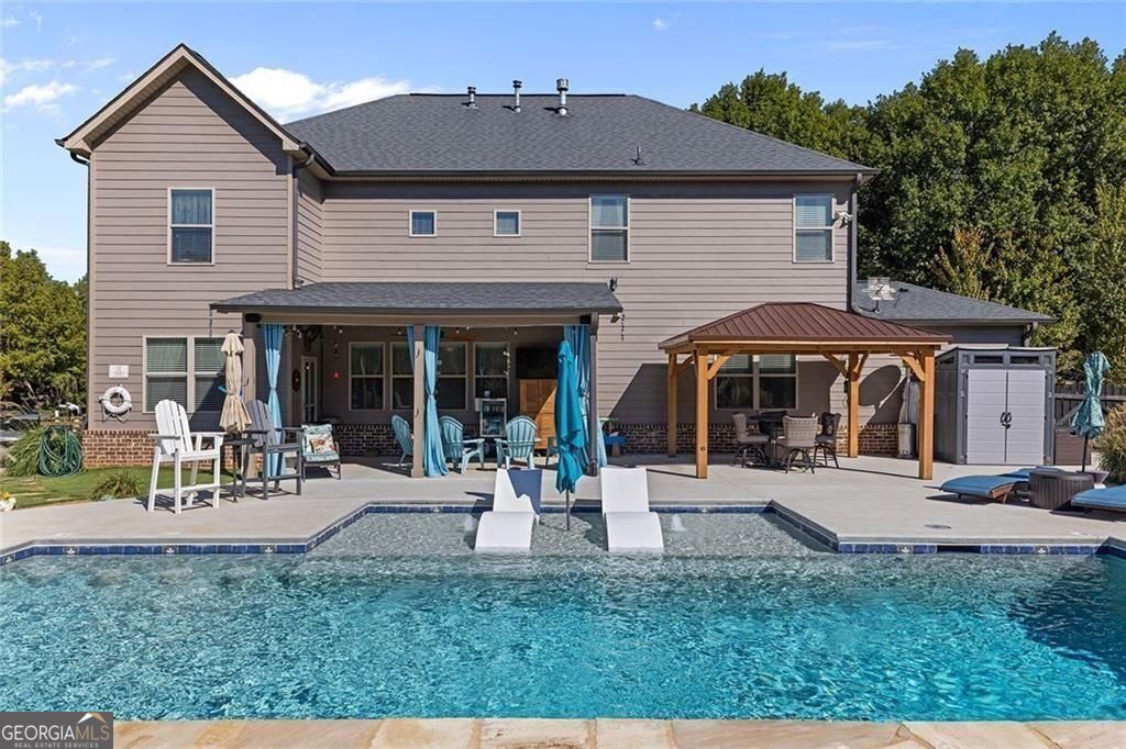 NEW PRICE: Welcome to 102 Carmichael Drive. A stunning and sought after residence nestled in the heart of Cherokee County. Built in 2017, this expansive home offers a perfect retreat for both relaxation and entertaining guests. Bright, natural light floods the interior, highlighting exquisite architectural details and creating a warm, inviting ambiance. Enjoy luxurious outdoor living with your very own Resort Saltwater Pool, featuring a beautiful Pebble Tec finish and a variable dept from 3.5 to 8 Feet. Lounge in the built-in seating area inside the pool, facing the porch, ideal for entertainment purposes and three elegant fountains, adding to the tranquil atmosphere. The property boast a three-car carriage garage, a convenient two-car side entry, a welcoming front porch, and a spacious 20X12 covered patio perfect for outdoor gatherings. Inside, the chef's kitchen is equipped with SS appliances, complemented by wired speakers for surround sound throughout the porch, pool area, and kitchen. The home also features a newly sodded yard with a 6-aone sprinkler system, strategic drainage solutions, and a Variable Speed HVAC system upstairs with REME Halo UV Bipolar Ion air purification in both HVQAC units, ensuring optimal comfort and air quality. Energy efficiency is a priority, with blown-in attic insulation over the garages, a dedicated portable generator hook-up with an eight-breaker sub-panel, and a large backyard with a fun playground area for children. This property stands out as one of the largest in the neighborhood, offering a spacious, flat backyard perfect for outdoor activities or puture expansions. Discover your dream home today, where luxury, comfort and practicality come together.