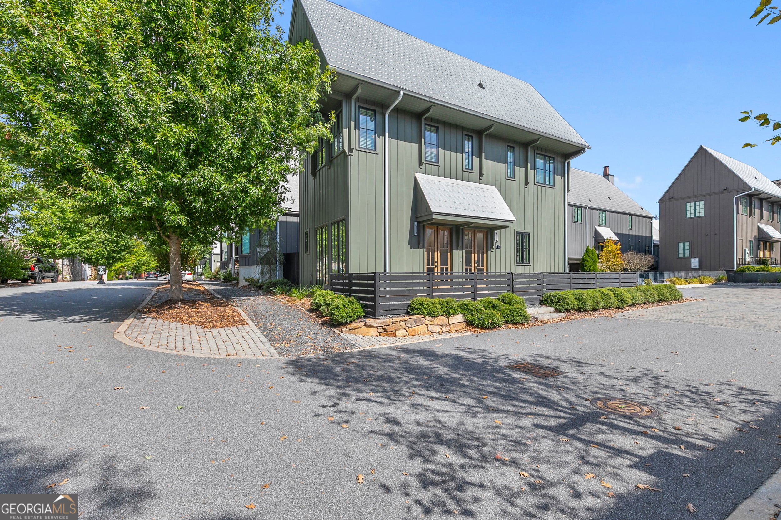 Tucked on a quiet corner lot in Trilith, one of Fayetteville's most sought-after neighborhoods, this 2-bedroom, 2.5-bath home captures the ease of modern living. The light-filled main level features white oak floors, a crisp white kitchen with stainless appliances, and French doors that open to a private courtyard-perfect for quiet mornings or evening gatherings. The laundry and half bath are conveniently located downstairs. Upstairs, both bedrooms include full baths and generous closet space, offering privacy and comfort in equal measure. Enjoy the convenience of a designated parking spot, low-maintenance living, and all the walkable charm of Trilith's restaurants, shops, and trails just steps from your front door. Now available for lease-utilities included. Schedule your private tour today.