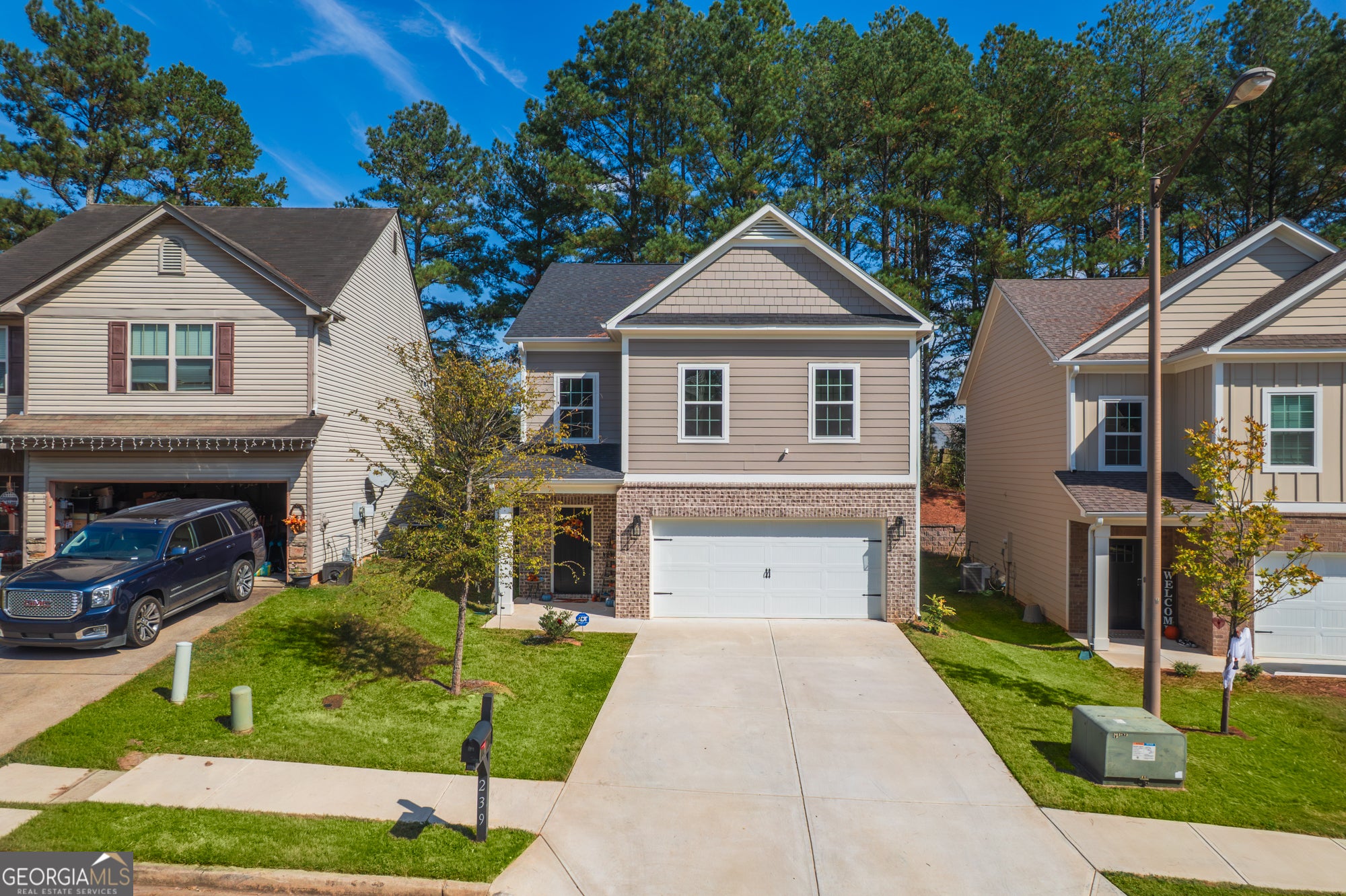 Welcome to this stunning Craftsman-style single-family home located in the beautiful Ball Ground region within the sought-after Bethany Manor subdivision. Built in 2023, this brand new construction boasts modern amenities and timeless architectural elegance, making it the perfect combination of style and comfort. This spacious 2,078 sq ft residence offers 4 oversized bedrooms and 3 bathrooms (2 full and 1 half), providing ample space for family, guests, and versatile living arrangements. The primary bedroom is an oversized master suite featuring a lavish primary bathroom equipped with a double vanity and a separate tub/shower for a spa-like ambiance. Generous walk-in closets add convenience and storage capacity. The open-concept design seamlessly integrates the dining room with the kitchen and family room, creating an inviting space for entertaining and everyday living. The kitchen is a chef's dream with features such as a kitchen island, breakfast bar, pantry, white cabinetry, stone countertops, and views into the family room-making it the heart of the home. Additional interior comforts include crown molding, a two-story entrance foyer, tray ceilings, and high 9-foot ceilings on the main floor that enhance the spacious feel. The flooring combines ceramic tile and hardwood for durability and style. You will find efficient natural gas heating, central air conditioning with ceiling fans, and insulated windows with shutters for comfort year-round. The home includes modern appliances such as a dishwasher, disposal, gas oven and range, and microwave. A dedicated laundry room is conveniently located on the upper level. Though this home does not have a basement or fireplace, it has no common walls with other units, ensuring privacy and tranquility. Situated on a 3,920 sq ft professionally landscaped lot, the property features covered front porch with lighting and rain gutters. The driveway leads to a two-car garage with garage doors facing front, complete with a garage door opener and level driveway, plus uncovered parking spaces for visitors. Utilities are fully functional with public water and sewer, electric at 110 volts, cable availability, natural gas, phone, and underground utilities. The home is also equipped with low-flow fixtures promoting water conservation. With its impeccable craftsmanship, modern conveniences, spacious layout, and peaceful setting, this beautiful Craftsman Traditional home presents an incredible opportunity for comfortable living in Ball Ground. Don't miss the chance to make this brand-new, expertly designed residence your forever home.