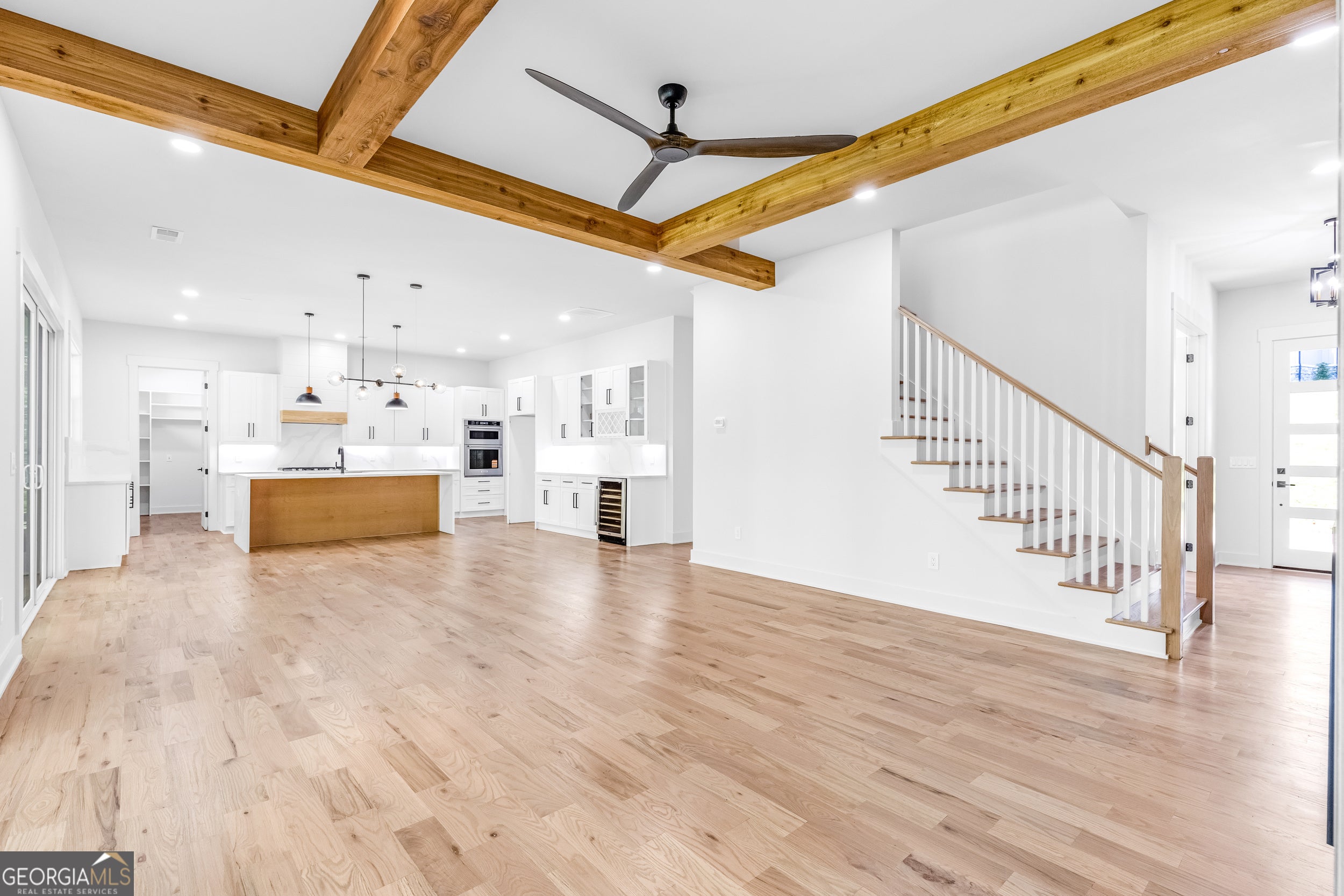 IMPROVED PRICE! Welcome to Refined Living in Arbor Springs Experience casual elegance in this beautifully crafted home located in the prestigious Arbor Springs community. Perfectly situated on a serene lot, this home offers an ideal blend of luxury, comfort, and thoughtful design-perfect for entertaining or enjoying peaceful everyday living. Step into a bright, open-concept layout featuring 10-foot ceilings, 5" red oak hardwood floors, and custom trim work throughout. At the heart of the home is a stunning gourmet kitchen with quartz countertops, a wine station, an oversized center island with seating, and high-performance appliances. A very large walk-in pantry offers ample storage and convenience, ideal for any culinary enthusiast. The kitchen flows seamlessly into a spacious great room, complete with a cozy fireplace and elegant boxed ceiling beams crafted from cedar, adding warmth and natural character to the space. A custom sliding glass door system opens to a covered rear porch, providing a smooth transition between indoor and outdoor living-ideal for year-round entertaining. The main-level Owner's Suite is a private retreat featuring a spa-inspired bathroom with a freestanding soaking tub, frameless glass shower, and generously sized custom closets. The laundry room is thoughtfully placed away from the Owner's Suite for added privacy and practicality. Also on the main level, you'll find a flex room, perfect for a home office, study, or formal dining room, as well as a convenient half bath for guests. Upstairs, you'll find three spacious bedrooms, each with its own private full bathroom, offering comfort and privacy for family members or guests. A large bonus room adds versatility for media, recreation, or additional living space. Notable features include: * Cedar ceiling beams in the great room * Spray foam insulation for energy efficiency * Custom cabinetry and built-ins throughout * Glass-enclosed showers in every bathroom * Mudroom for everyday organization * 3-car garage with extra space for storage * Pre-wired for EV charger, sound system, and security cameras * Enhanced lighting in bedrooms and flex spaces * Backyard is pool-ready, offering the ideal setting for your future oasis Professionally designed with premium finishes-and still time to personalize selections to match your style. As a resident of Arbor Springs, enjoy access to resort-style amenities including a clubhouse, pool, tennis and pickleball courts, parks, walking trails, and playgrounds. Conveniently located near top-rated schools, the new Publix center, Ashley Park, and I-85, with just a 20-minute drive to Hartsfield-Jackson International Airport and Atlanta. PREFERRED LENDER OFFERING LENDER FEE CREDIT! Don't miss the opportunity to own this stunning luxury home! Schedule your showing today!