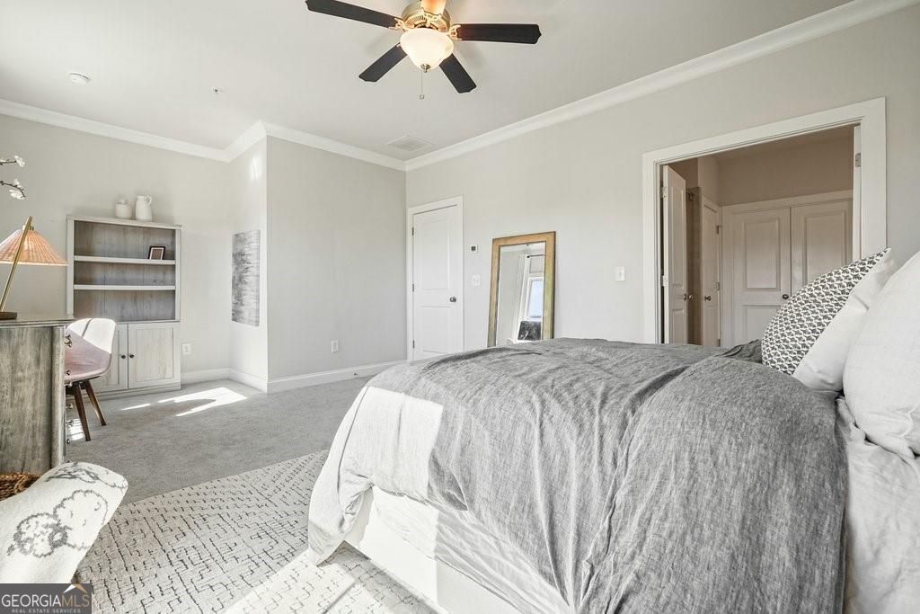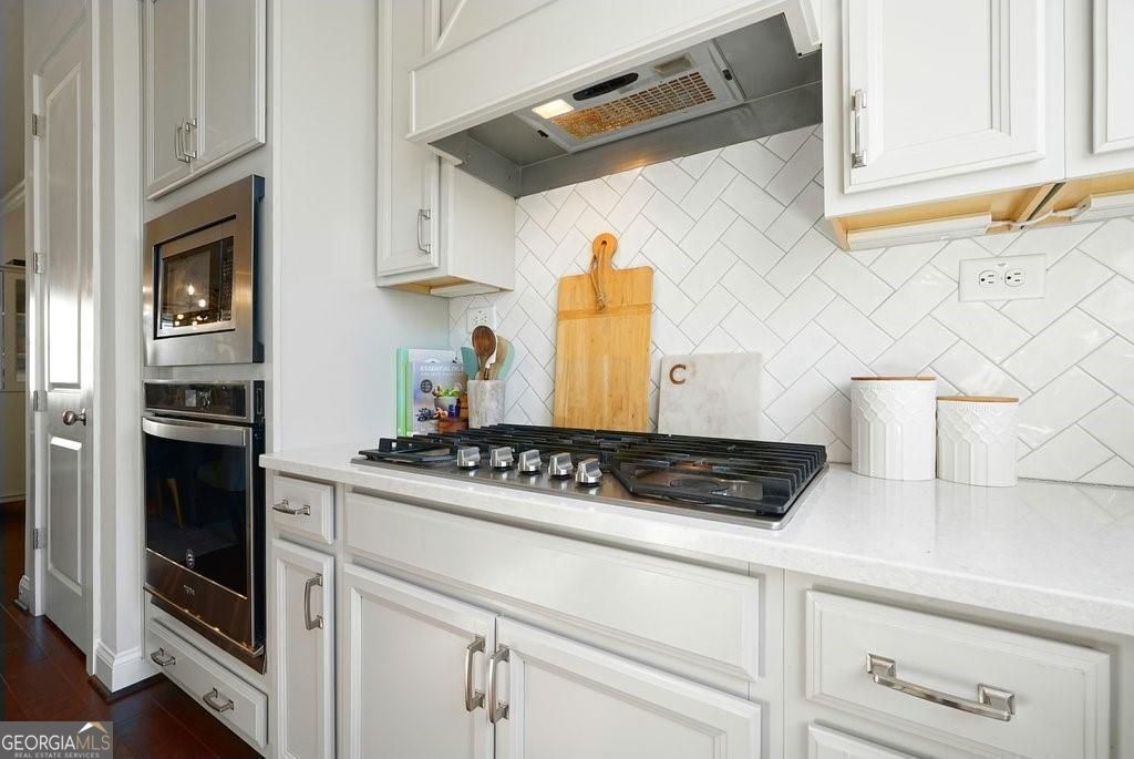Step into modern exclusive living in the Encore Walk townhome community of Alpharetta. This three-level home offers the perfect mix of sophistication, functionality, and location. The terrace level offers a welcoming entry way, enhanced by a lovely staircase. Also included is a spacious bedroom and full bath, perfect for guests or office space. Additionally, the terrace level includes a spacious two-car garage. On the main level, soaring 10-foot ceilings create an open, airy atmosphere that flows through the living, dining, and kitchen spaces. The kitchen is thoughtfully appointed with a center island, white cabinetry, solid-surface counters, and an adjoining front porch perfect for growing your own herb garden or enjoying a morning cup of coffee. The spacious living area features a gas fireplace and leads to as expansive covered rear porch, ideal for relaxing outdoors and entertaining friends and family. A conveniently located half bath with recently upgraded vanity and new light fixtures throughout the main floor enhance the living space. Upstairs you will find the primary suite, complete with a dual-sink vanity, walk-in closet, and spa-like bath. An additional large bedroom with a full bath provides flexibility for family, guests, or home office use. A conveniently located laundry space compliments the convenience and thoughtfulness of design of this lovely space. Interior finishes include hardwood flooring in the main living zones, carpet in the upstairs, and designer fixtures throughout. The home is wired for high-speed internet, features energy-efficient plumbing, and enjoys zoned heating/cooling for added comfort. Outside, the property is framed by tasteful landscaping and is situated within a short distance to some of the area's most popular amenities, including Ameris Amphitheatre, TopGolf, Big Creek Greenway and downtown Alpharetta. Schedule a showing today for your clients of this extraordinary property priced to sell - it will not last long!