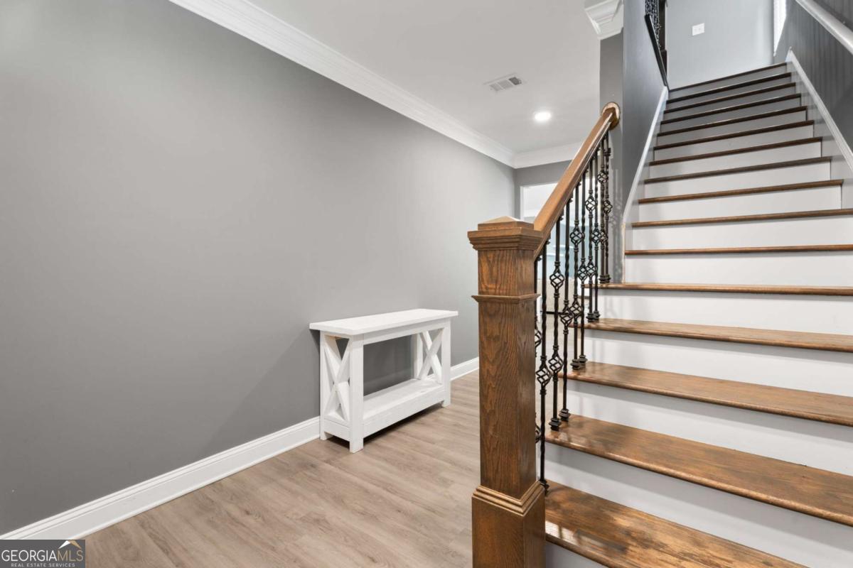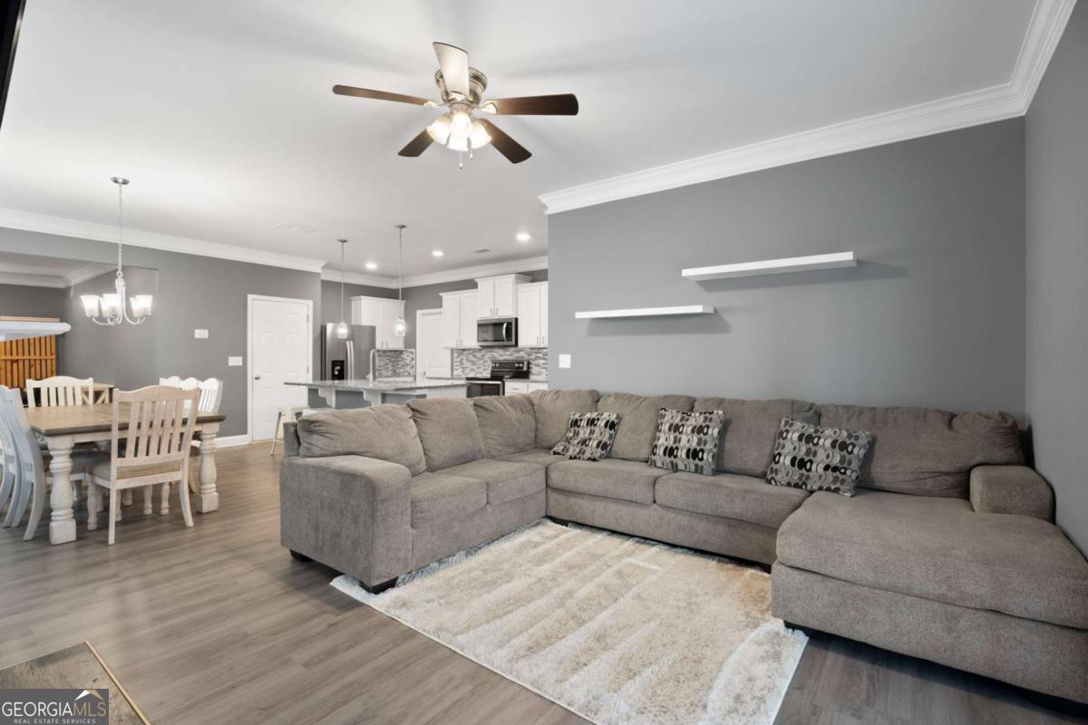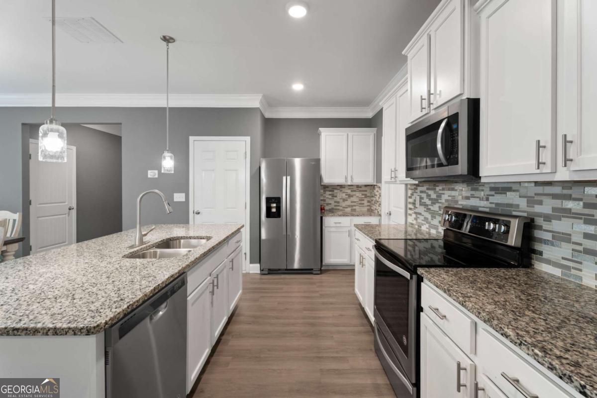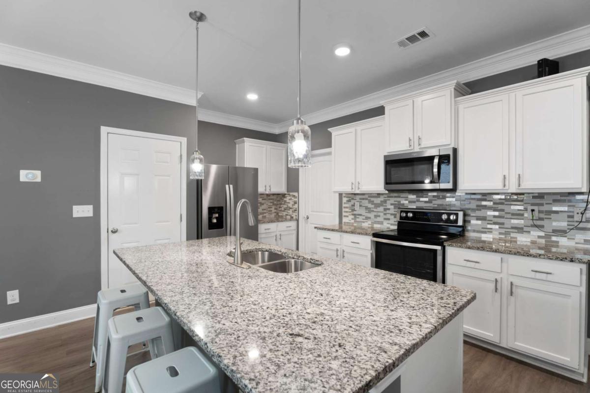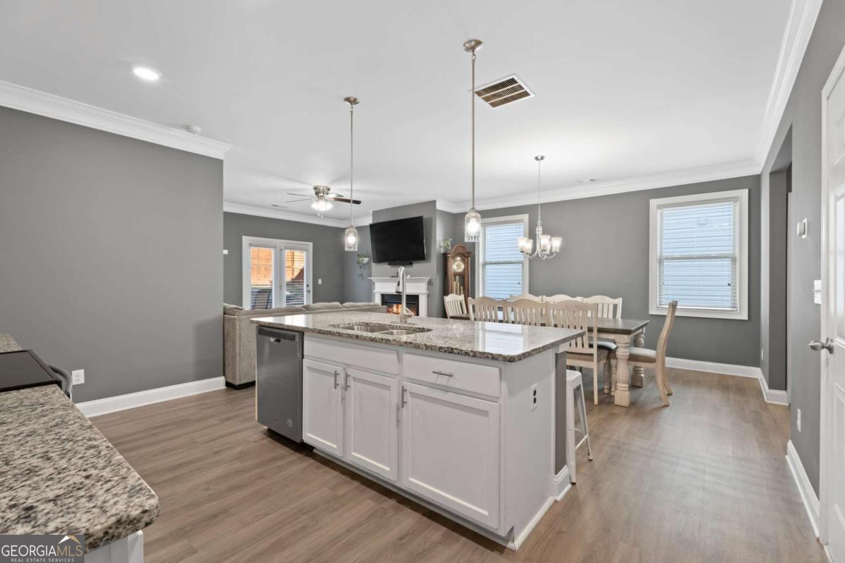Welcome to 515 Altama Way, where warm, livable style meets thoughtful upgrades in one of Acworth's most convenient locations. From the moment you step inside, the home feels open, inviting, and designed for real life. The main level features wide-open sightlines between the living, dining, and kitchen areas - perfect for everyday living as well as entertaining. Crown molding, soft gray tones, and abundant natural light create a calm and cohesive aesthetic throughout. The kitchen is both beautiful and functional, offering a large granite island with seating, white cabinetry, and stainless appliances.. Whether you're hosting friends or enjoying a quiet breakfast, this space truly works as the heart of the home.The living room centers around a cozy fireplace and opens to the fenced backyard through French doors, making indoor-to-outdoor flow effortless. Upstairs, the primary suite is a retreat - but what truly sets it apart is the custom-designed walk-in closet system. Every inch is intentionally planned: dedicated shelving, shoe cubbies, hanging zones, and even a built-in window bench. It's the kind of closet that simplifies mornings and sparks joy daily. Additional bedrooms are well-sized and flexible for work-from-home, guests, or play spaces. With 5 bedrooms, 3 full baths, and an attached garage, this home is designed for how real life is lived. And the location couldn't be better-just minutes to everyday essentials and quick access to I-75 and I-575, so whether you're heading to work, Woodstock, or out for the weekend, getting there is easy.